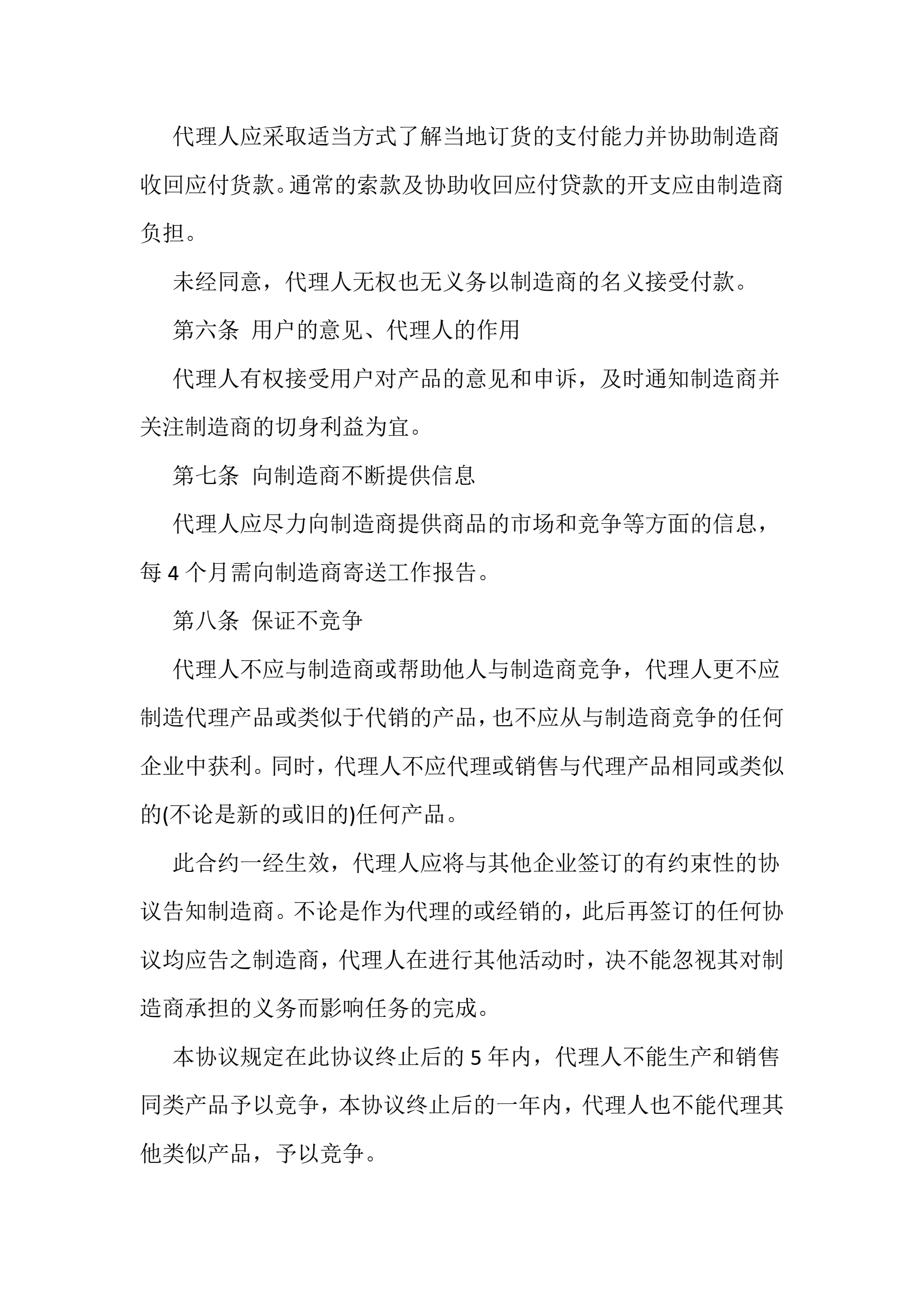 独家代理产品销售协议