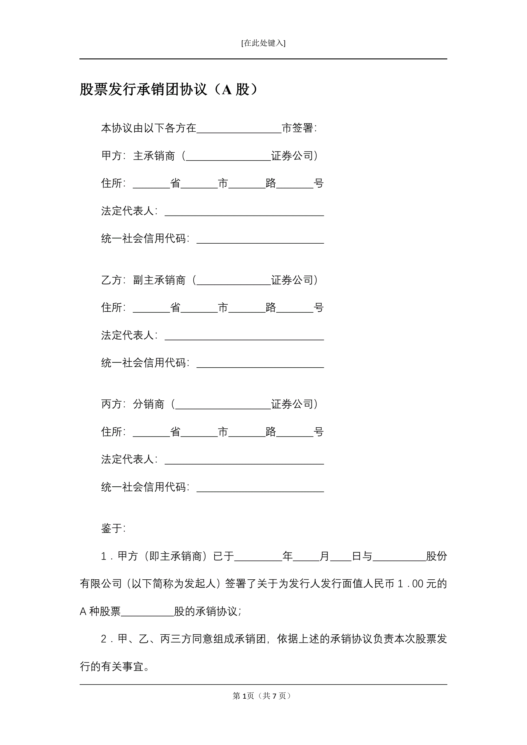 股票发行承销团协议(A股)