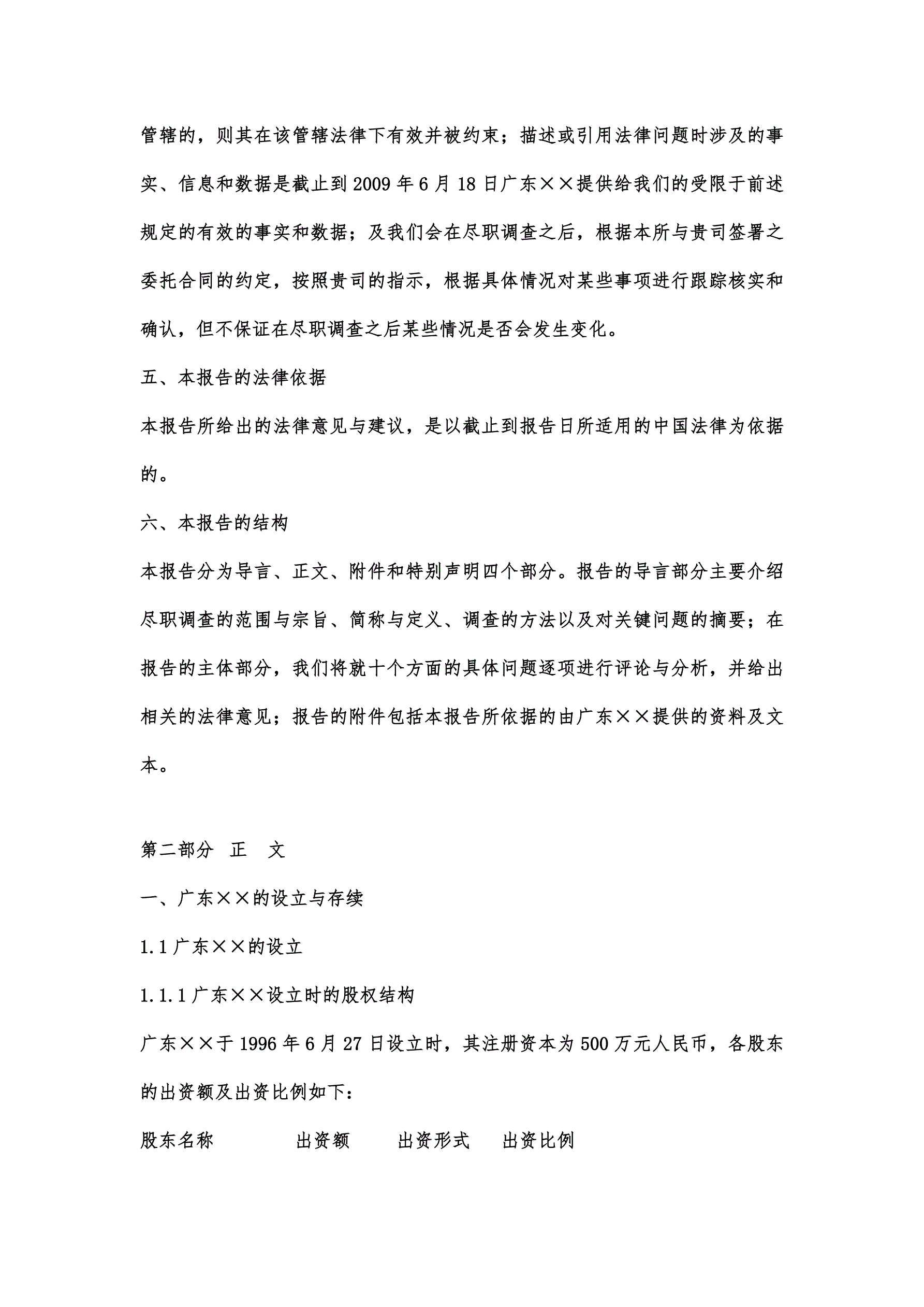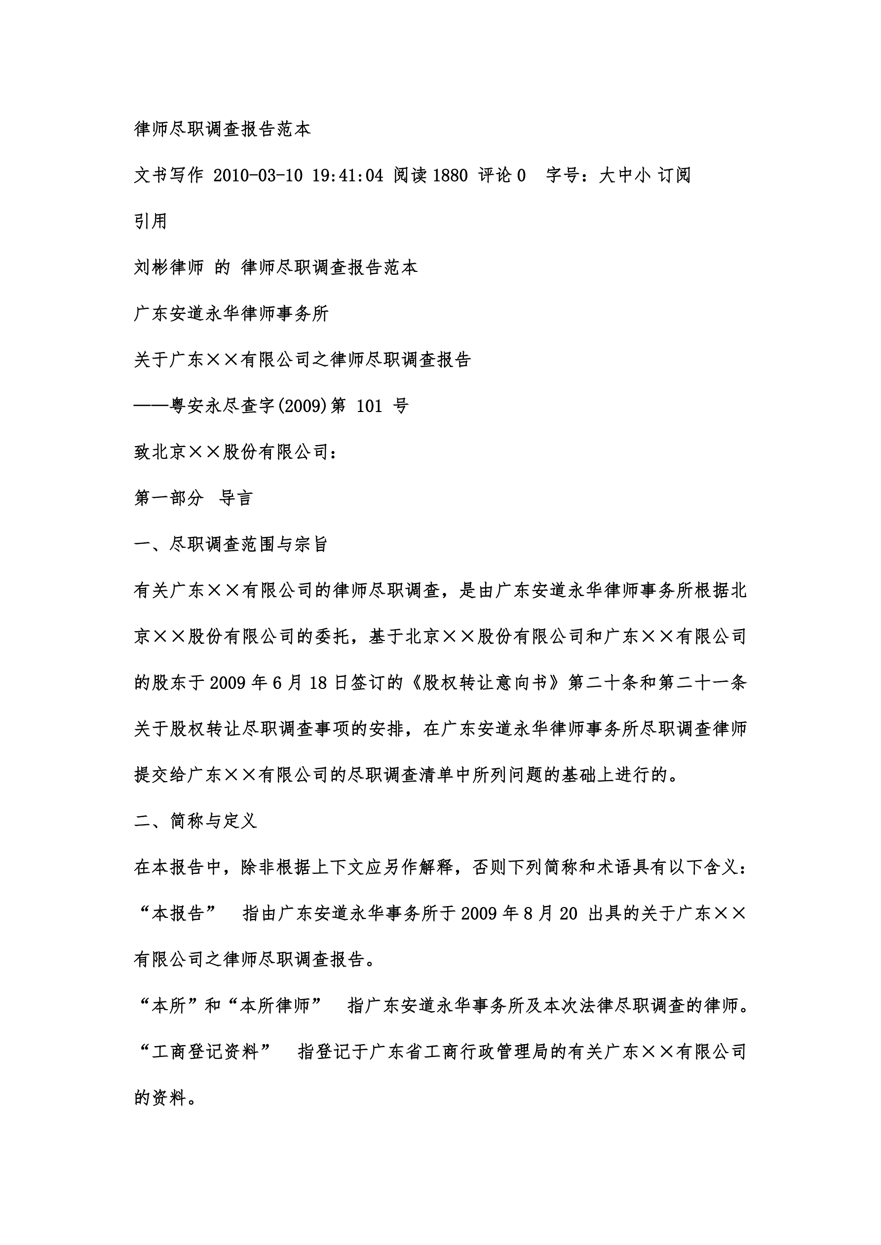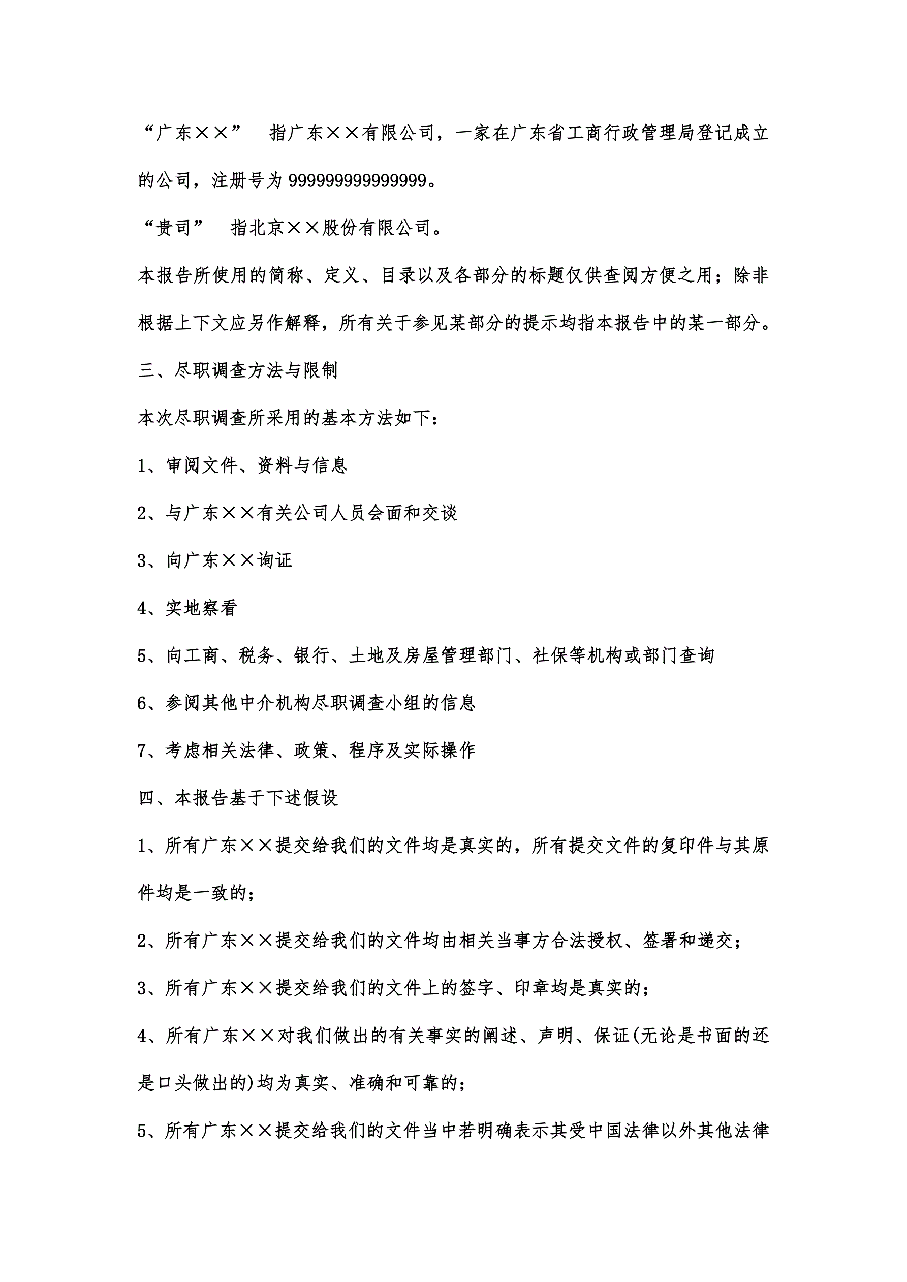 >律师尽职调查报告范本