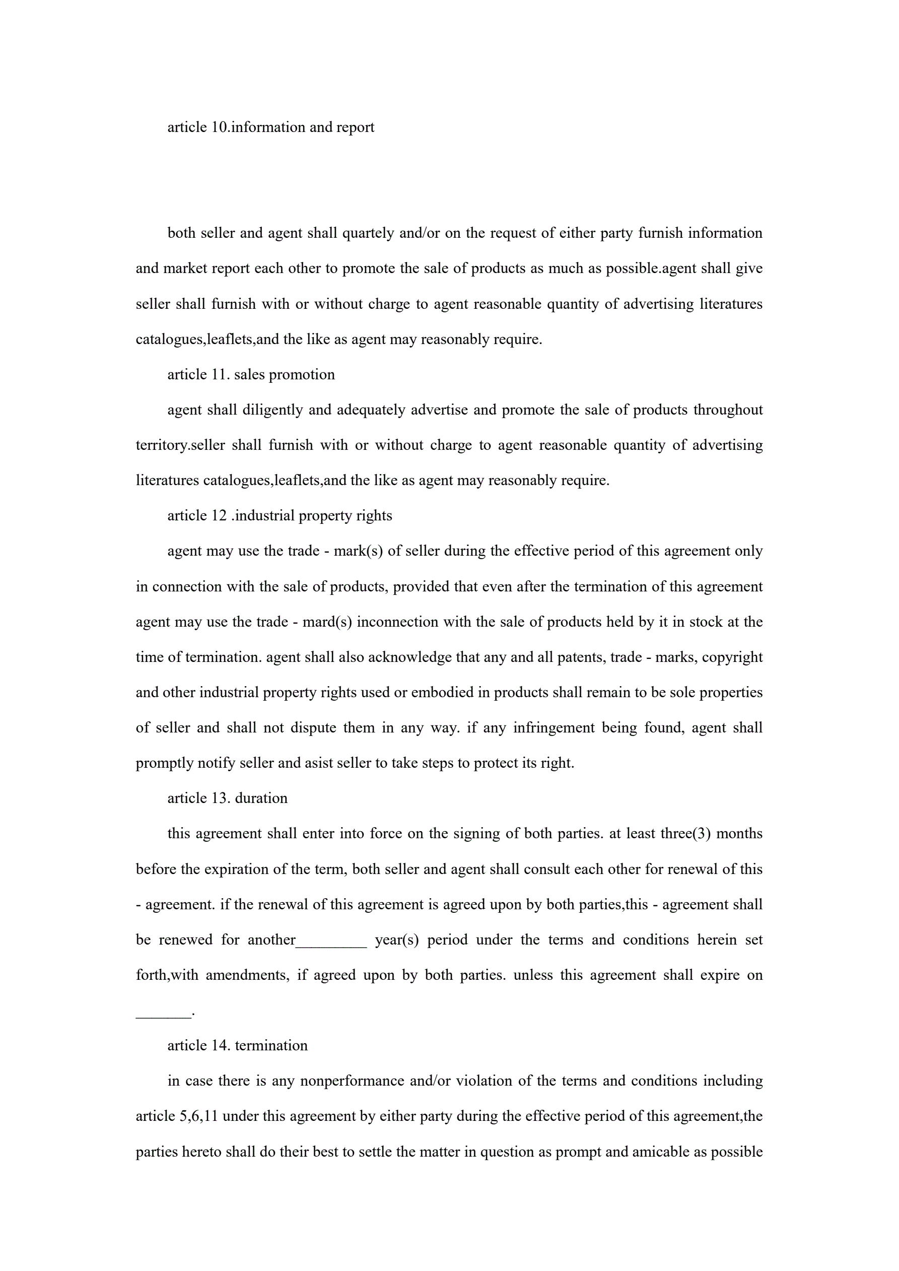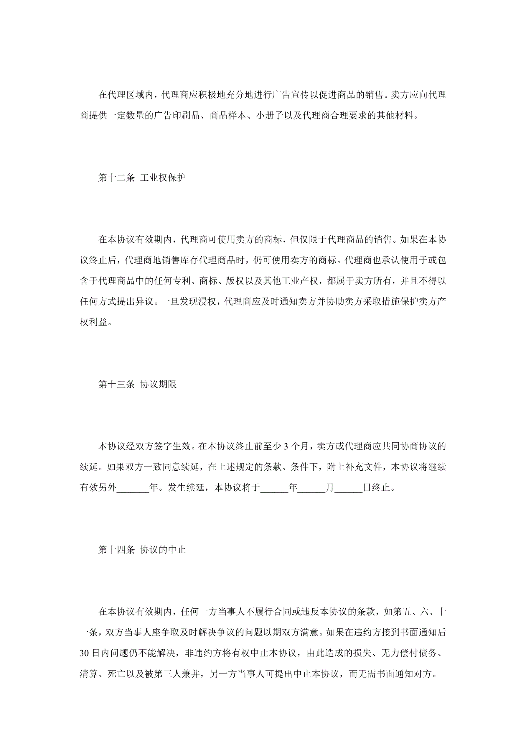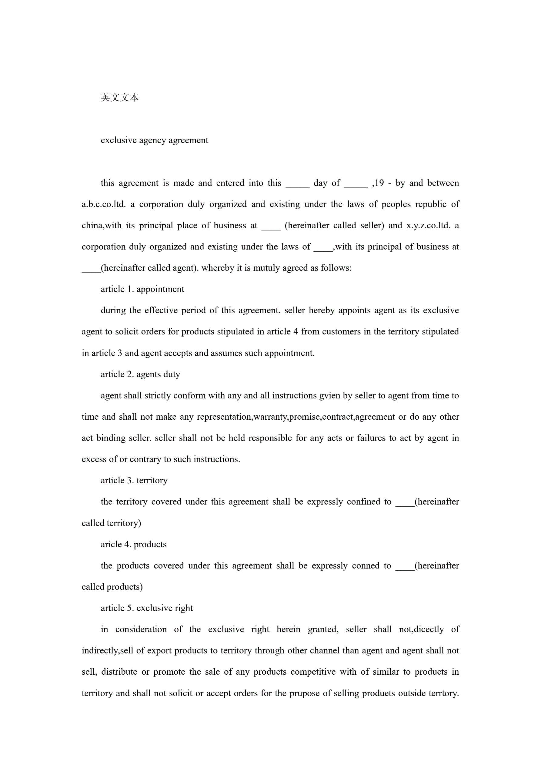 >独家代理合同协议