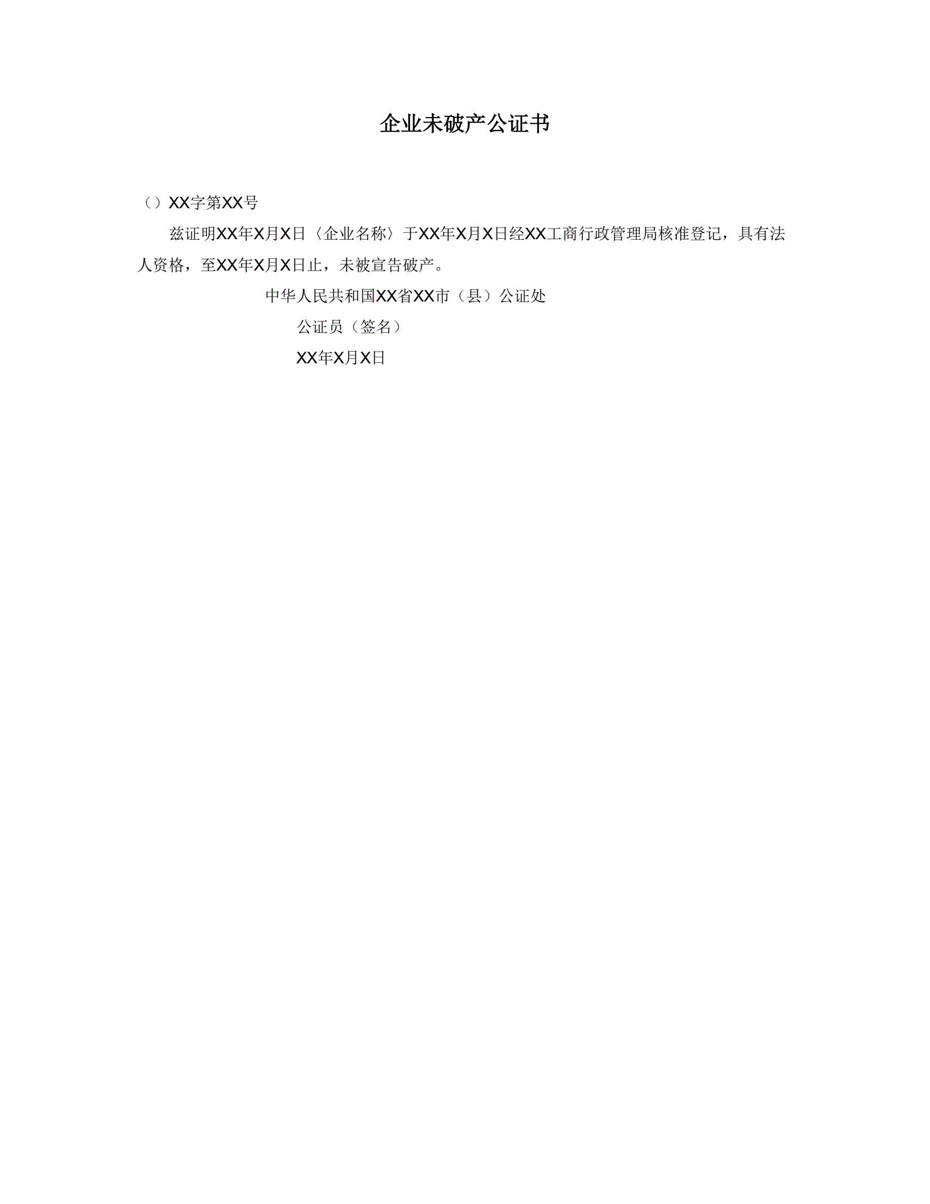>企业未破产公证书