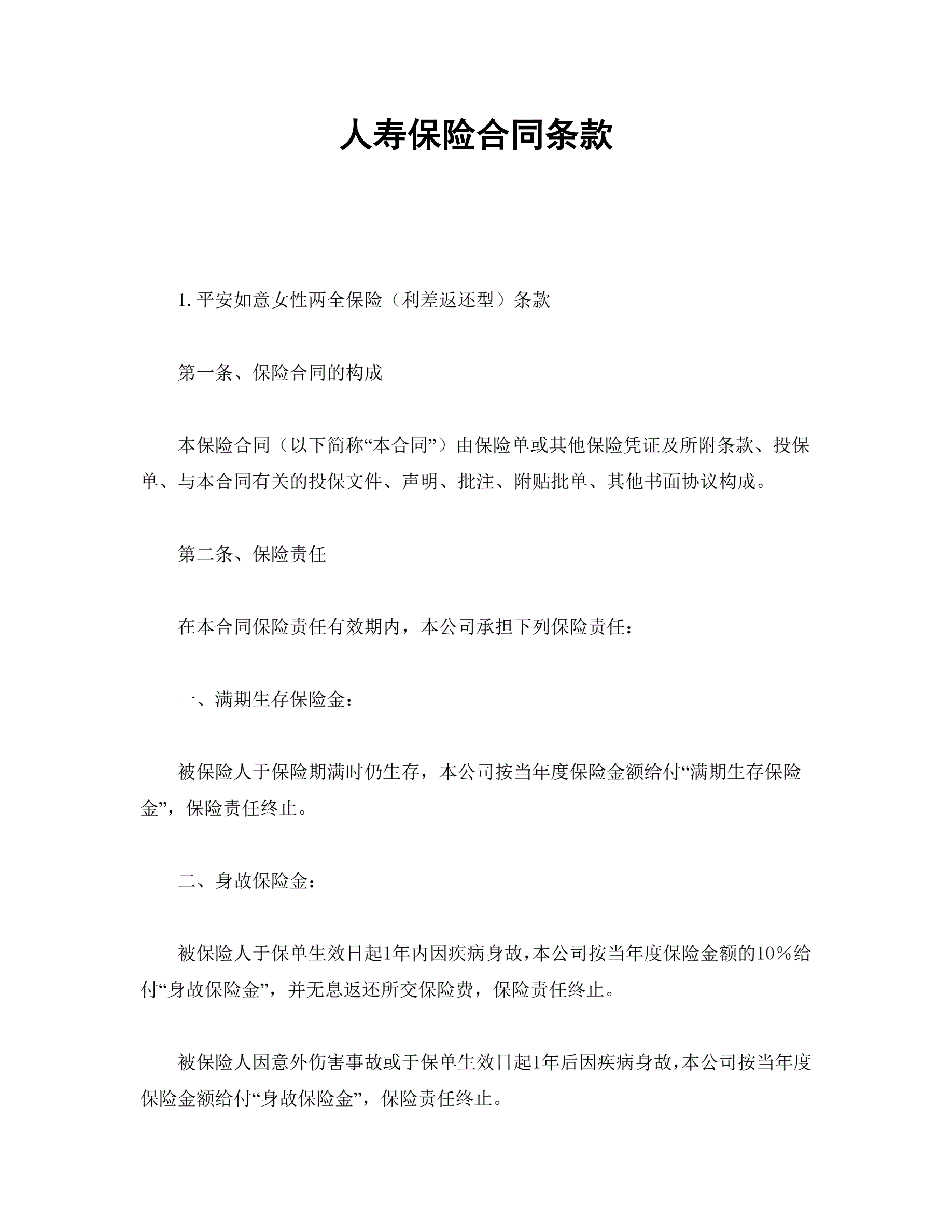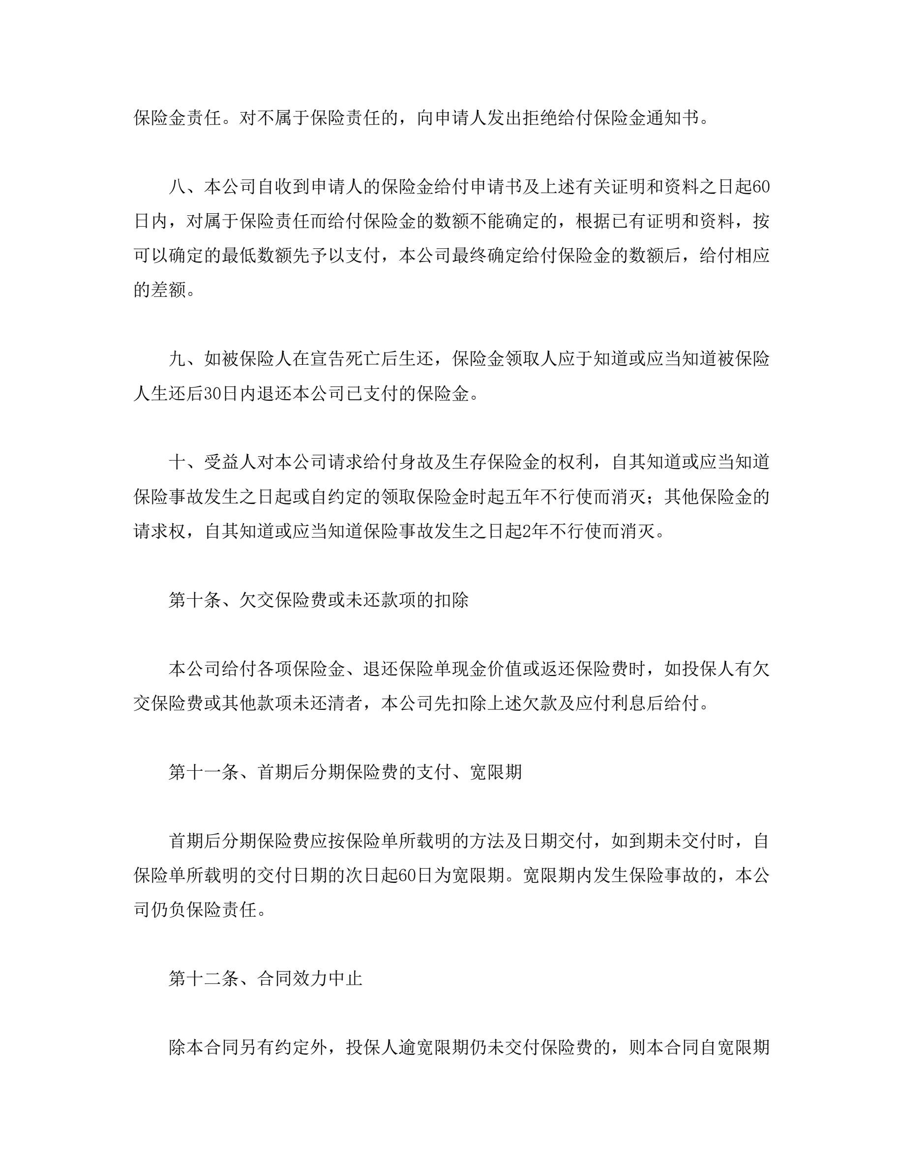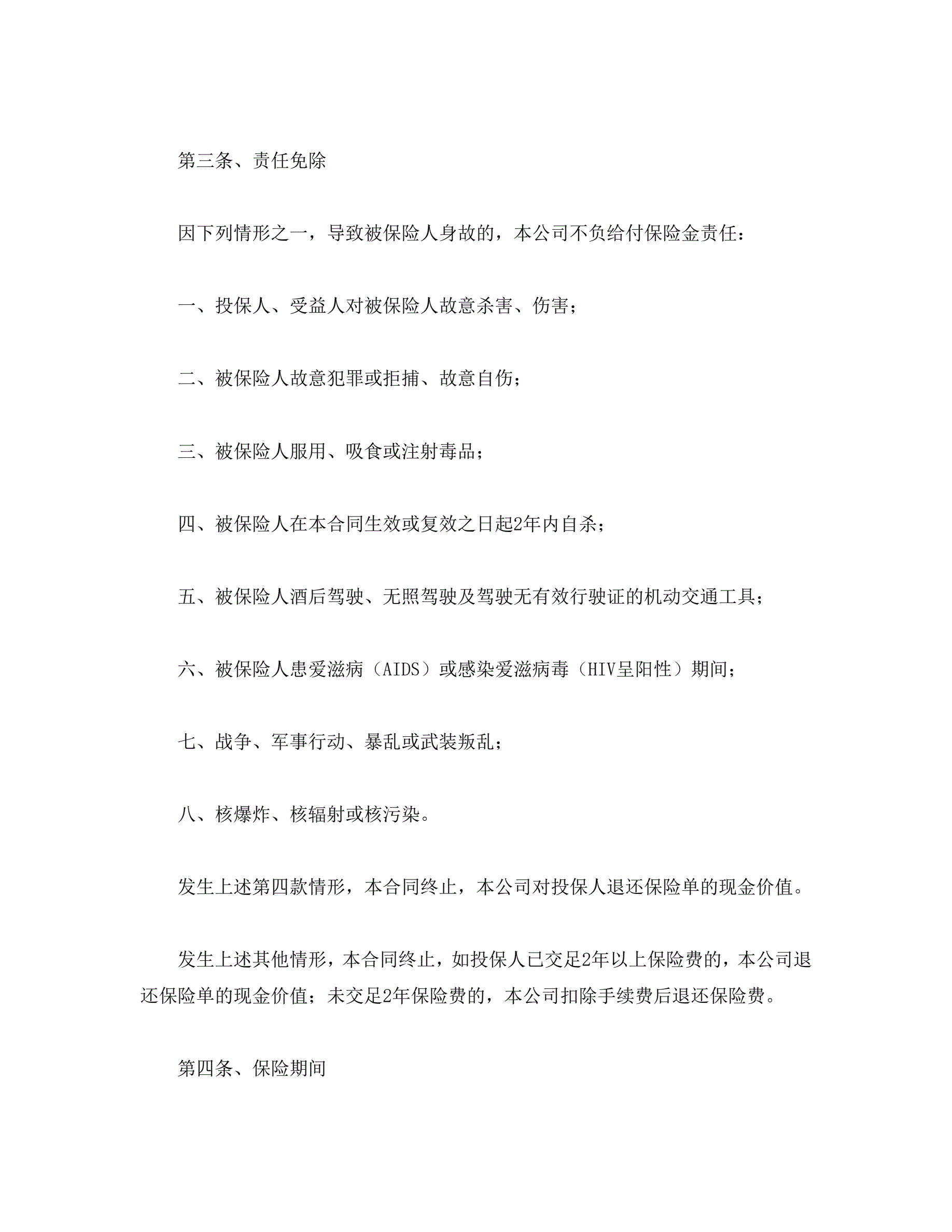 人寿保险合同条款