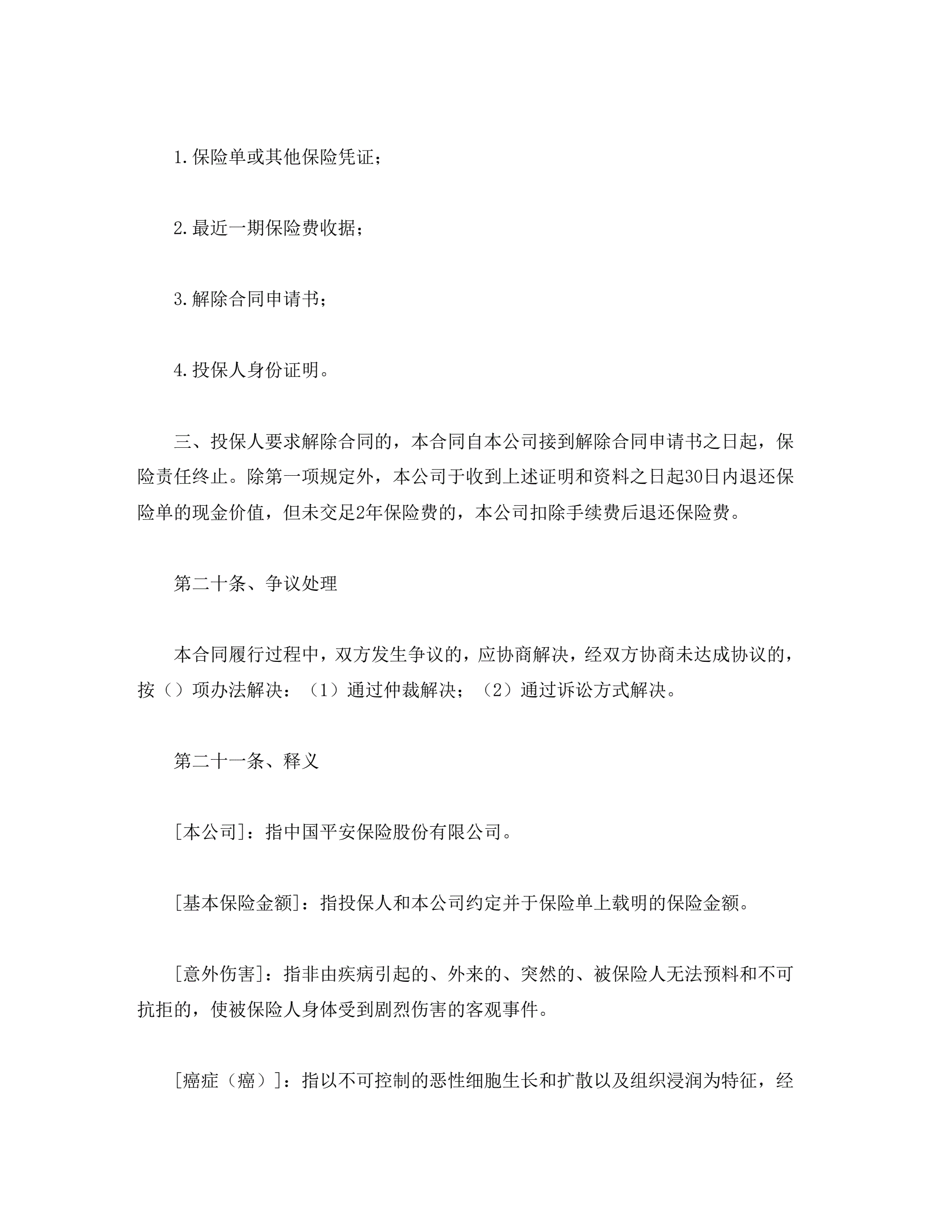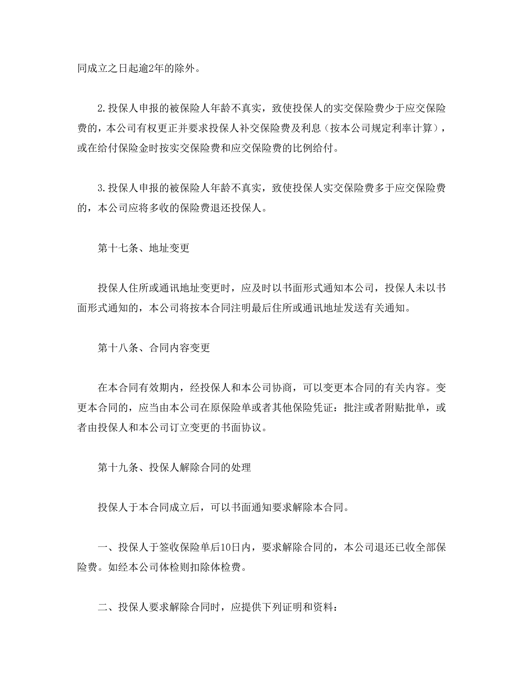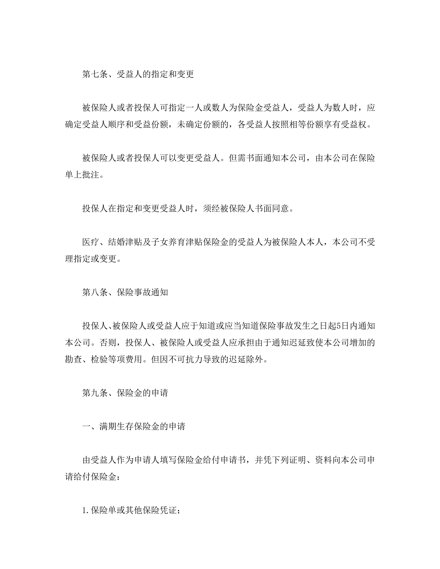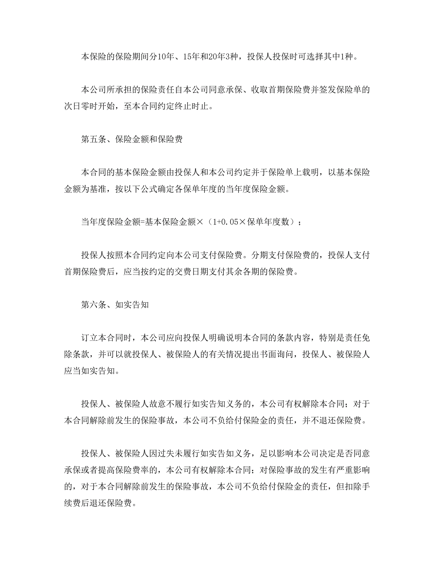 人寿保险合同条款