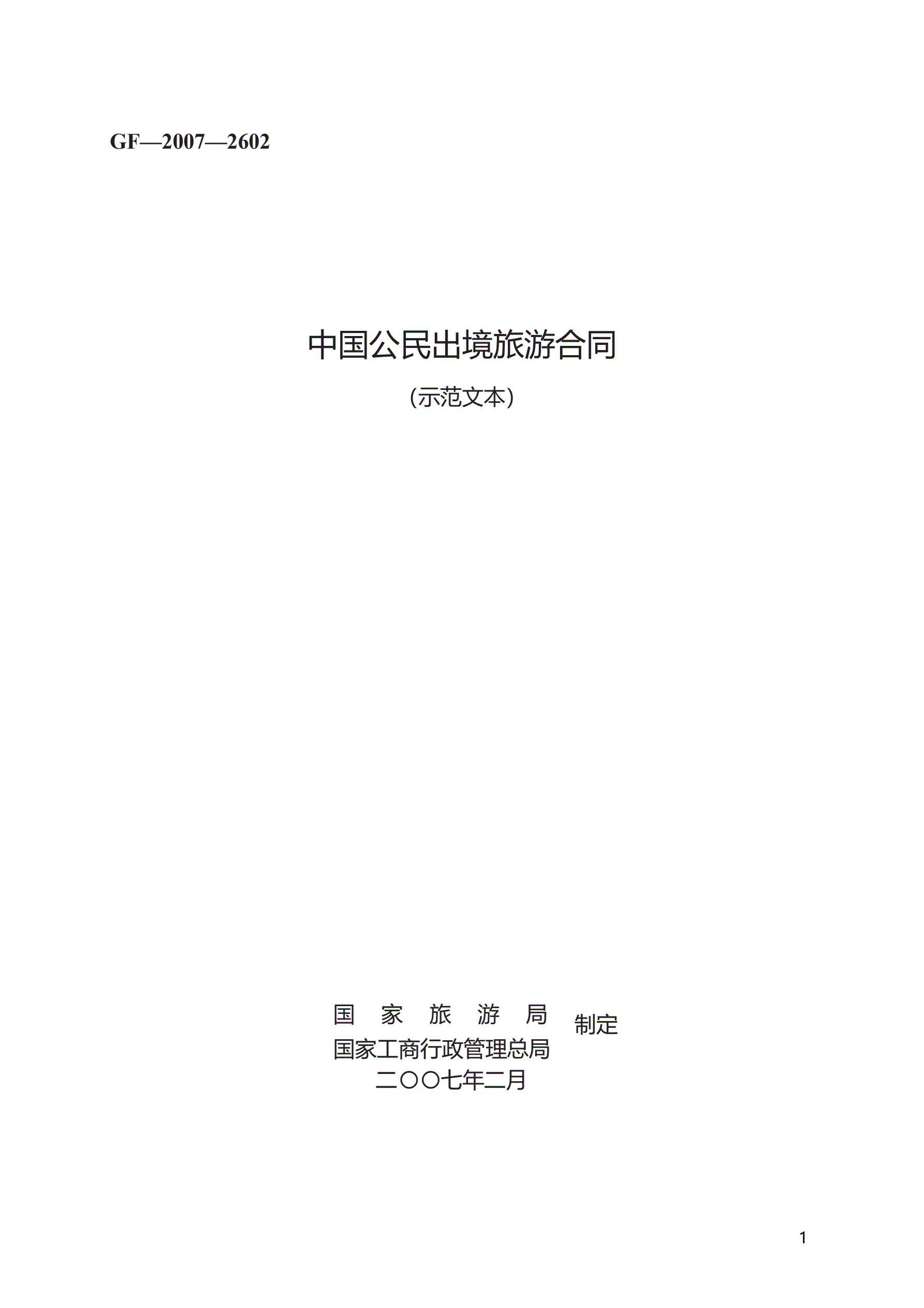 >中国公民出境旅游合同 GF—2007—2602
