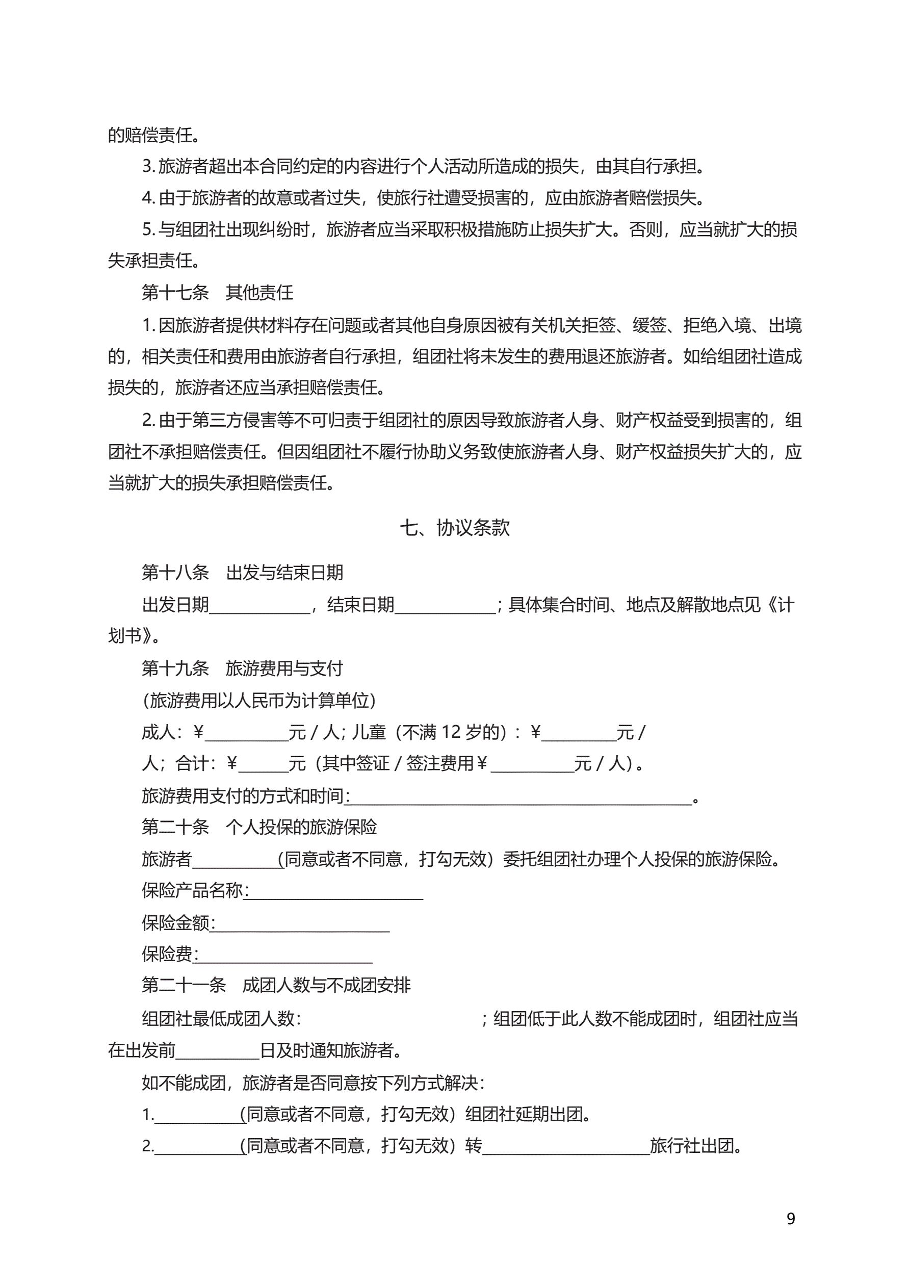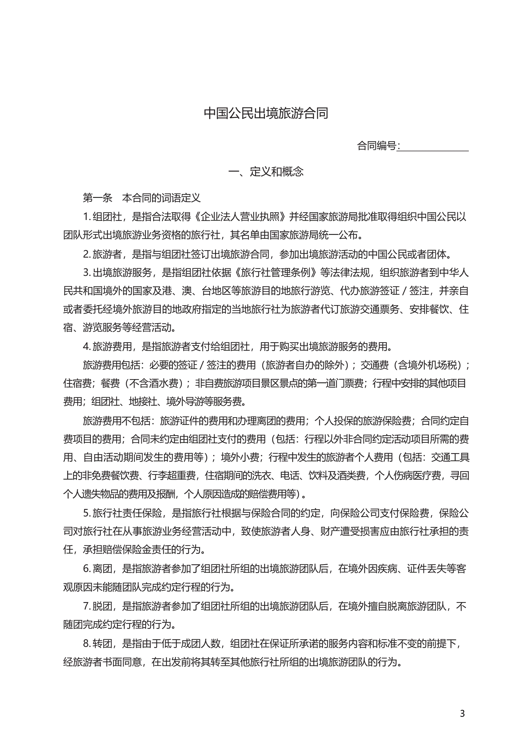 中国公民出境旅游合同 GF—2007—2602