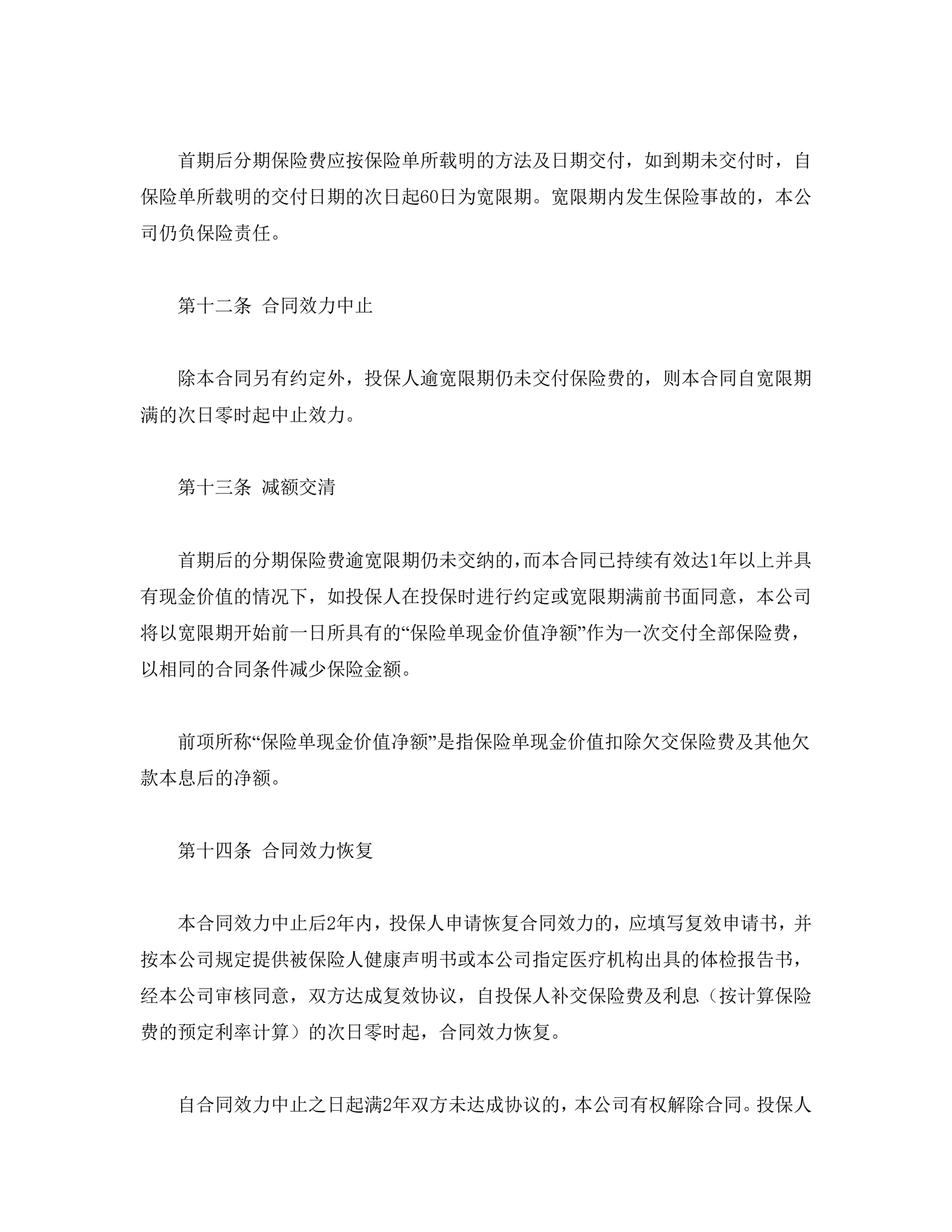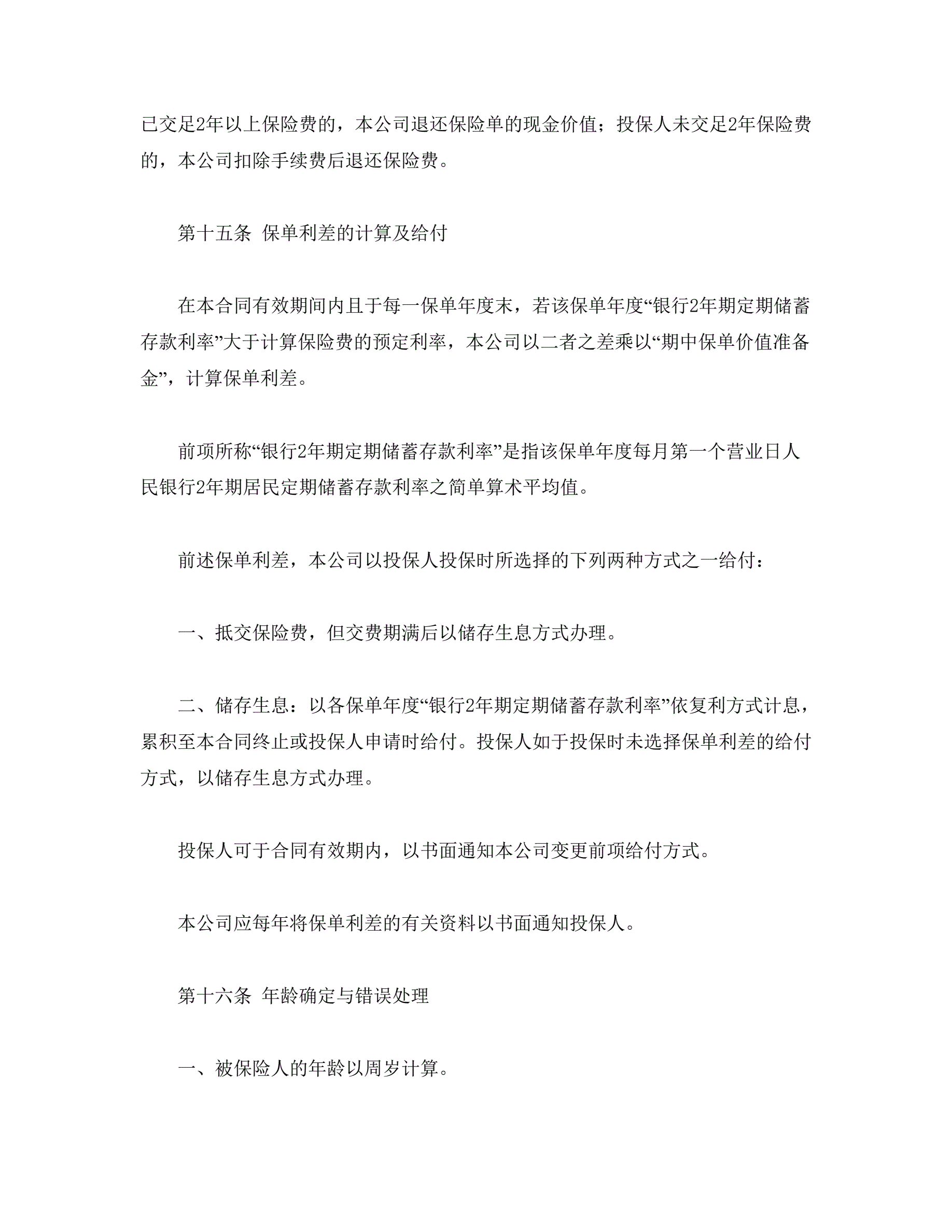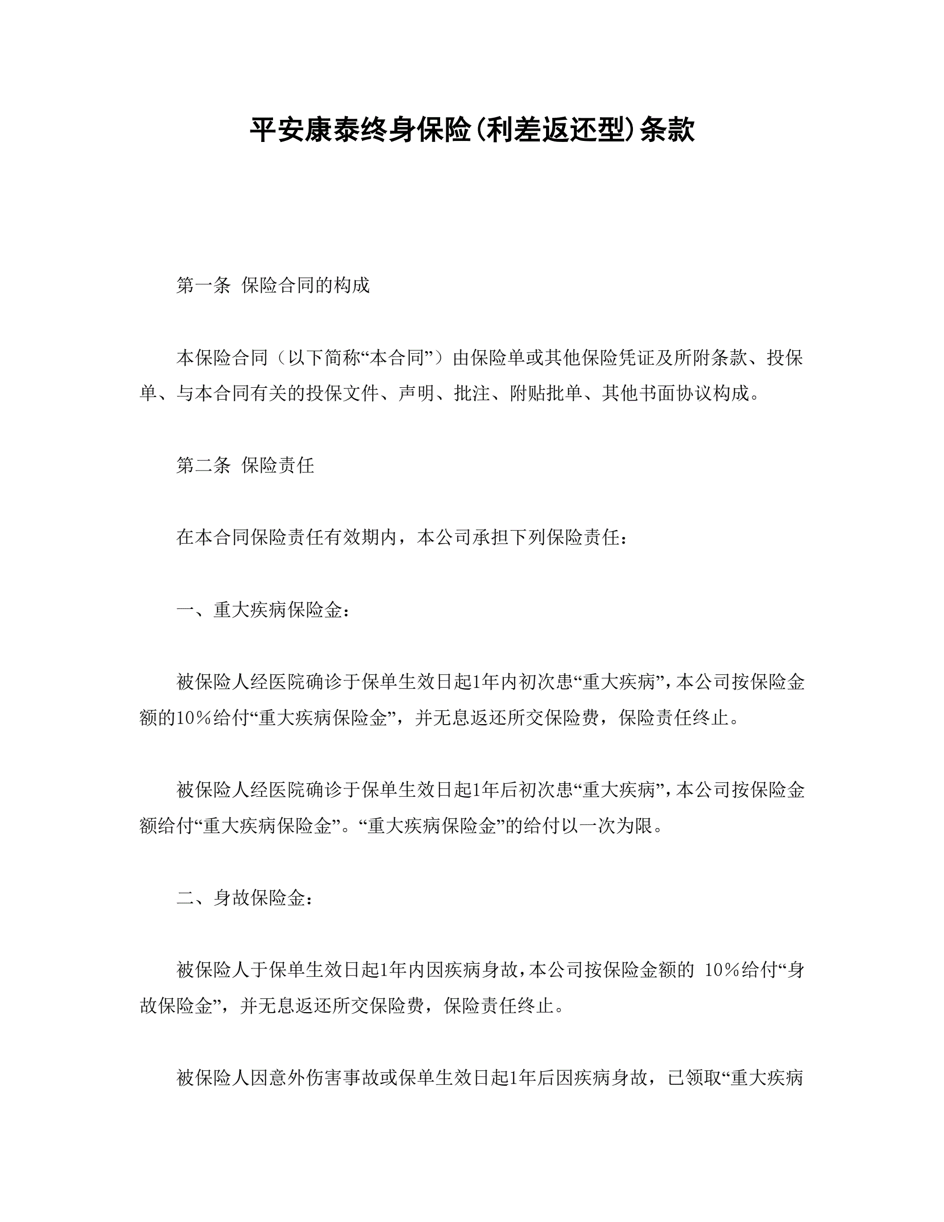 平安康泰终身保险(利差返还型)条款