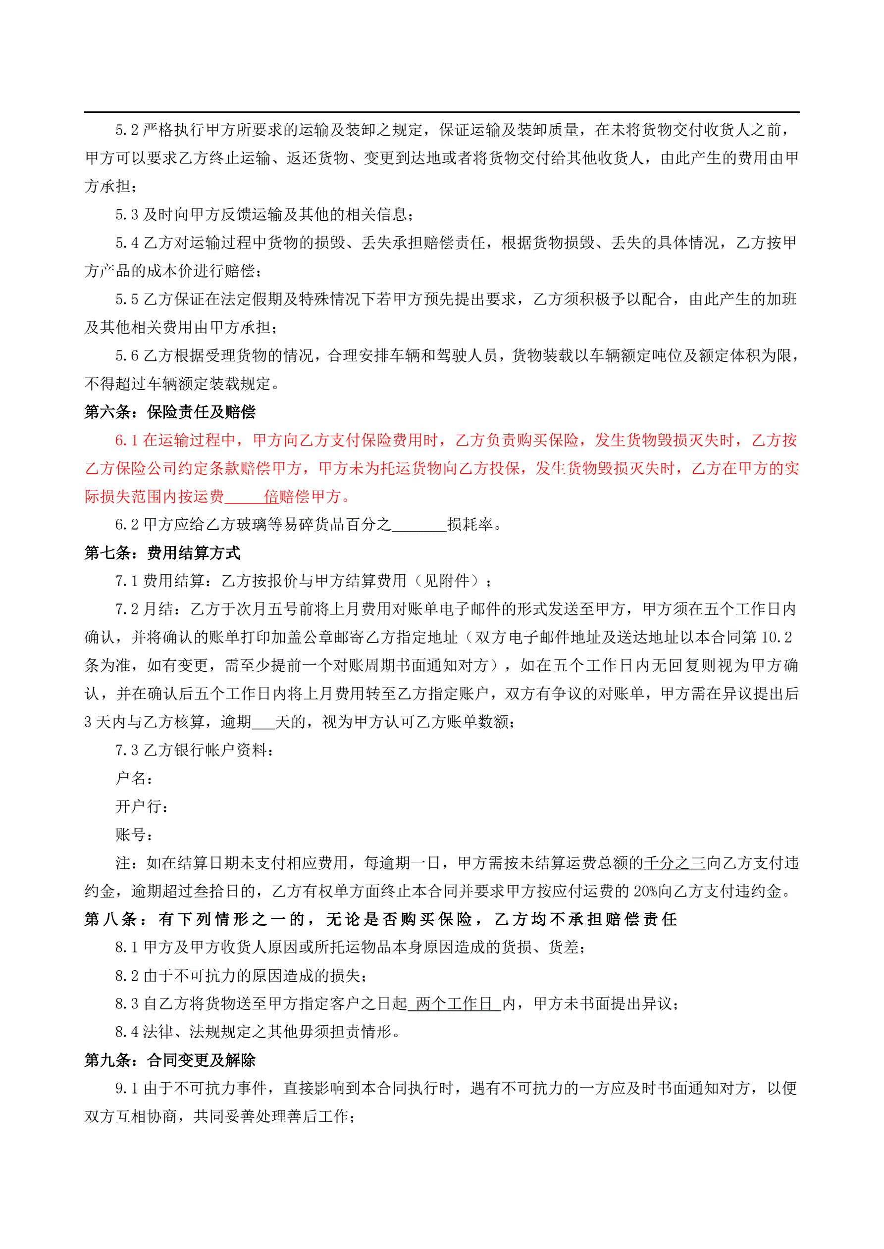 >货物运输合同与上家签订(简易版)