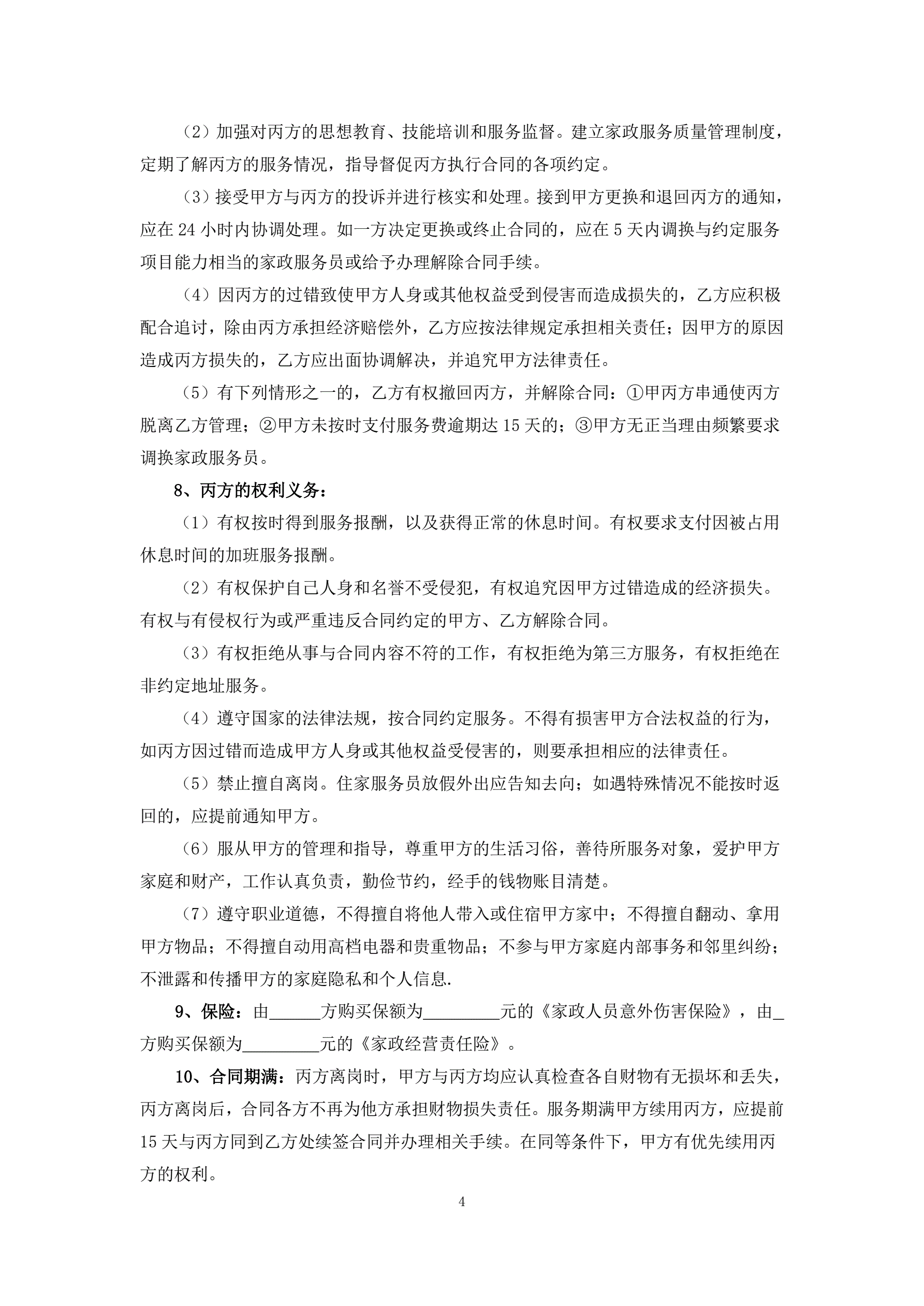 保姆合同