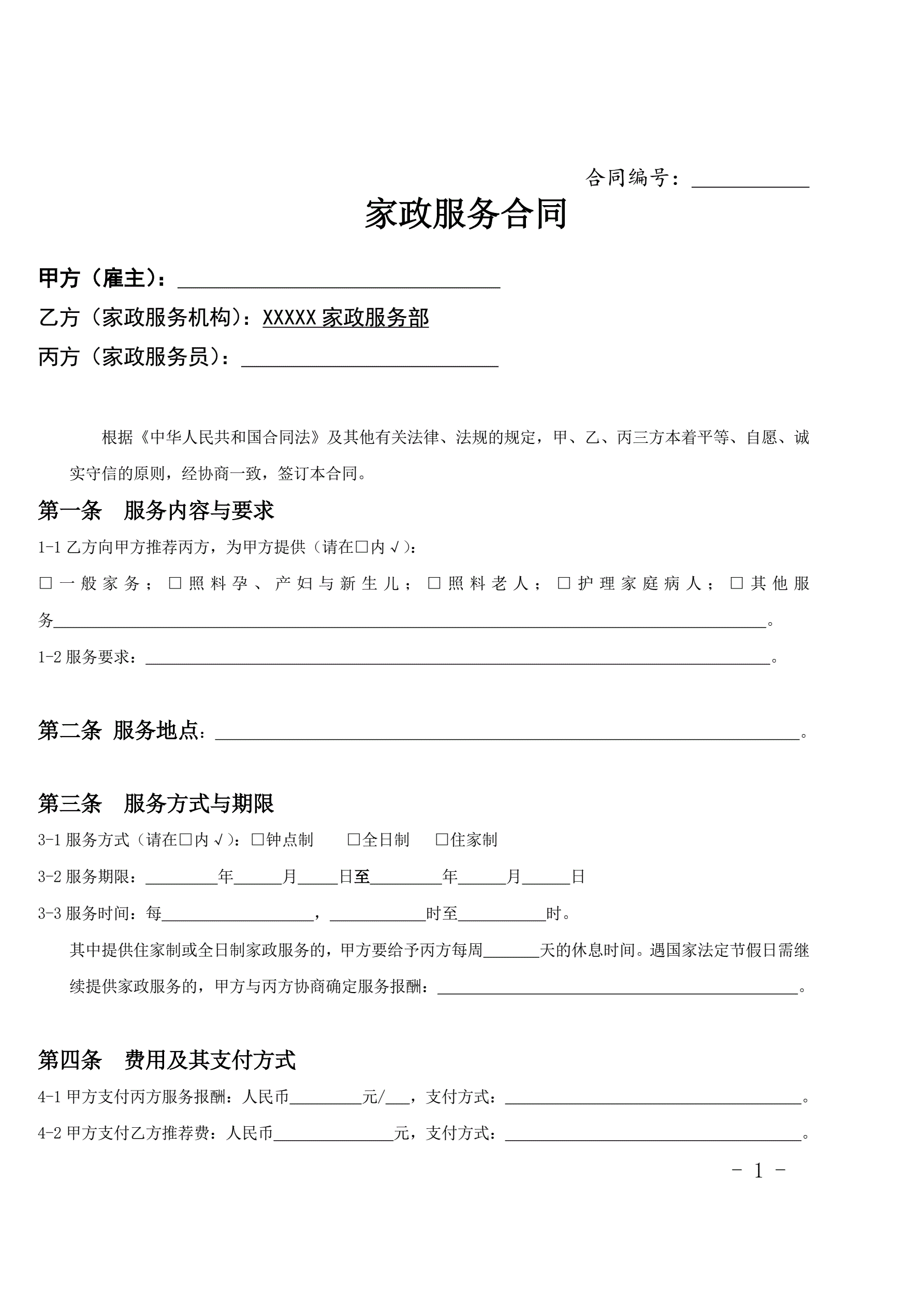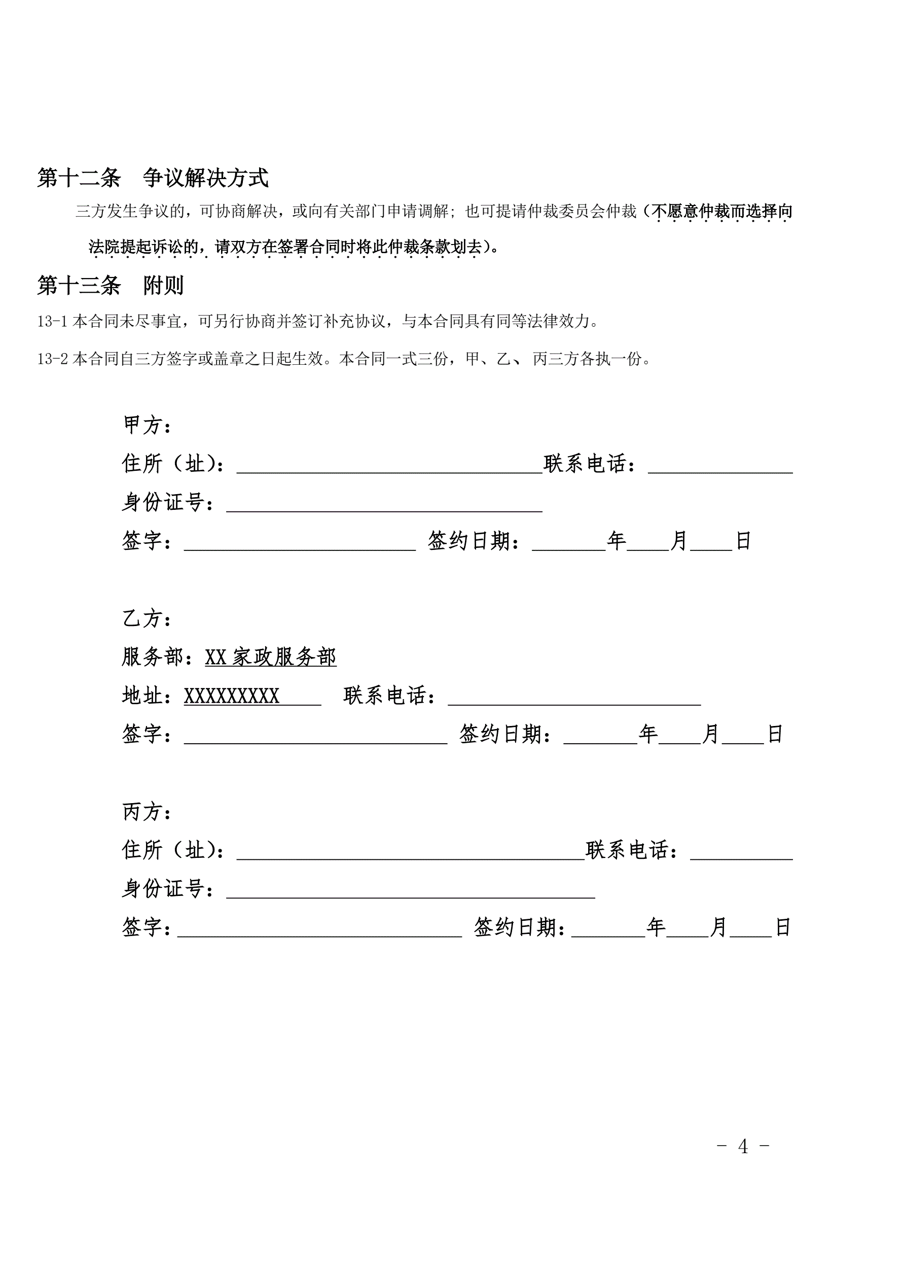 家政服务合同范本(三方)