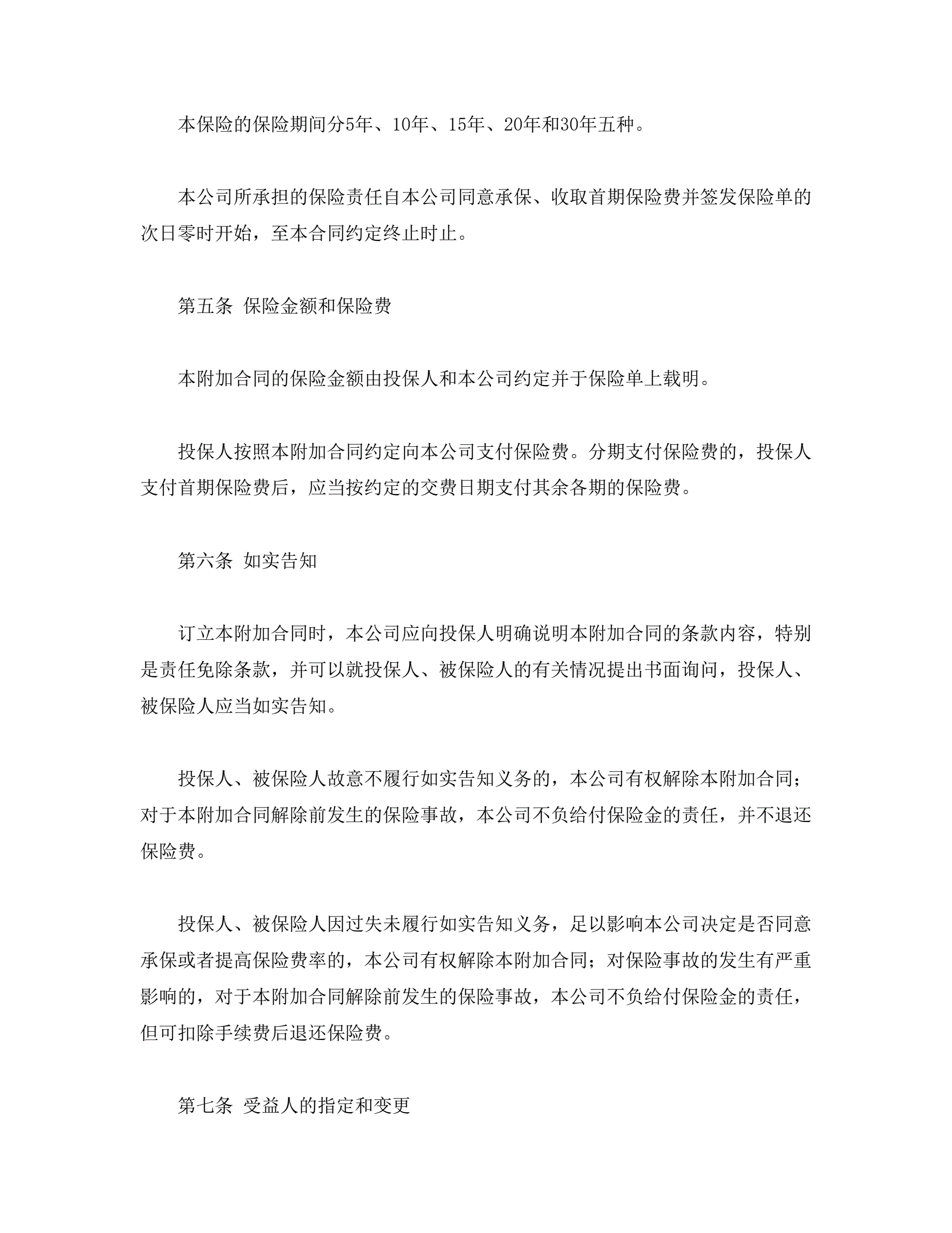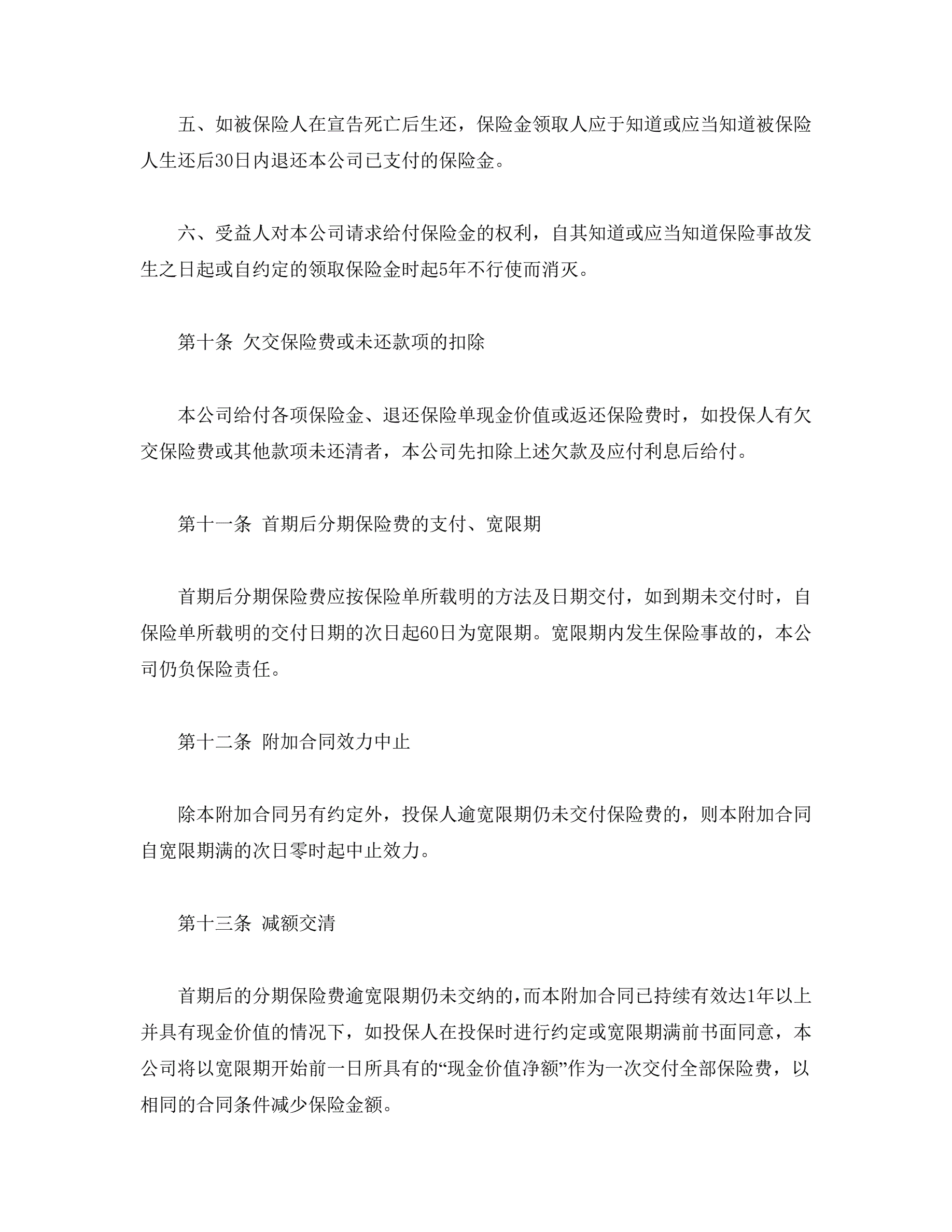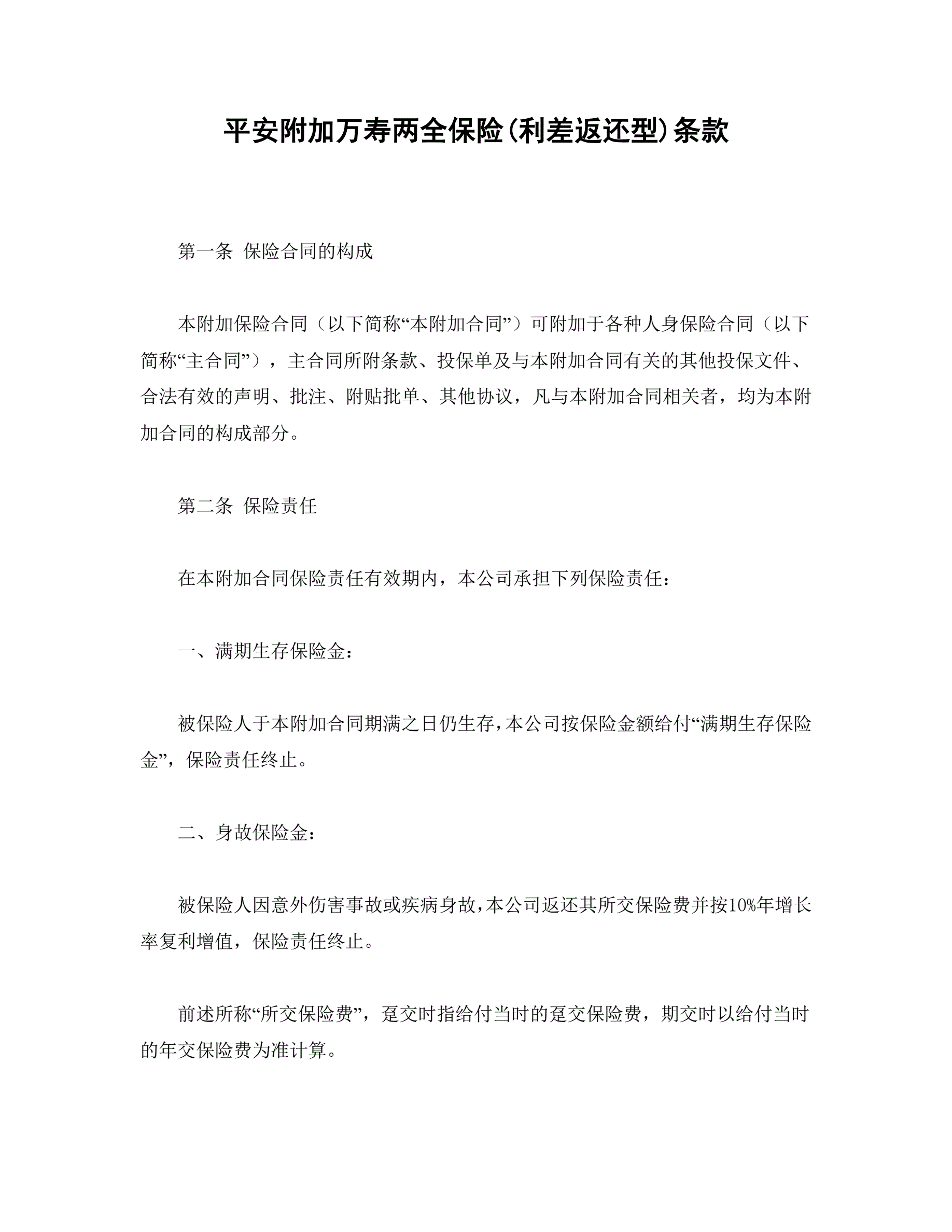 平安附加万寿两全保险(利差返还型)条款