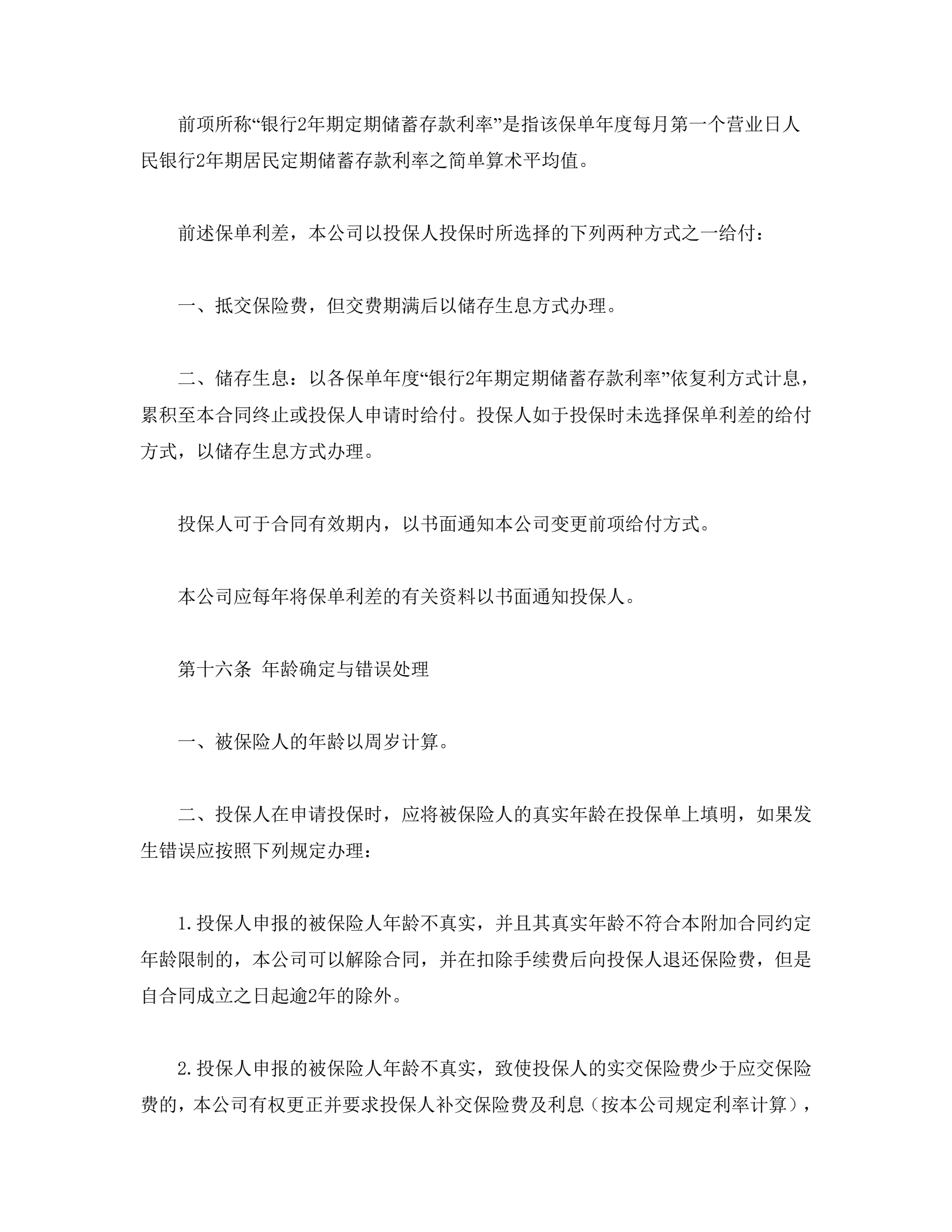 >平安附加万寿两全保险(利差返还型)条款