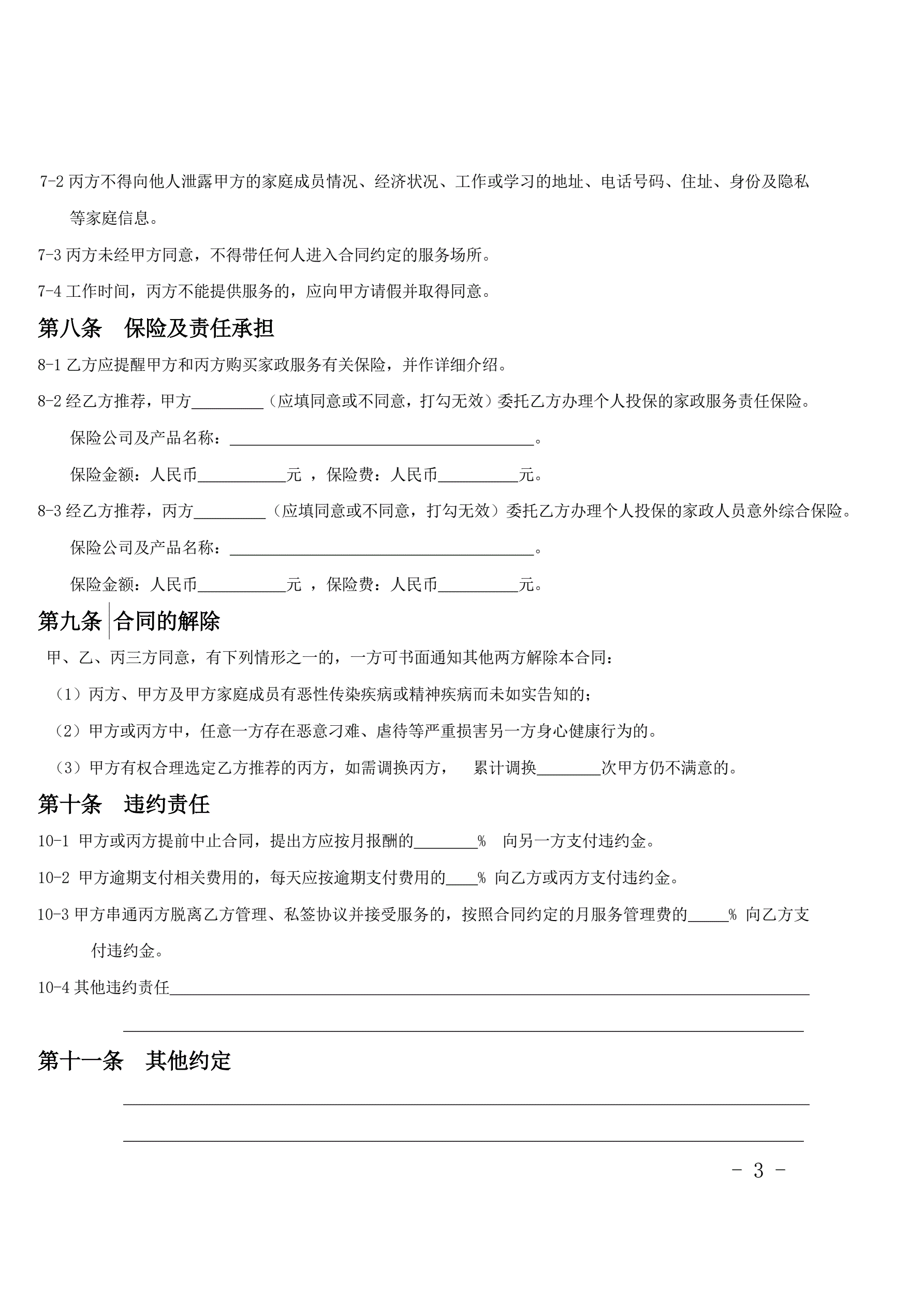保姆合同