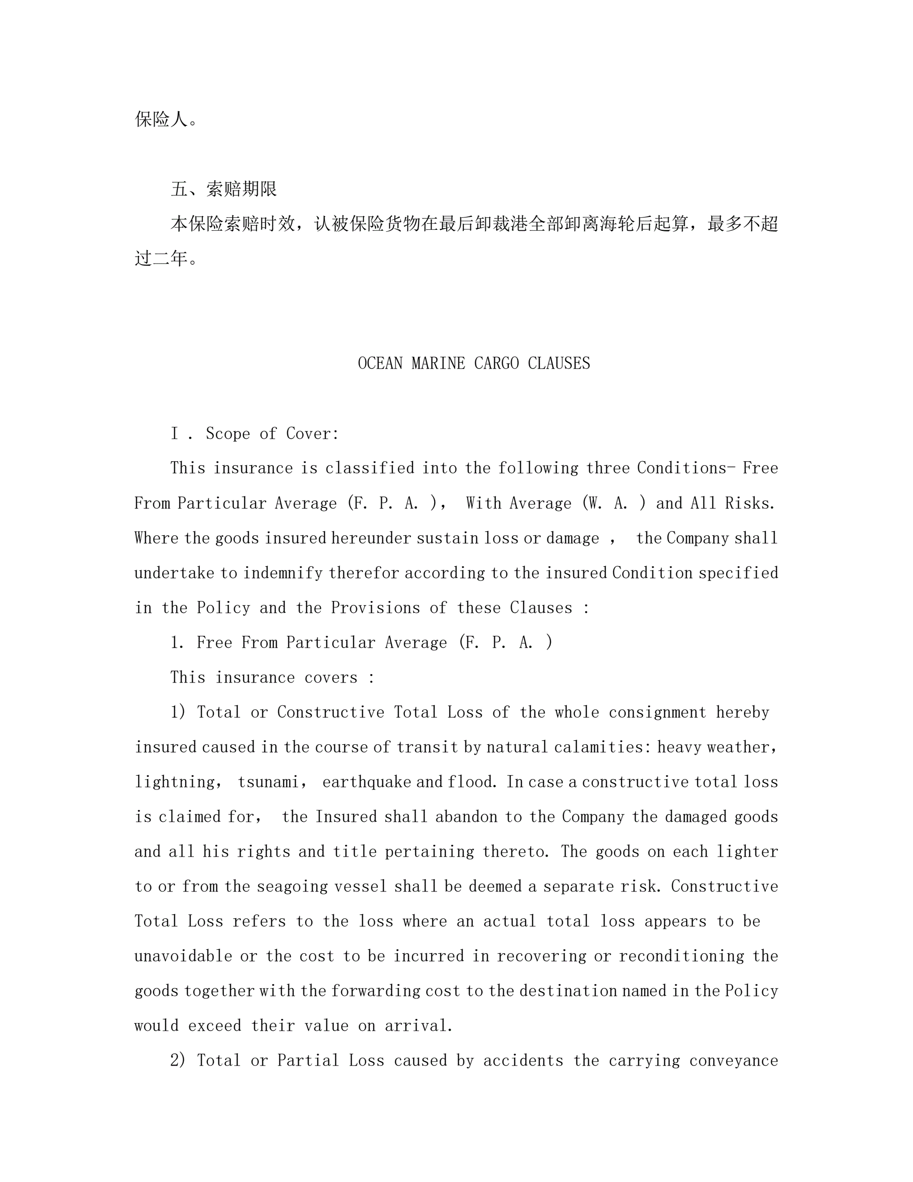海洋运输货物保险条款(附英文)