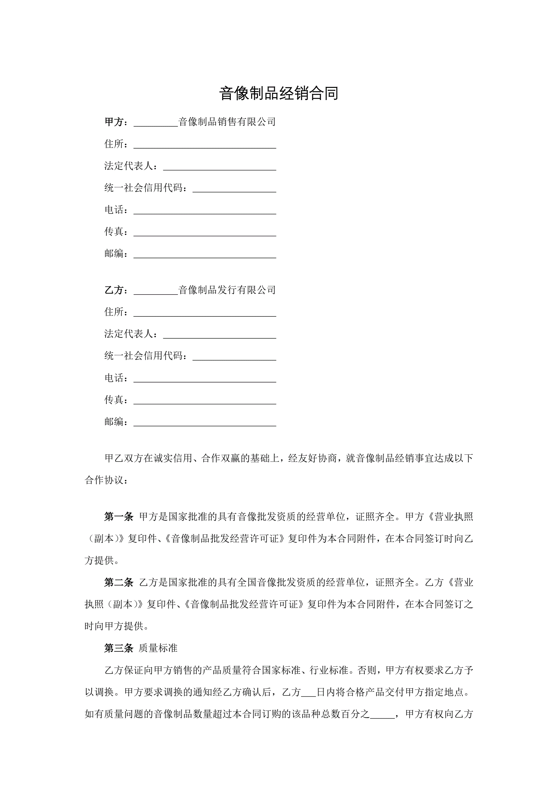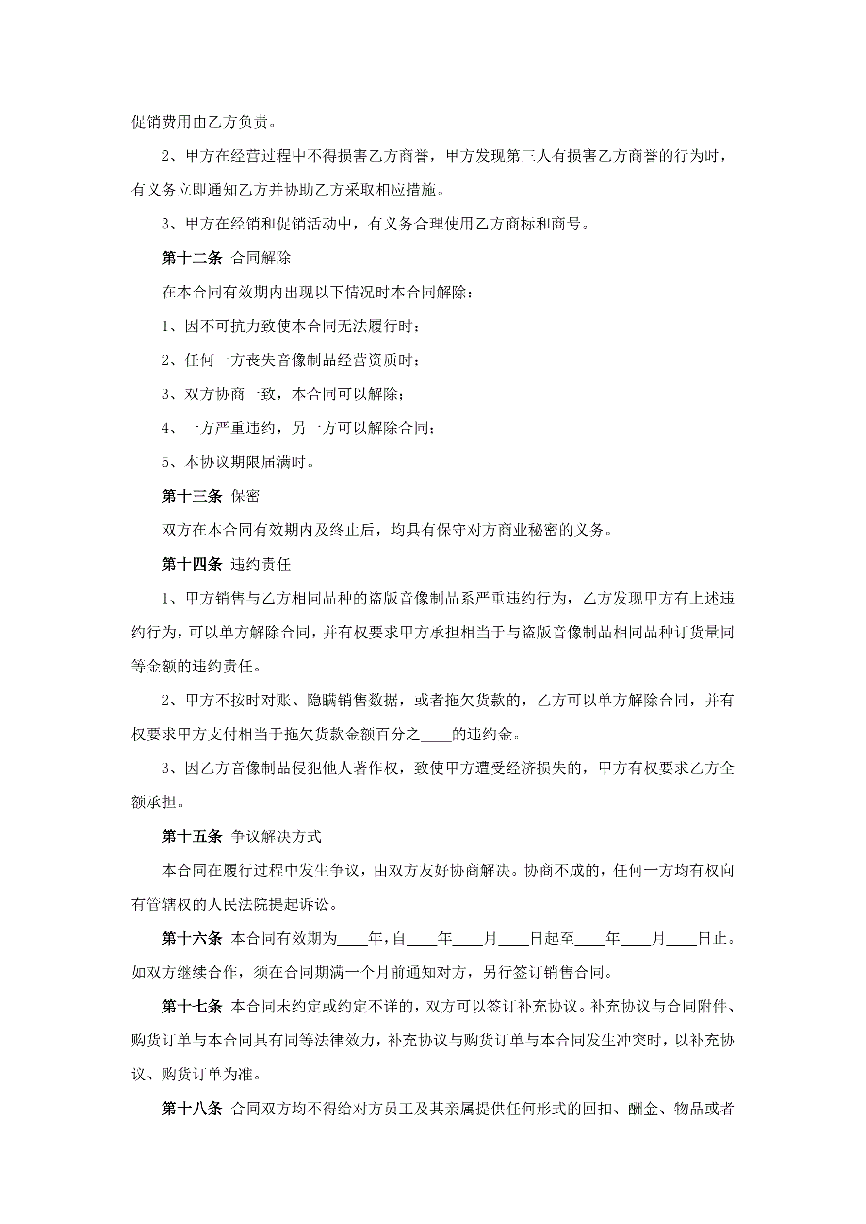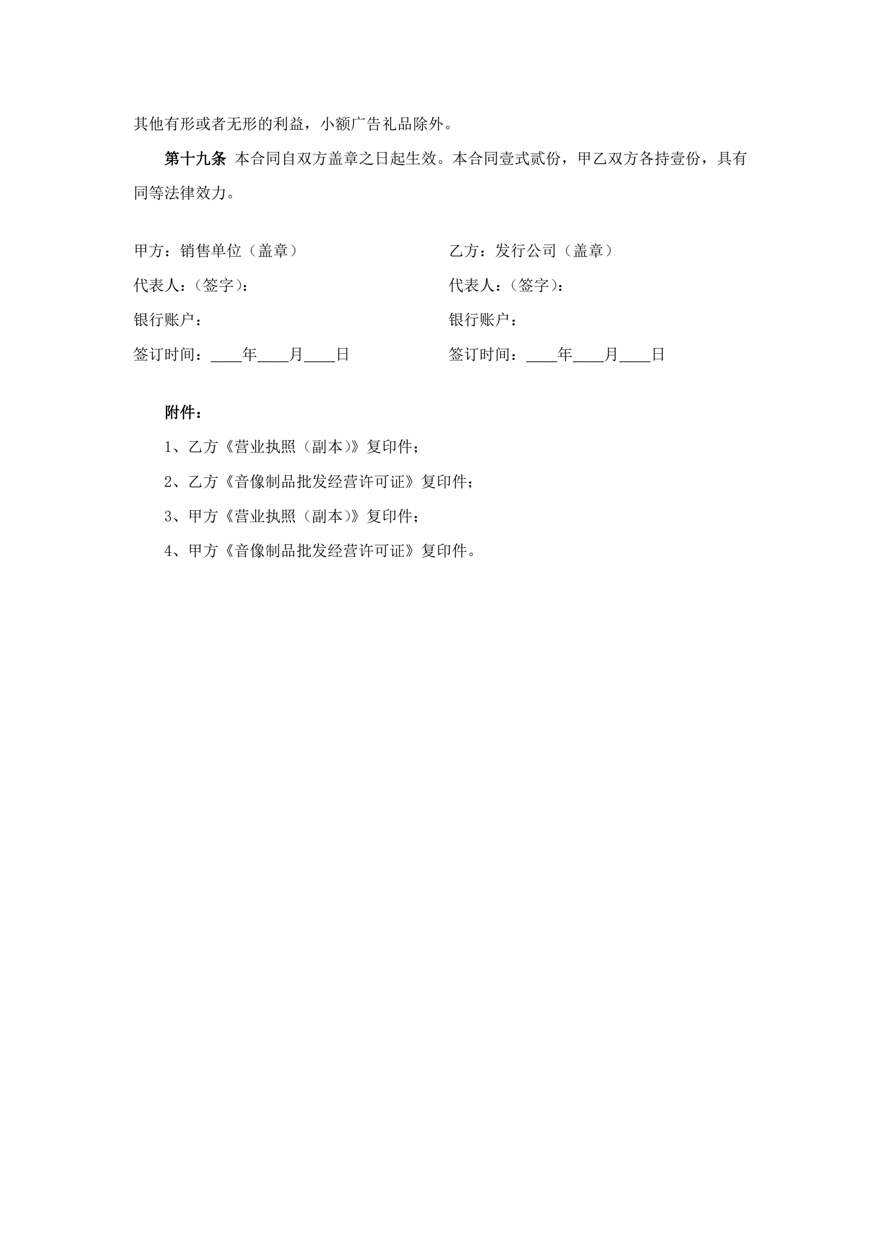 音像制品经销合同