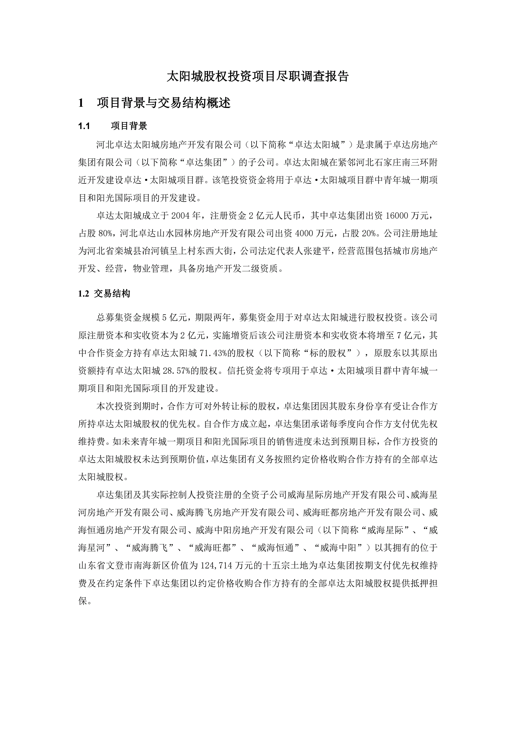 >房地产股权投资项目尽职调查报告