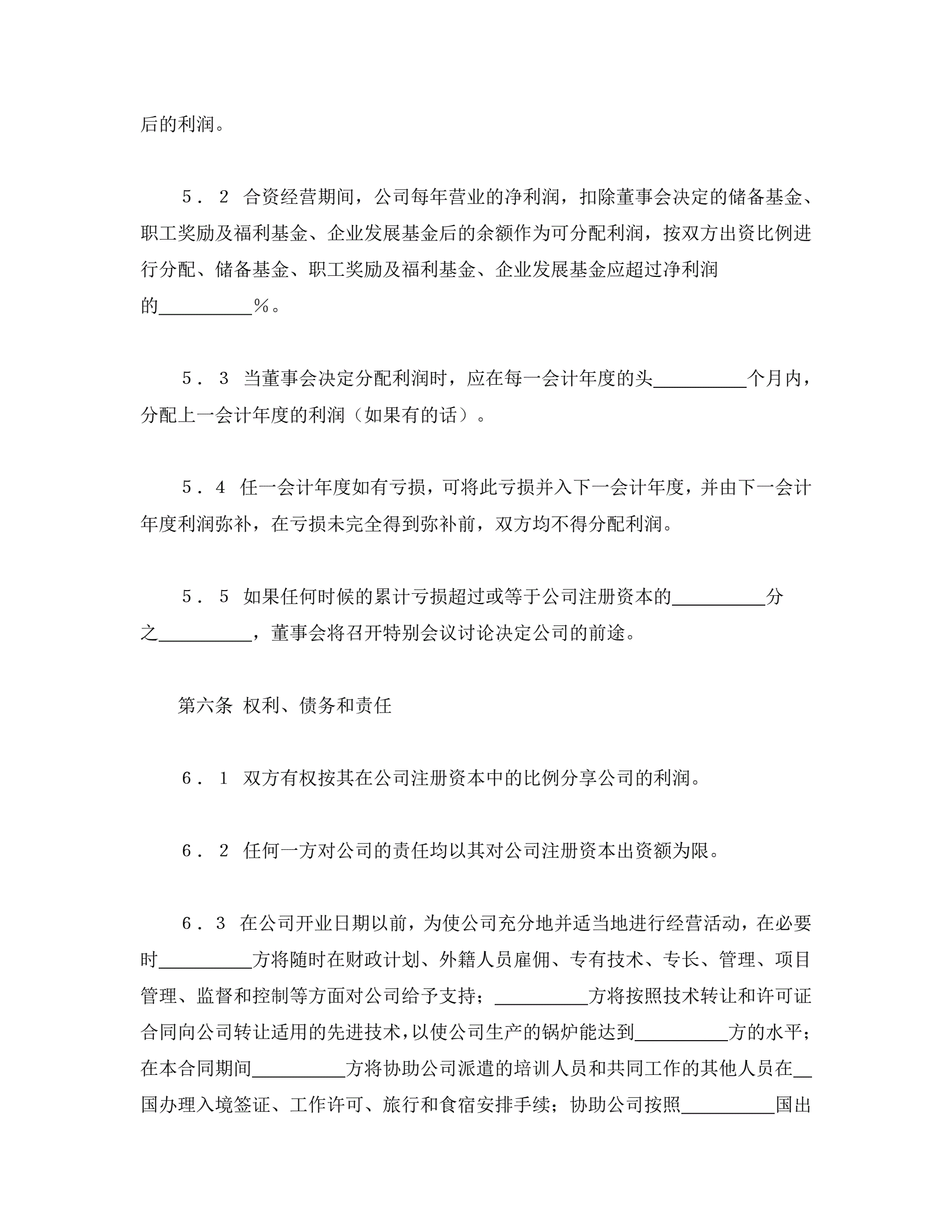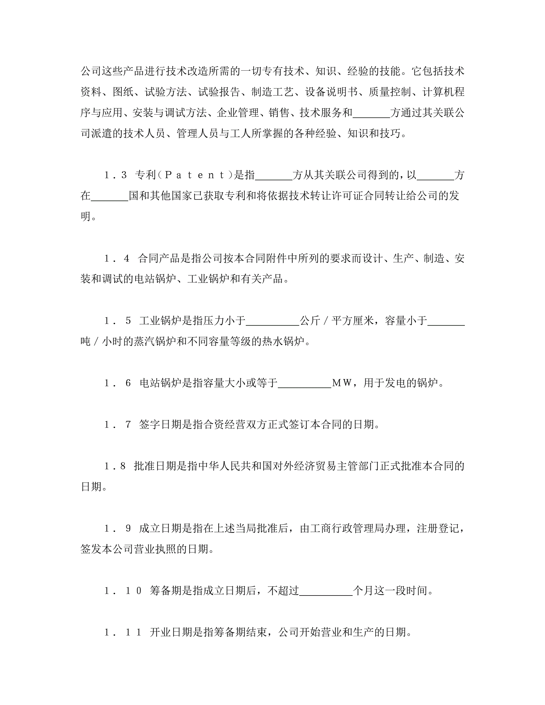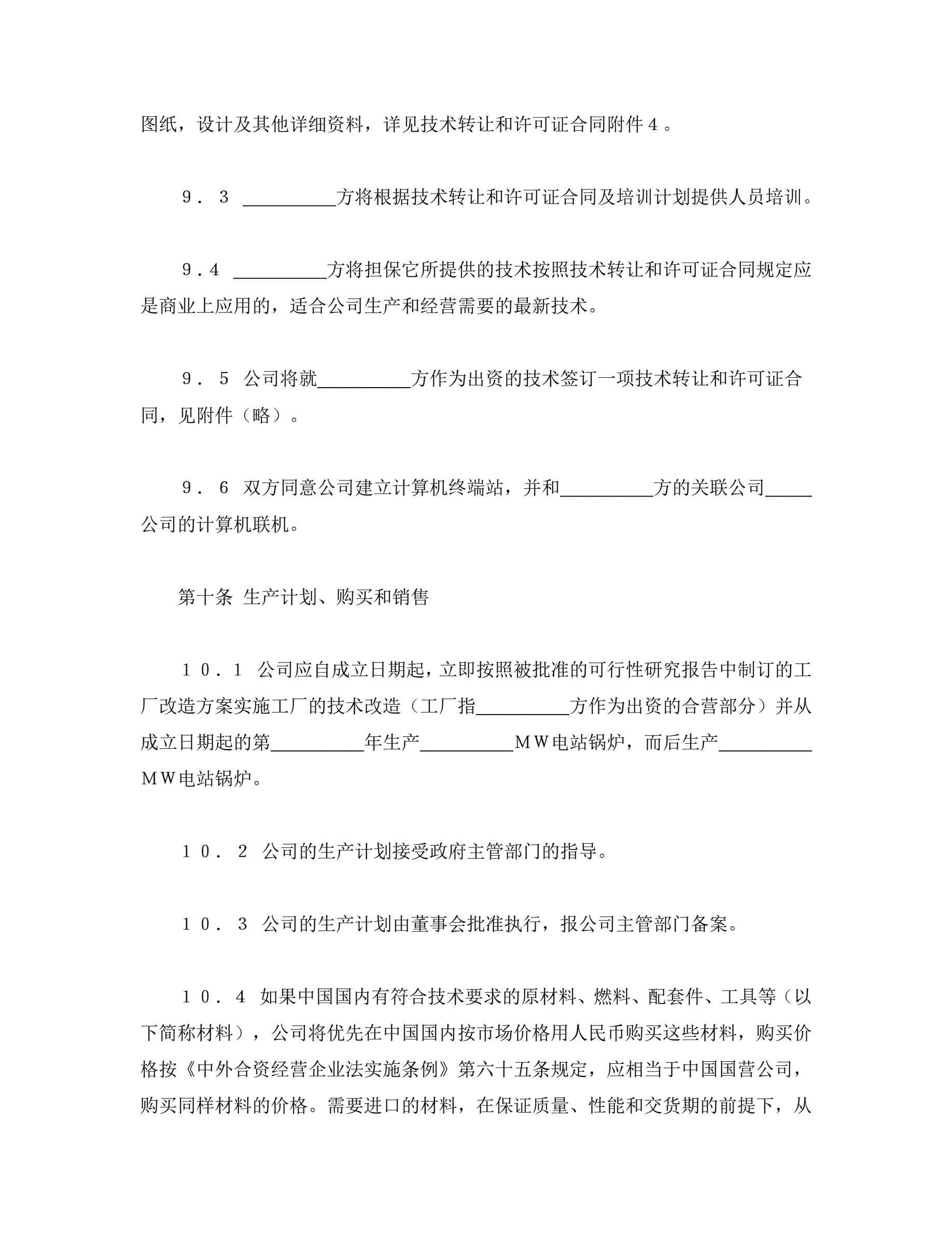 >中外合资经营企业合同(锅炉生产)