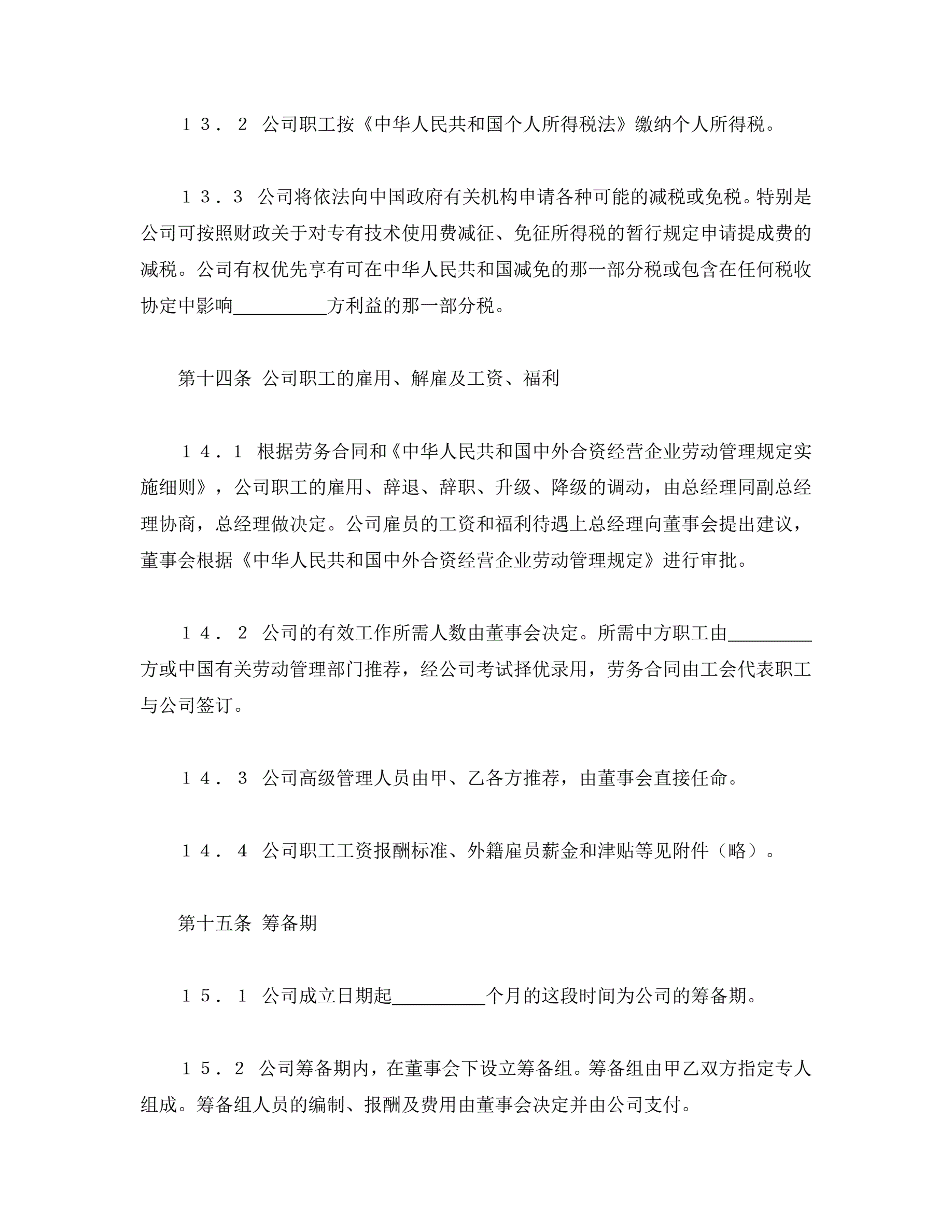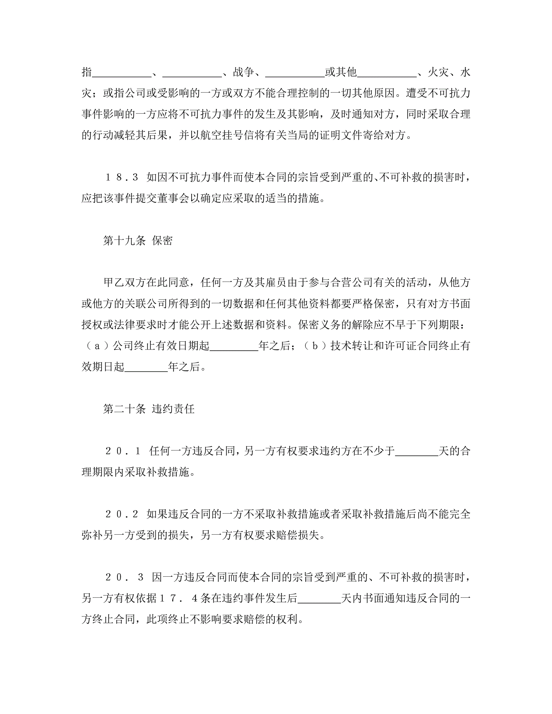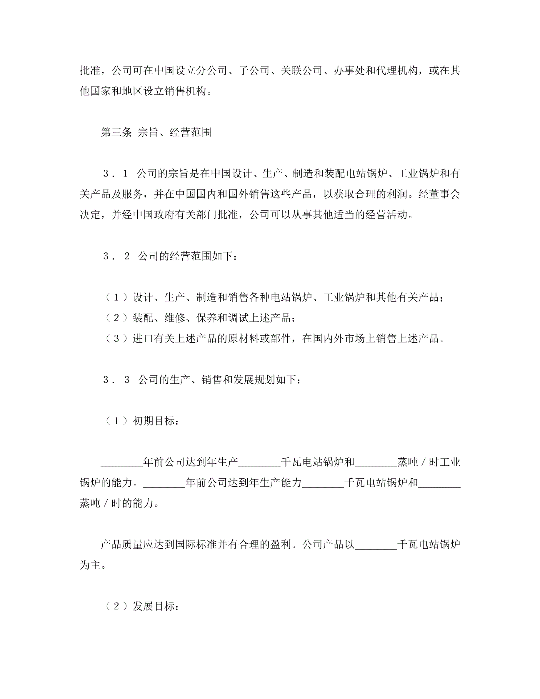 >中外合资经营企业合同(锅炉生产)