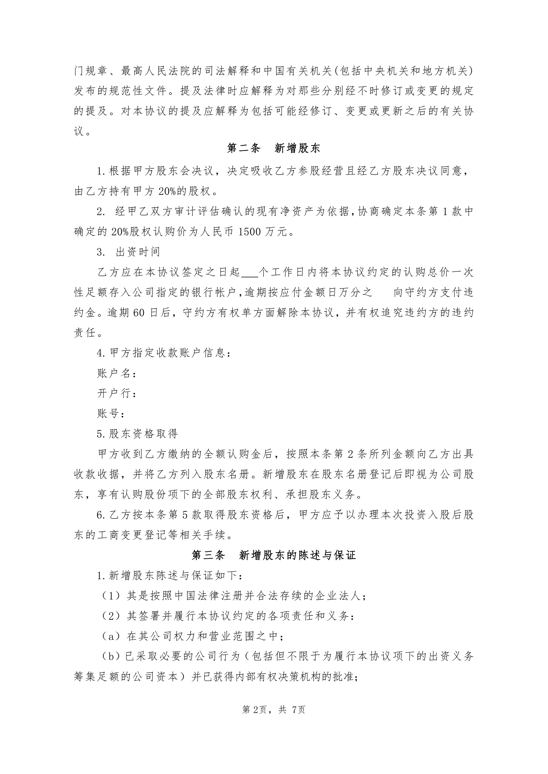 投资入股协议书