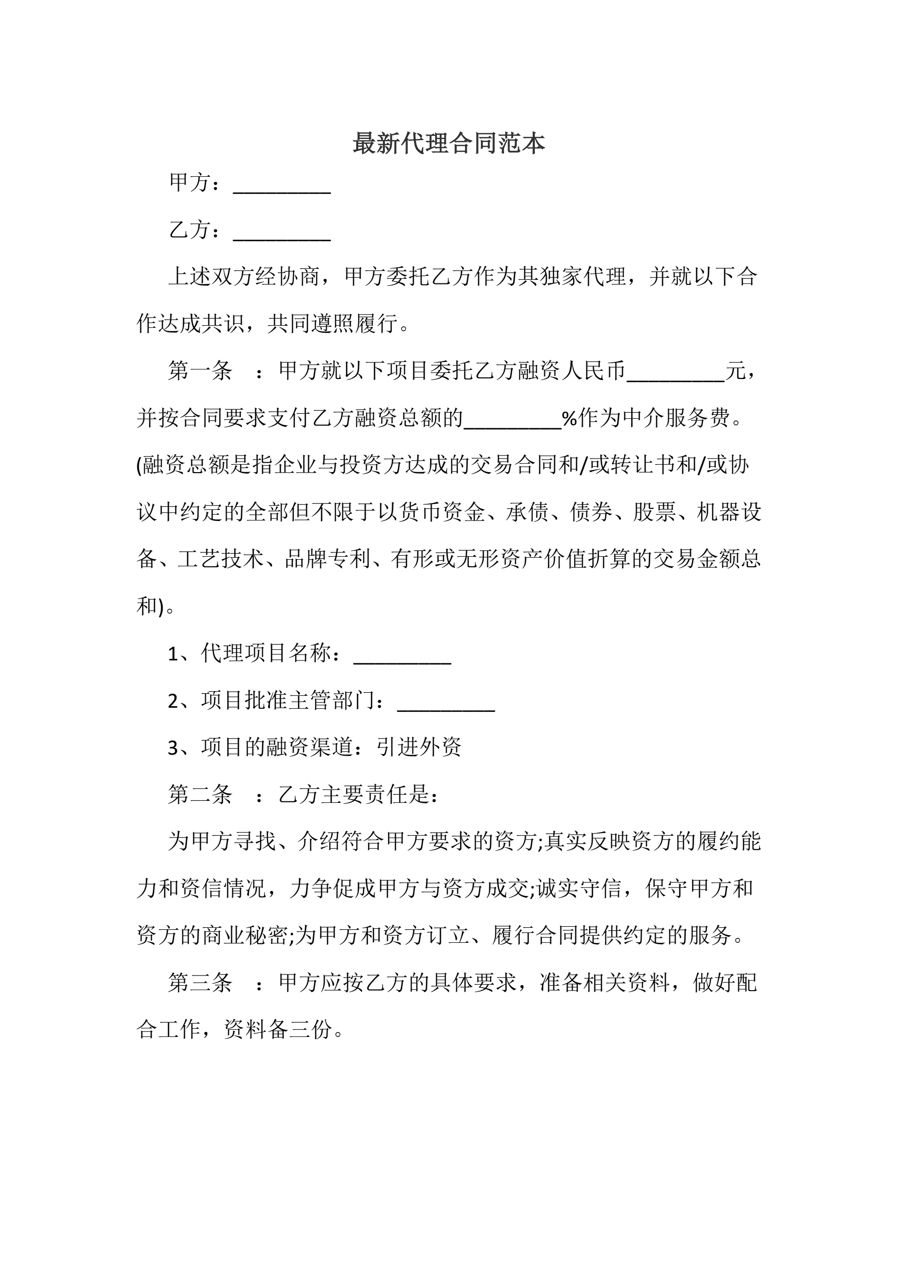 最新代理合同范本