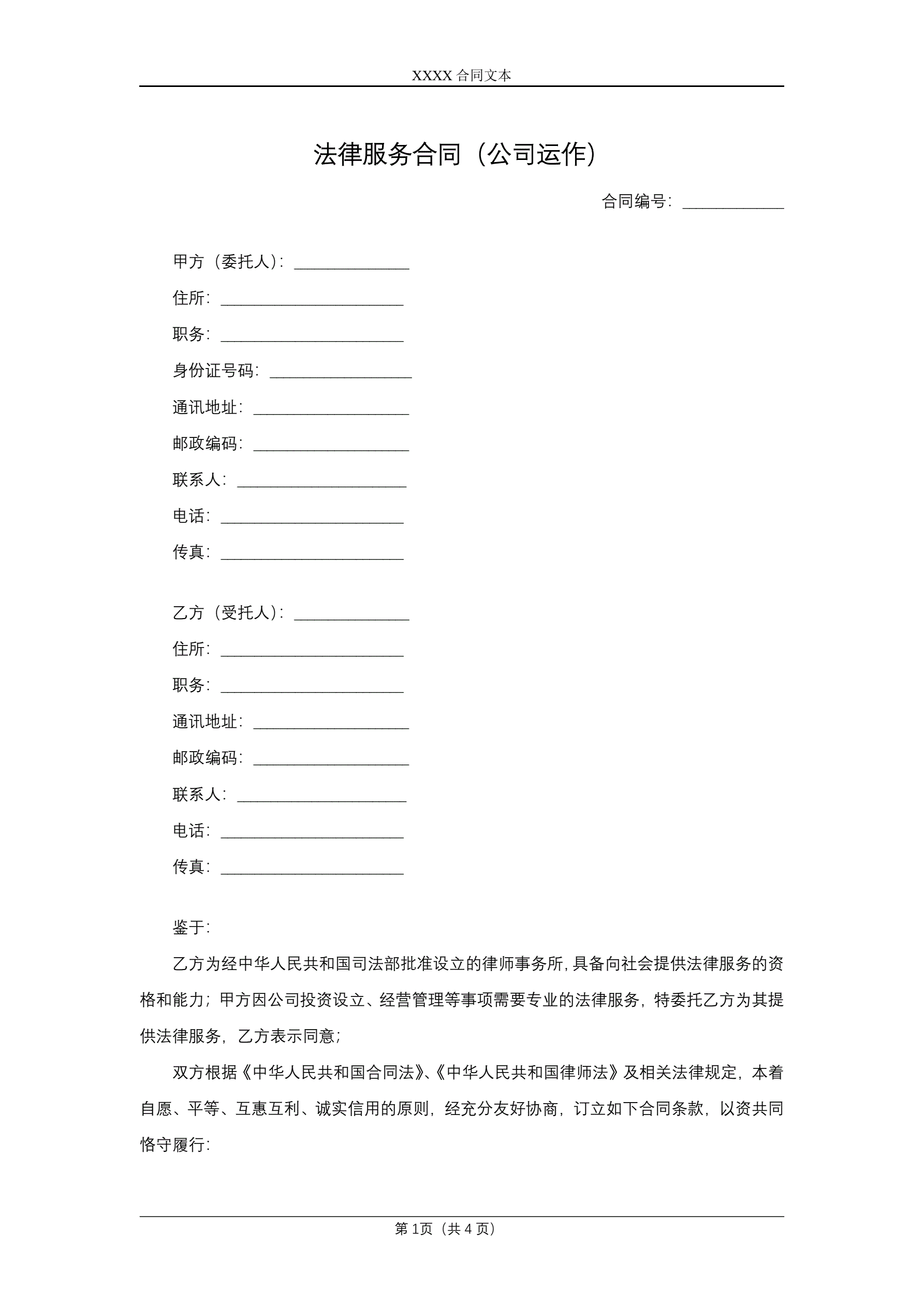 >法律服务合同(公司运作)
