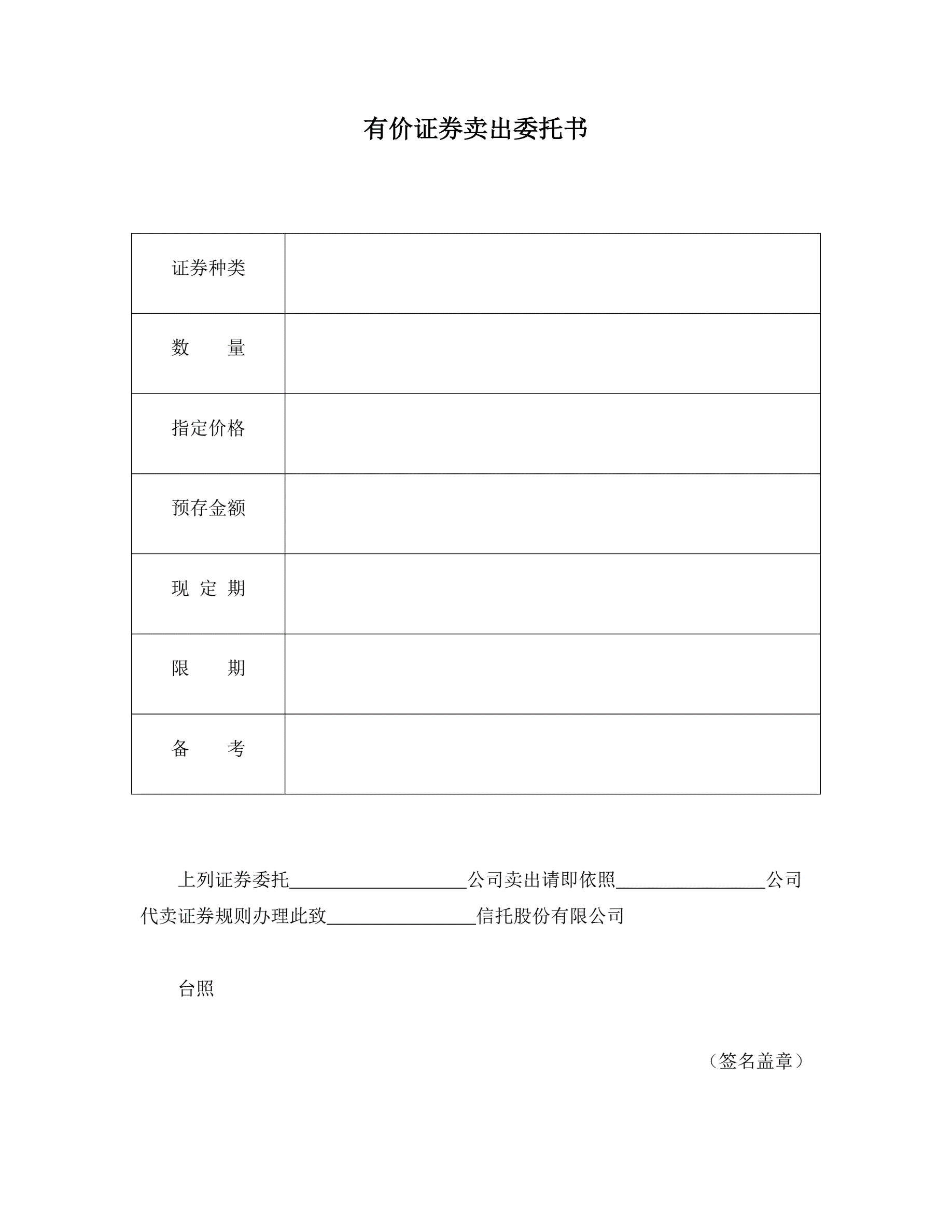 有价证券卖出委托书