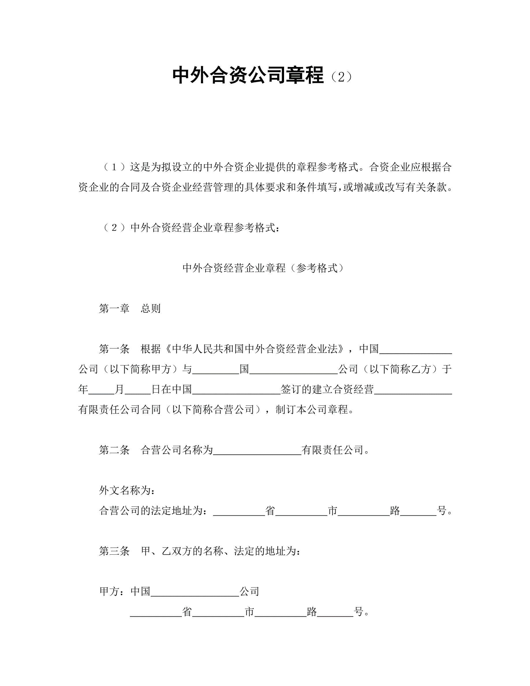 中外合资公司章程(2)