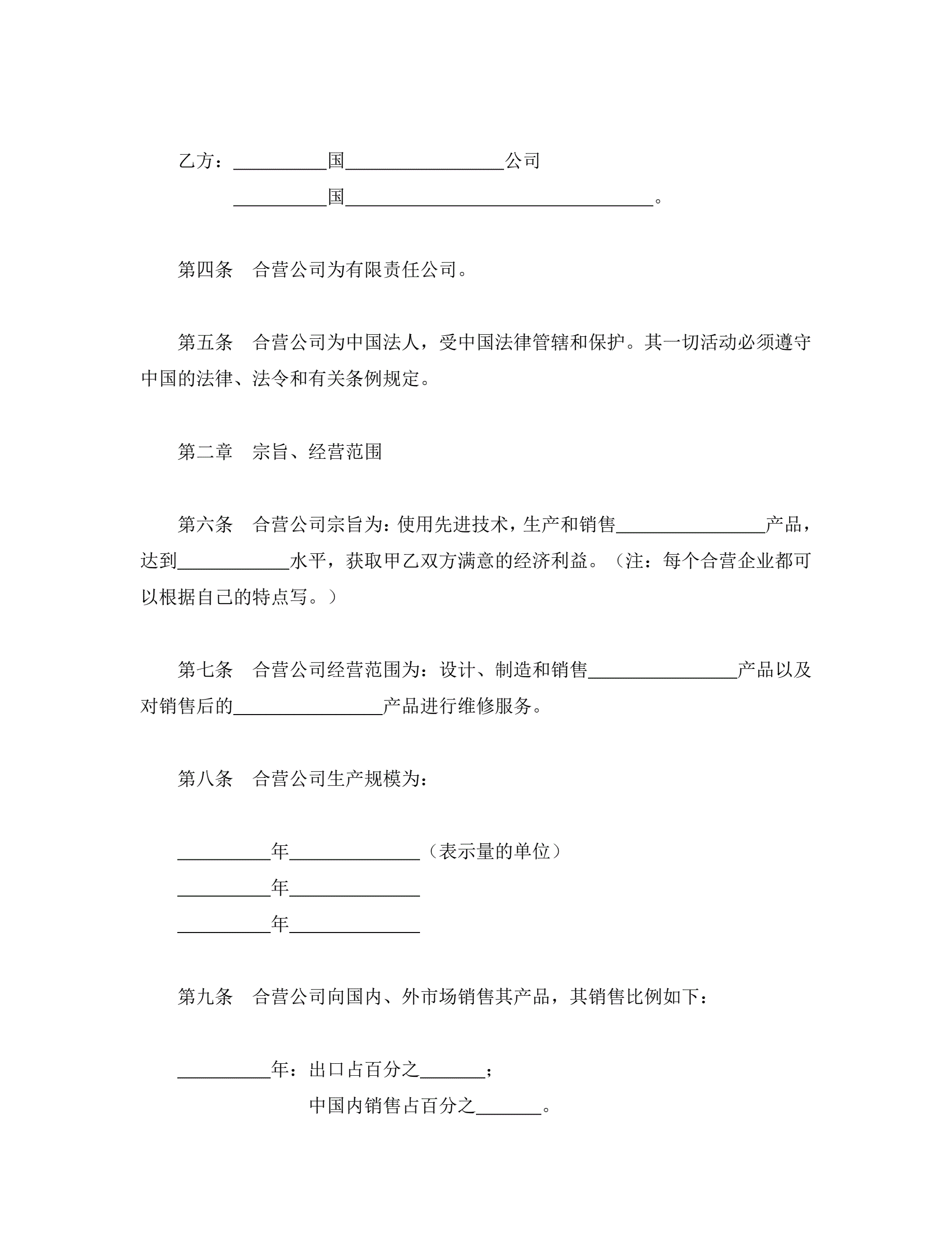>中外合资公司章程(2)