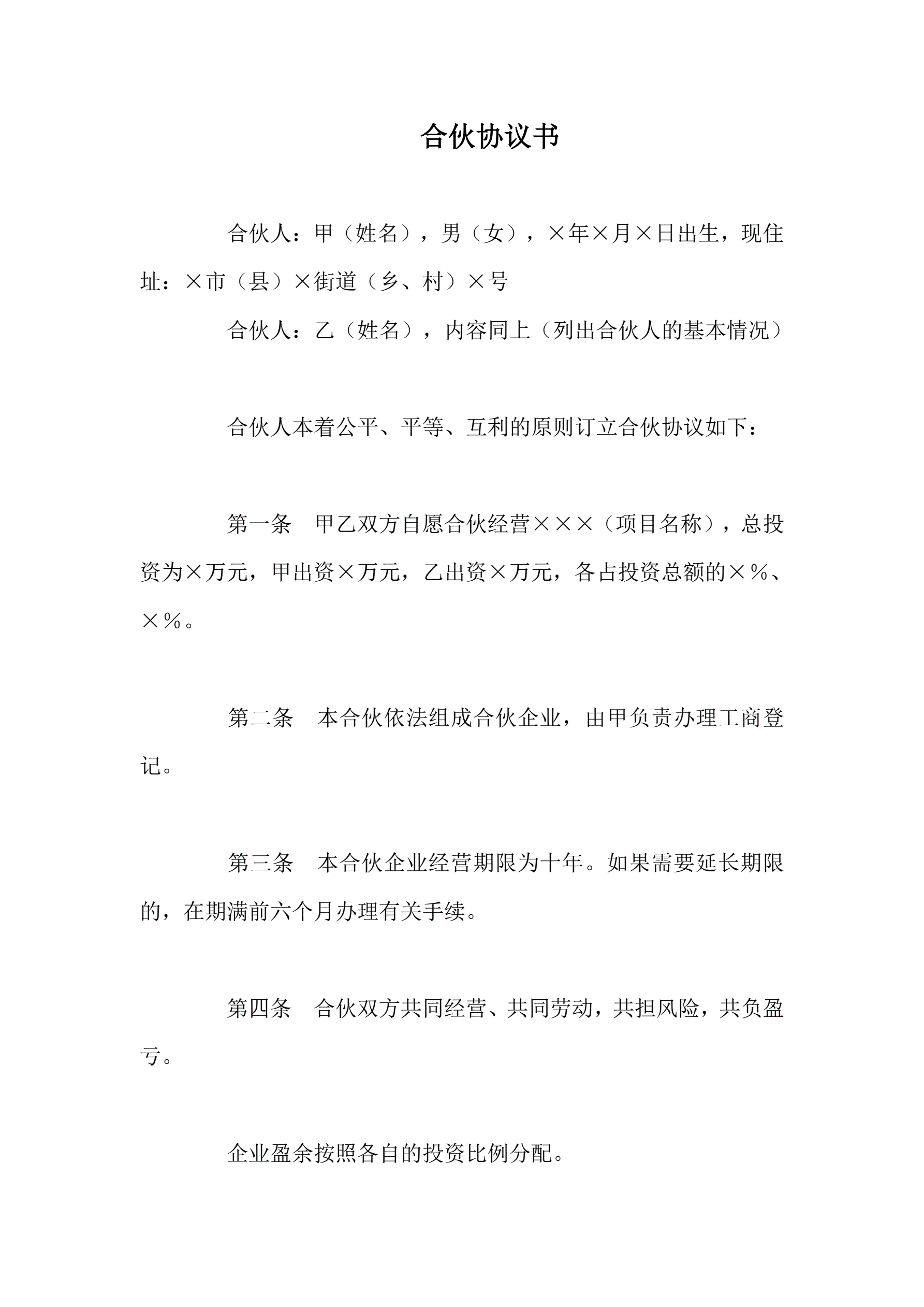 >合伙协议书