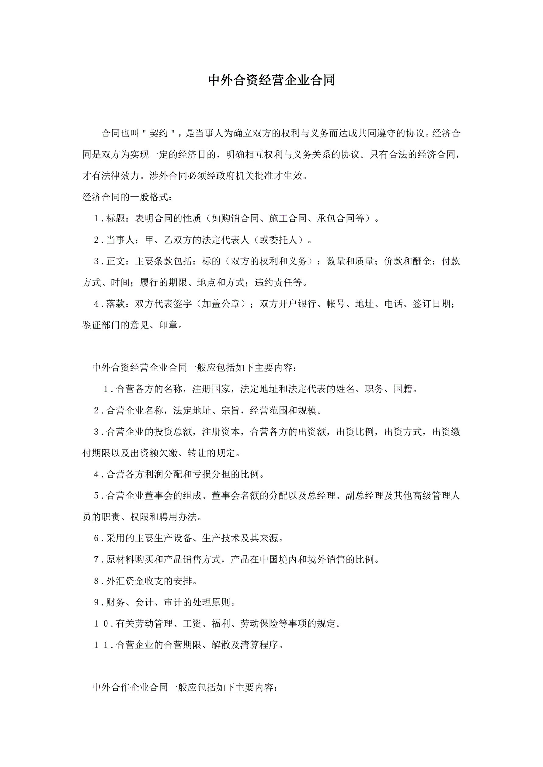 >中外合资经营企业合同