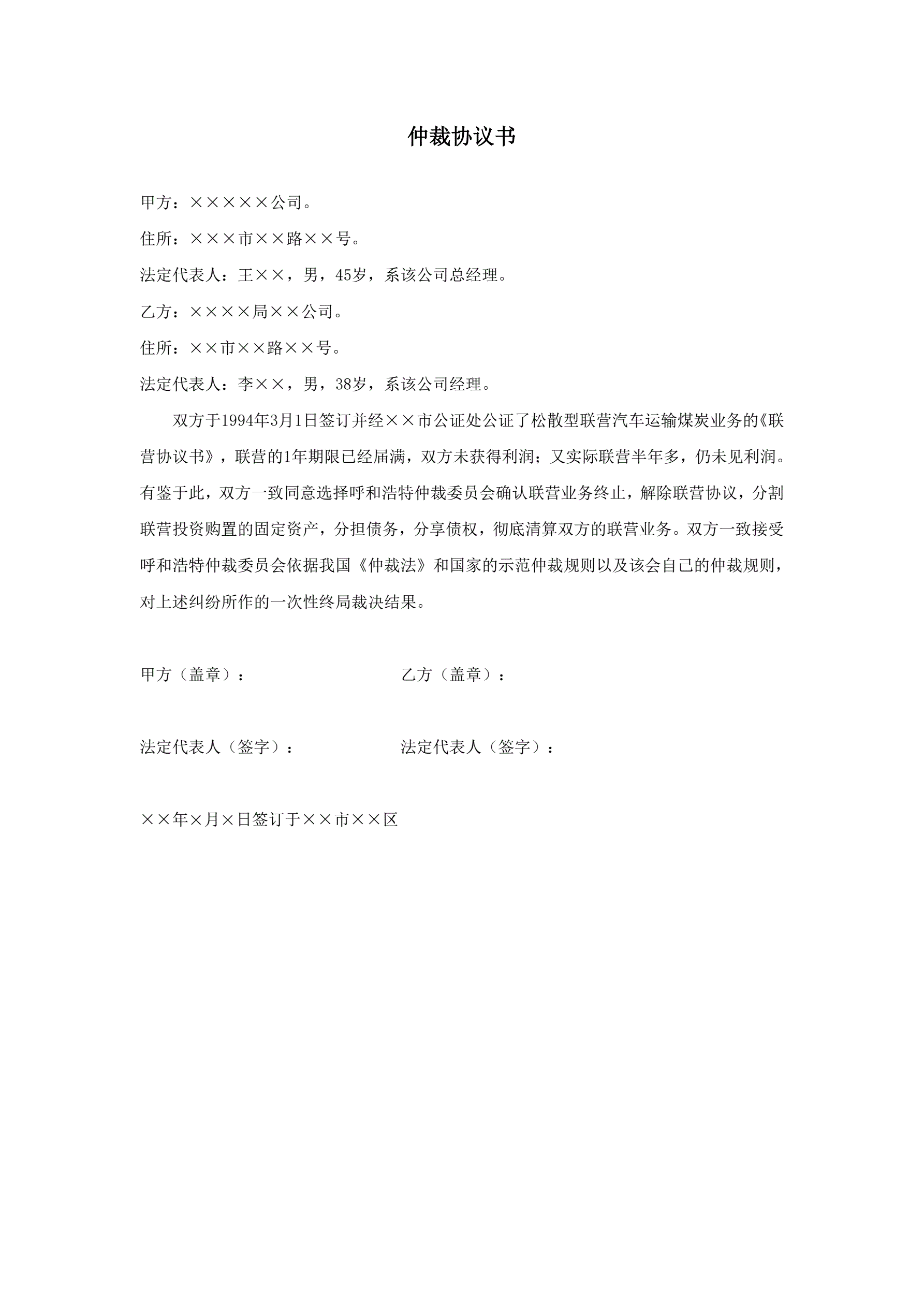 >仲裁协议书