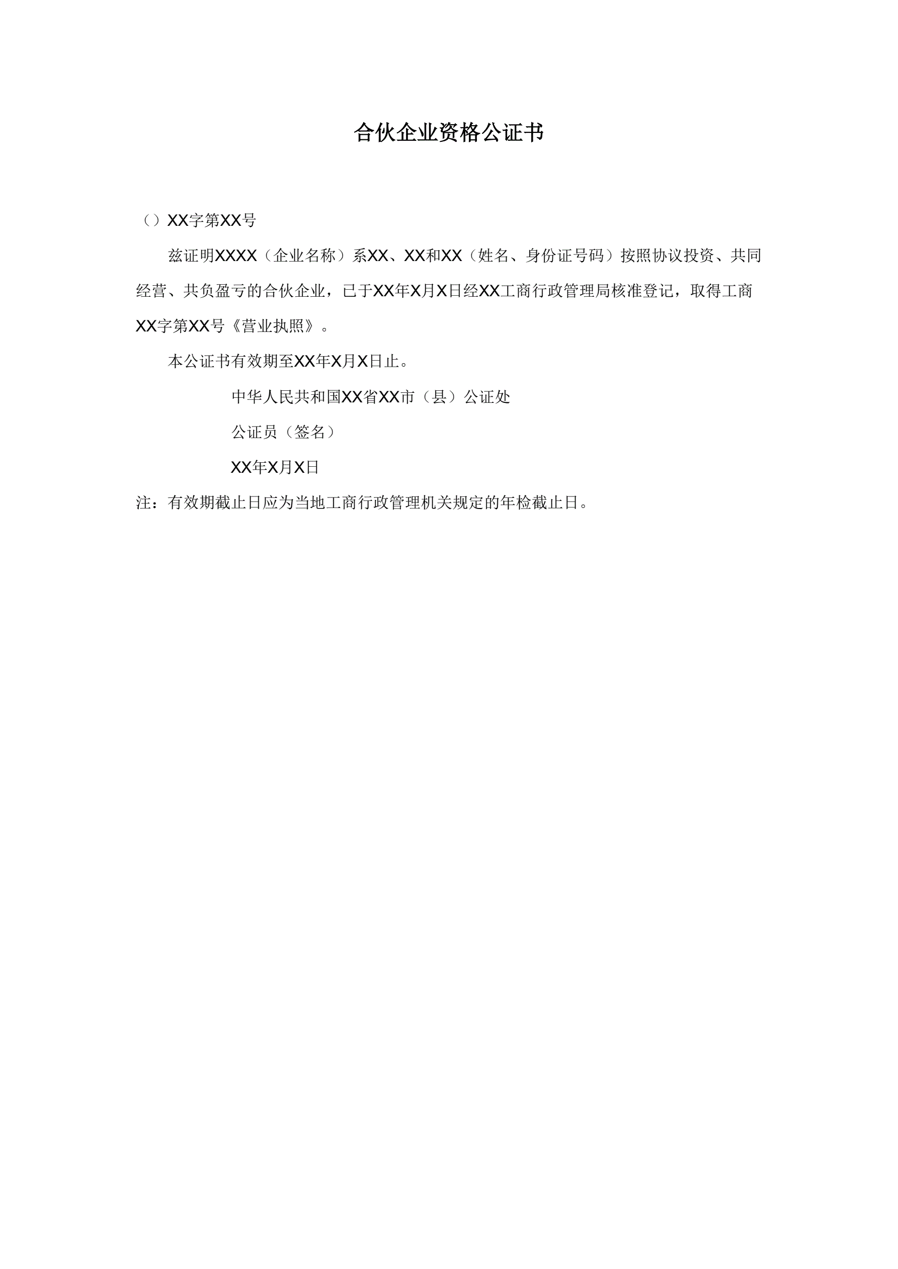 >合伙企业资格公证书