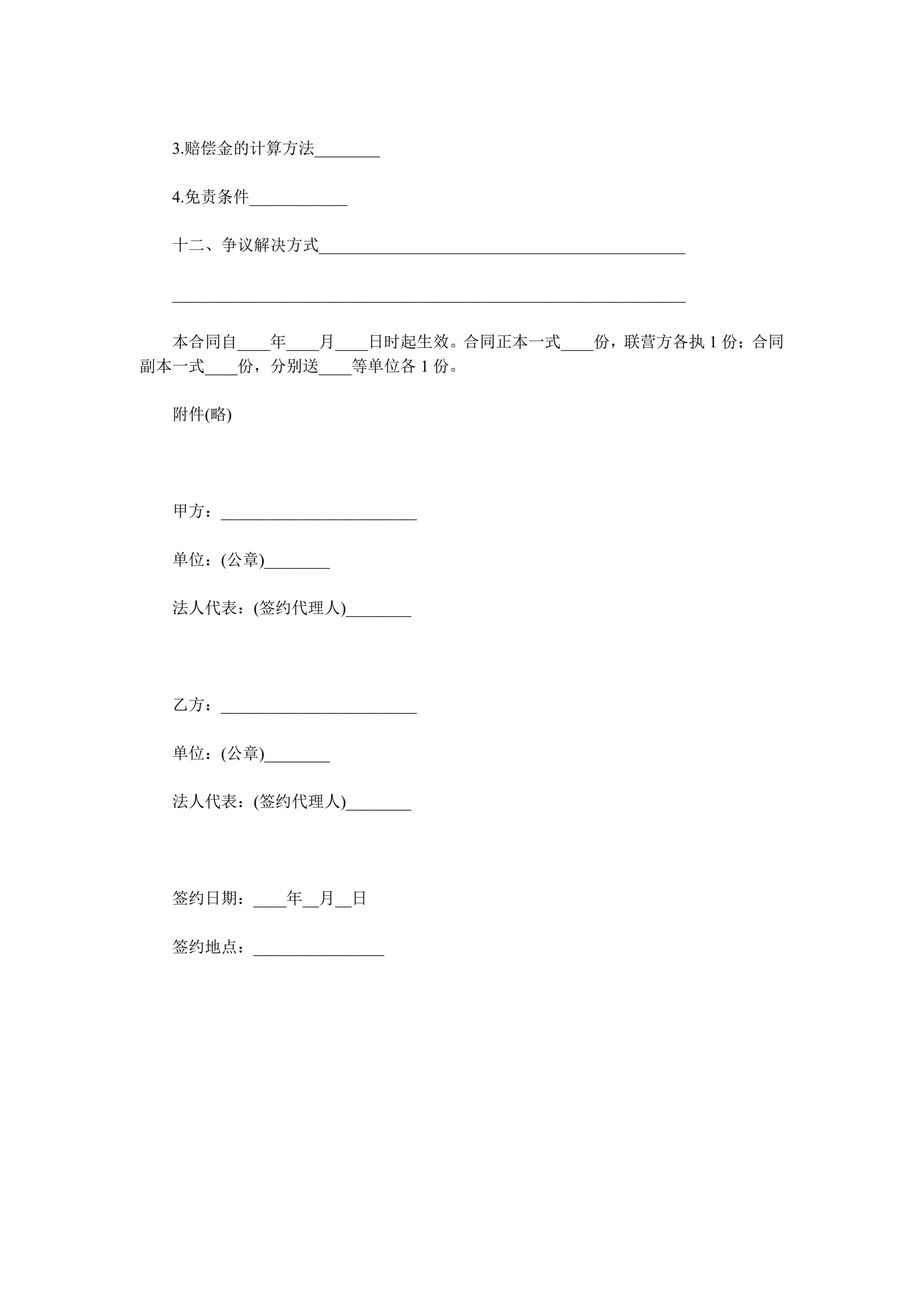 合伙型联营合同