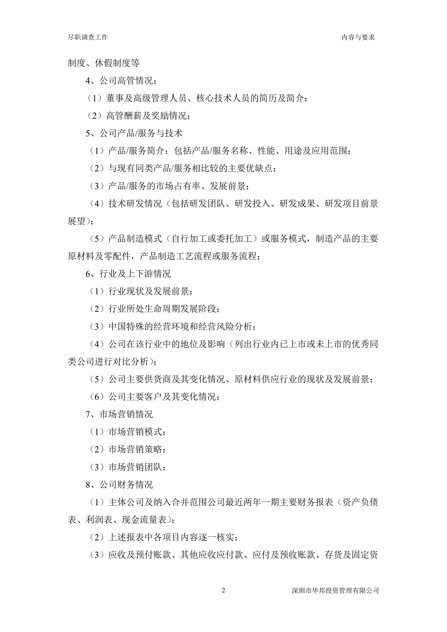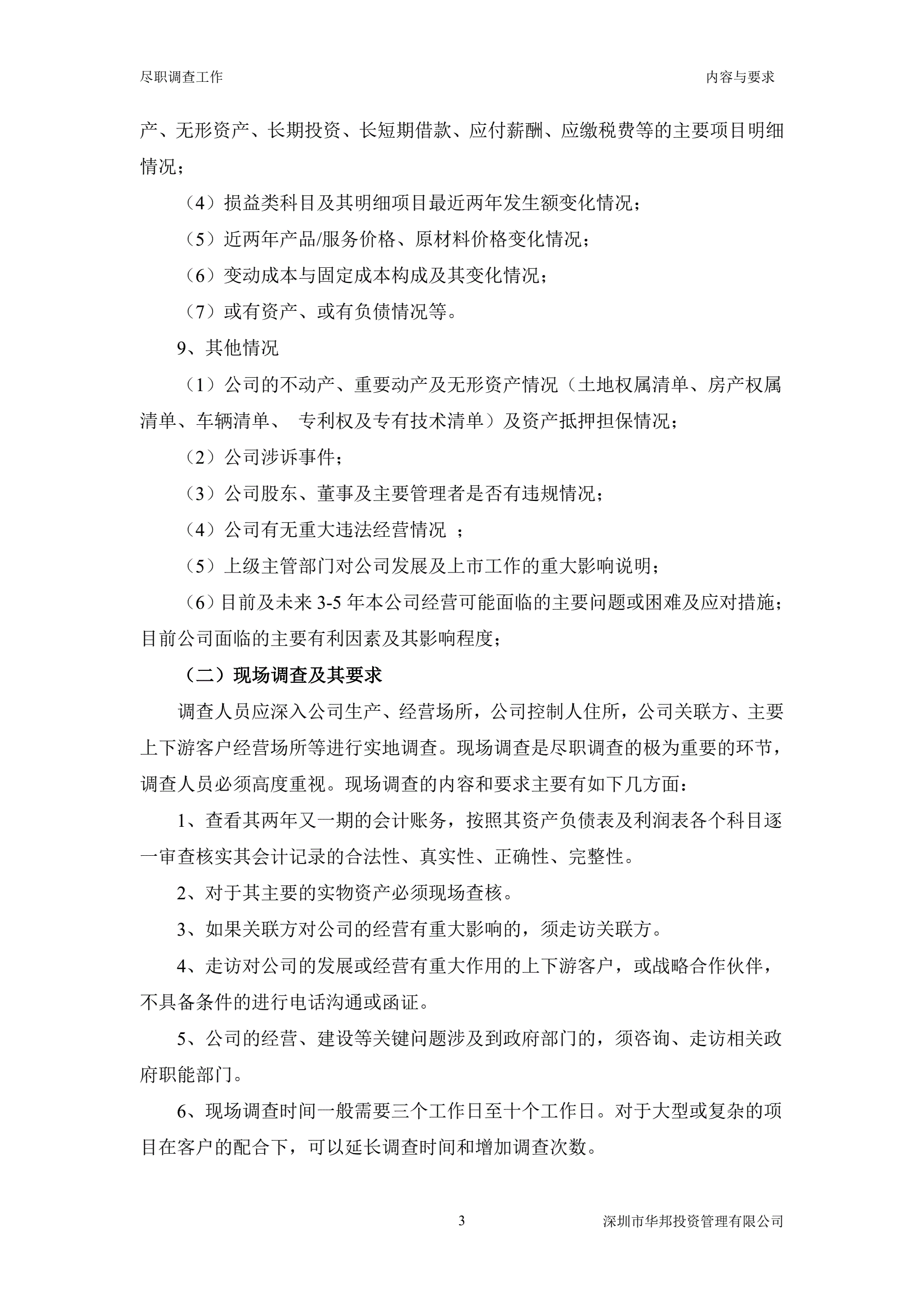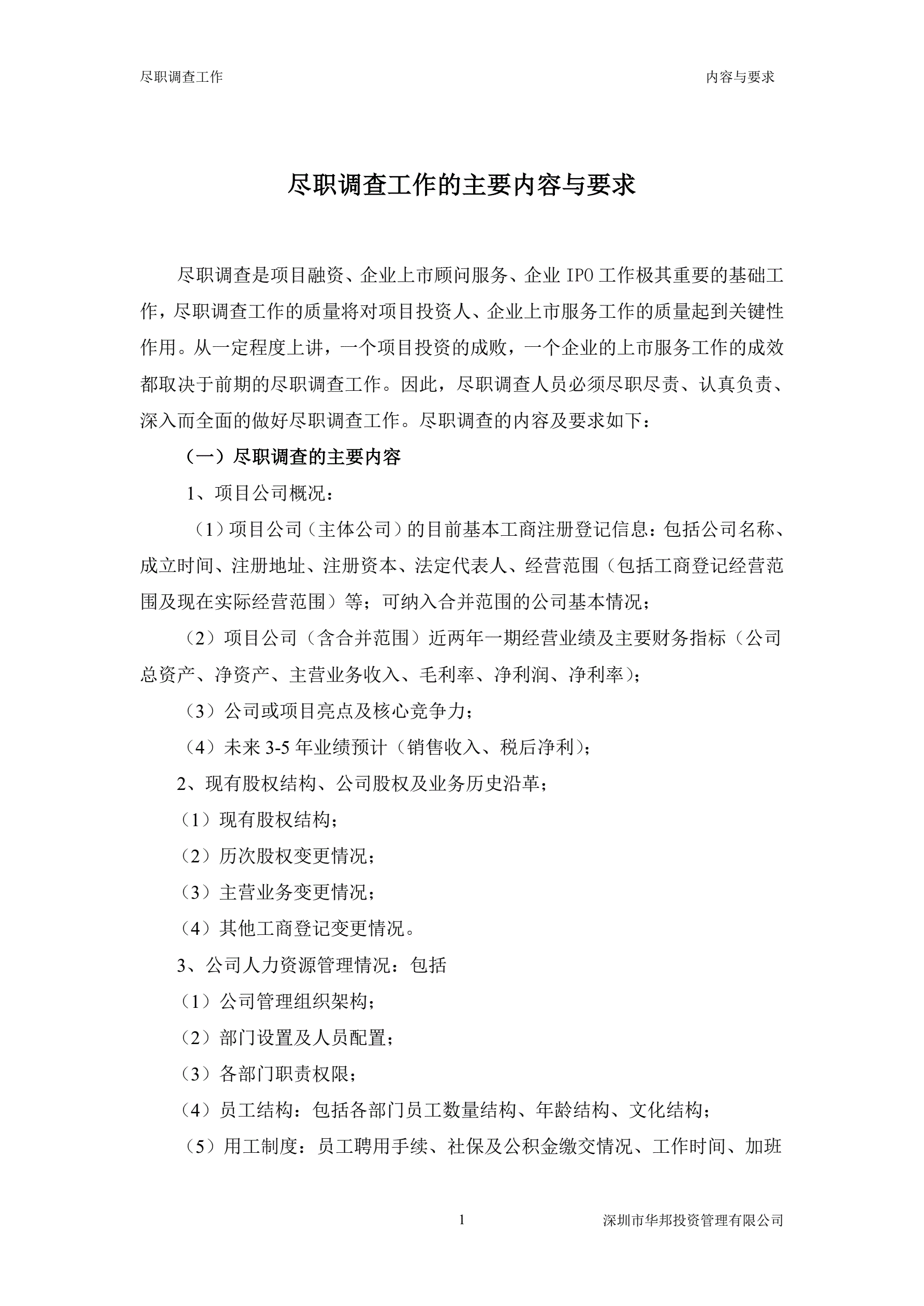 尽职调查工作的主要内容与要求