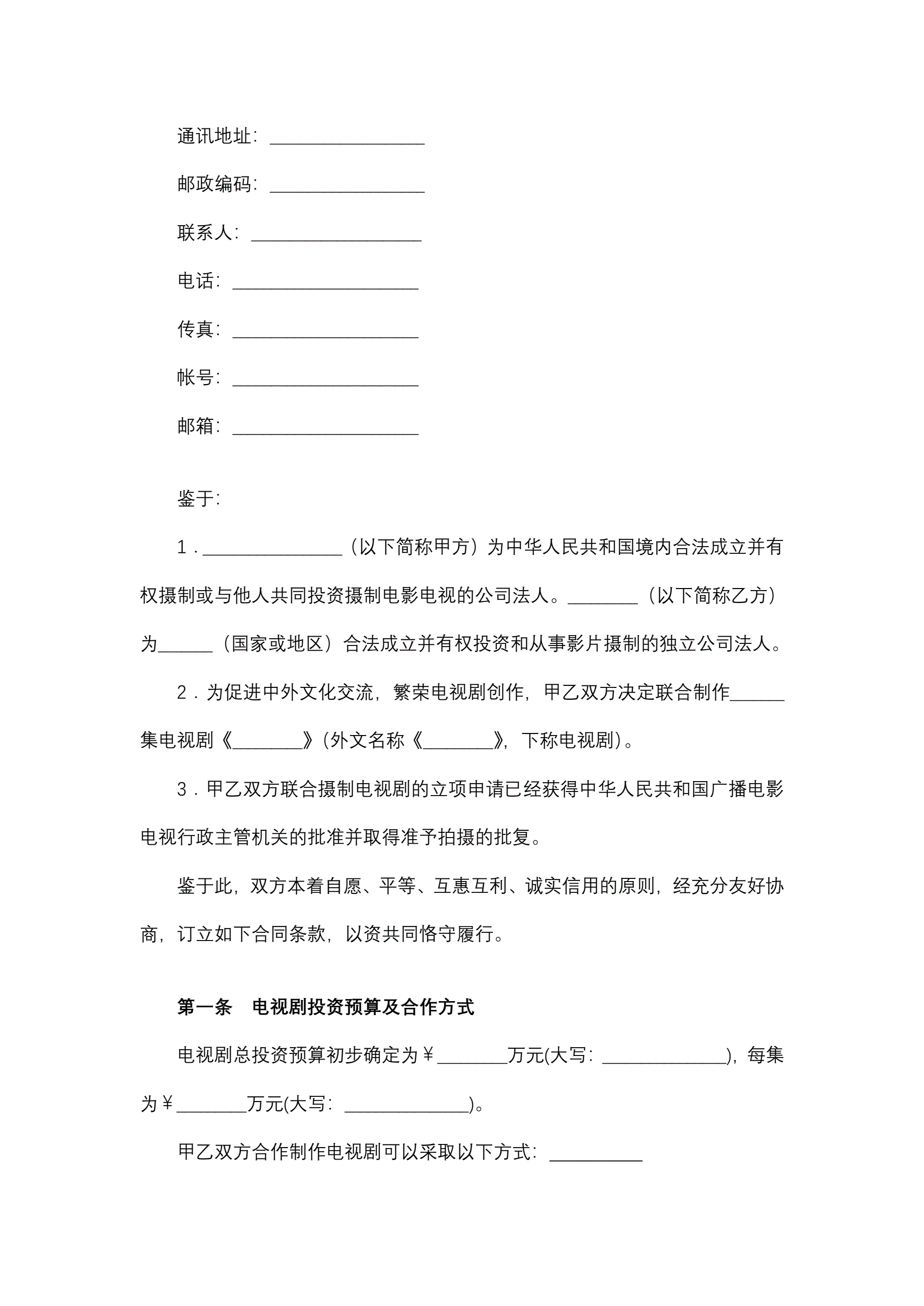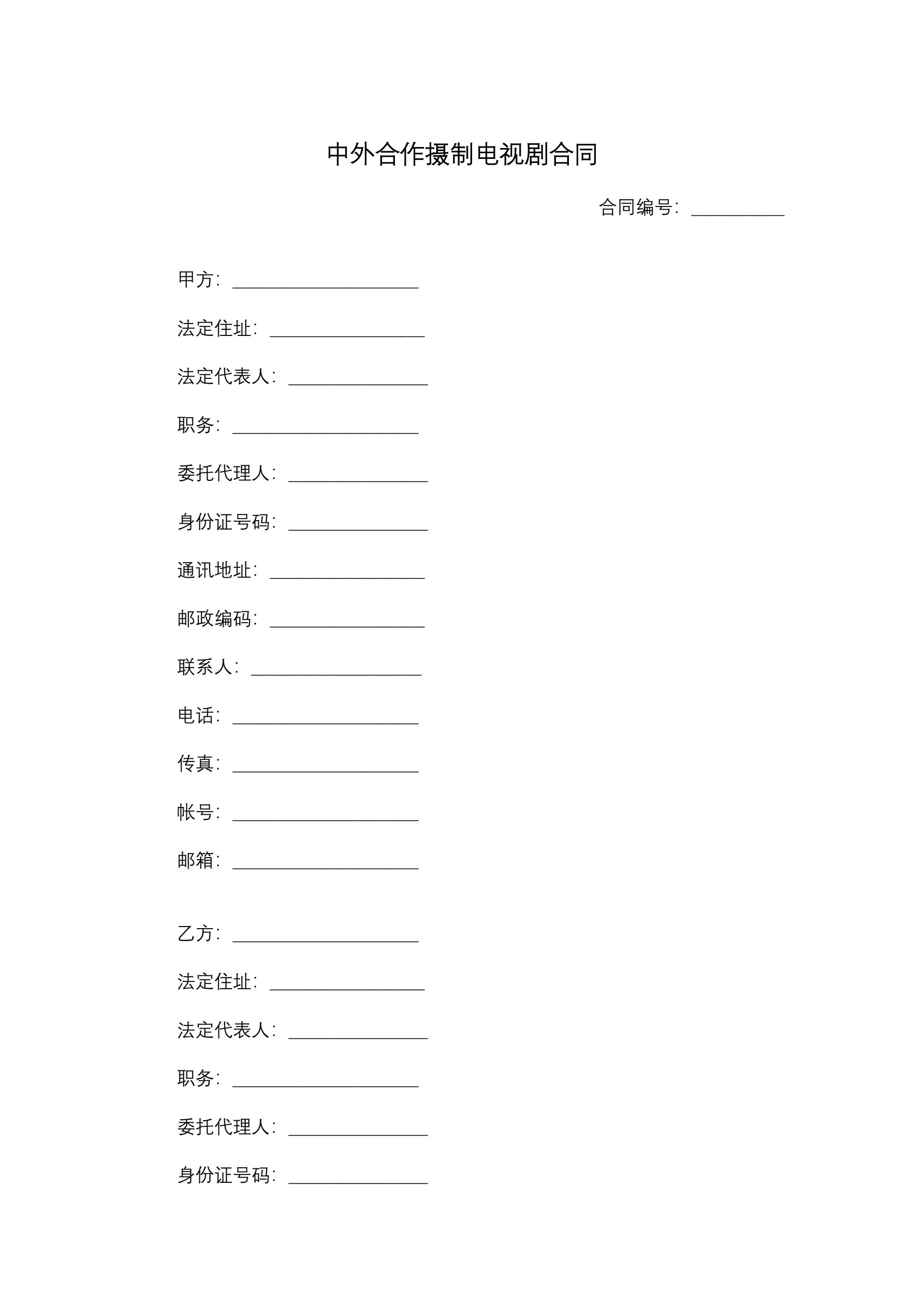 中外合作摄制电视剧合同