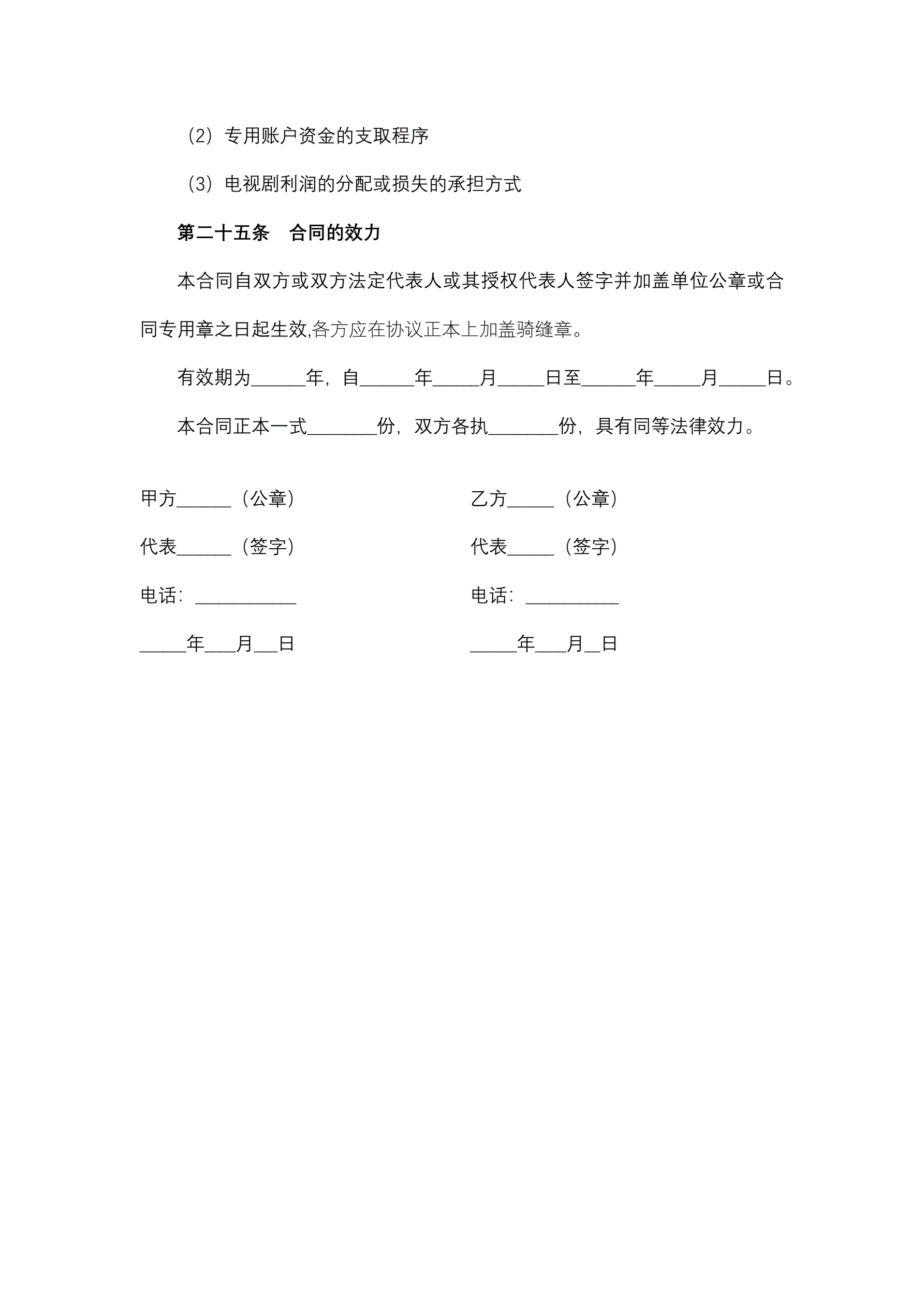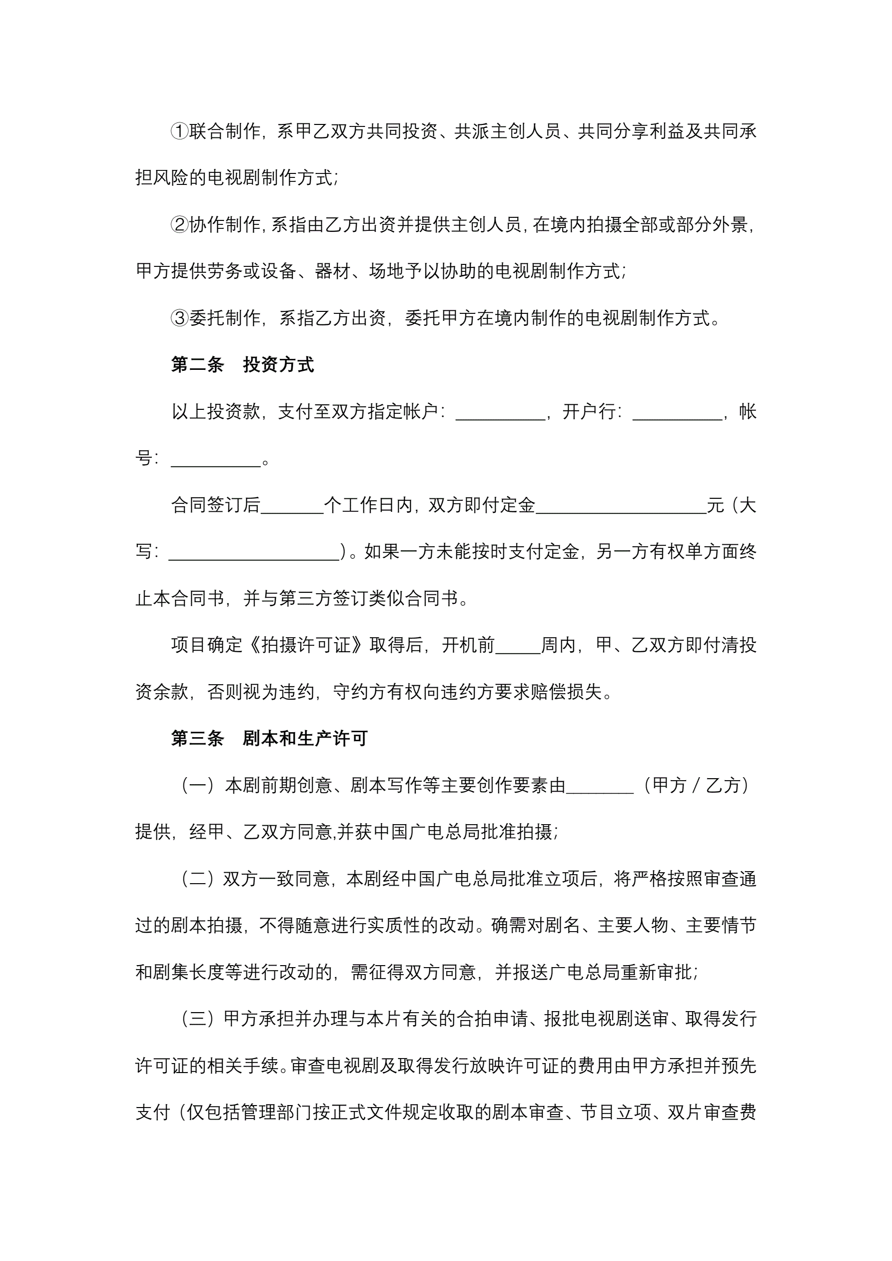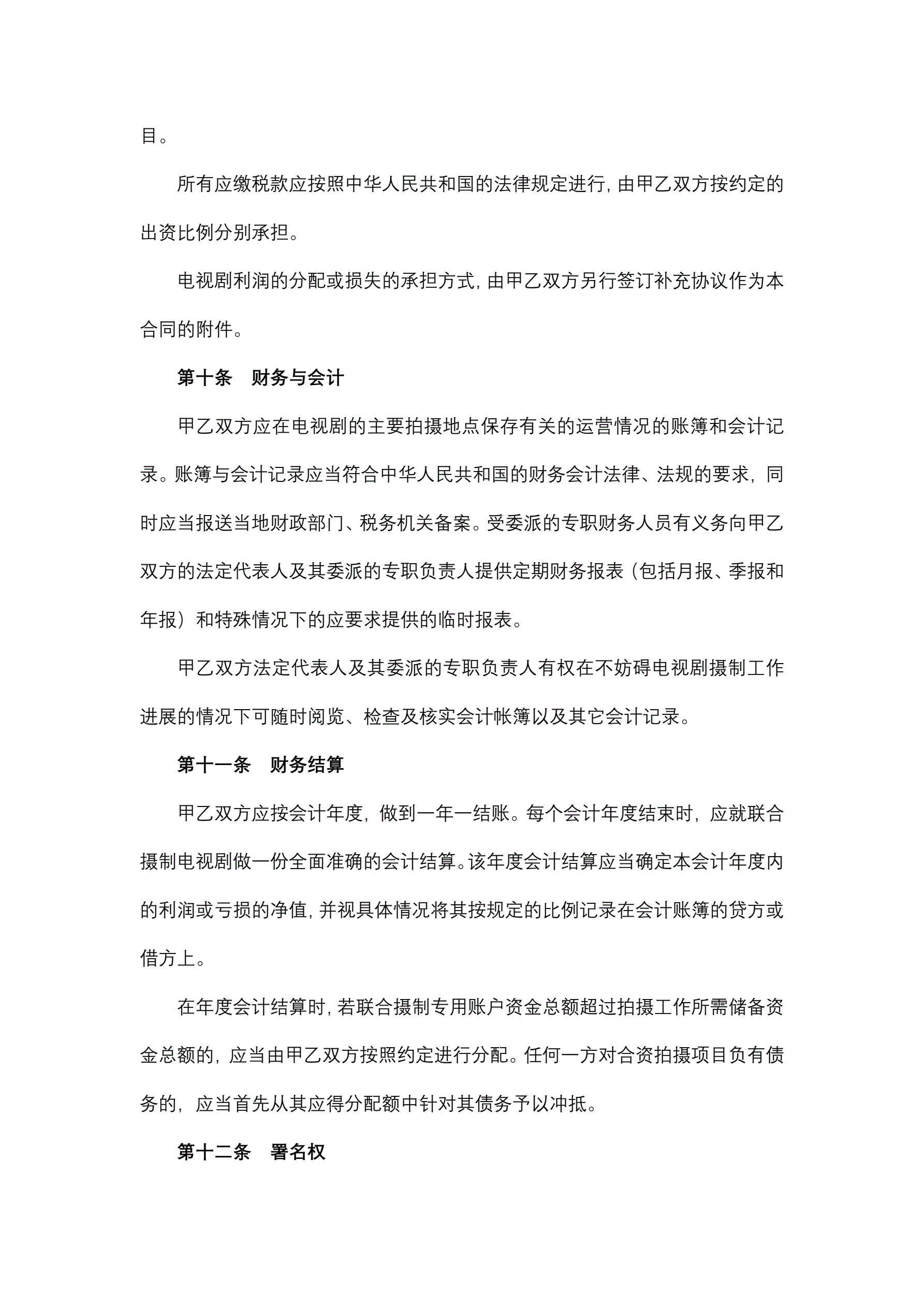 >中外合作摄制电视剧合同