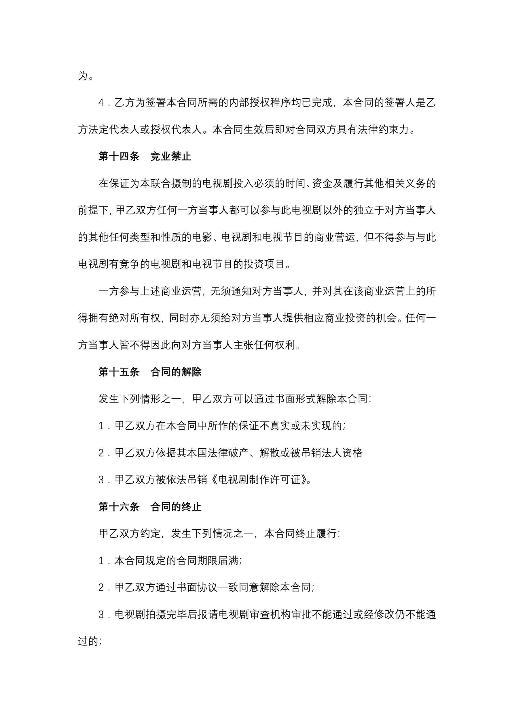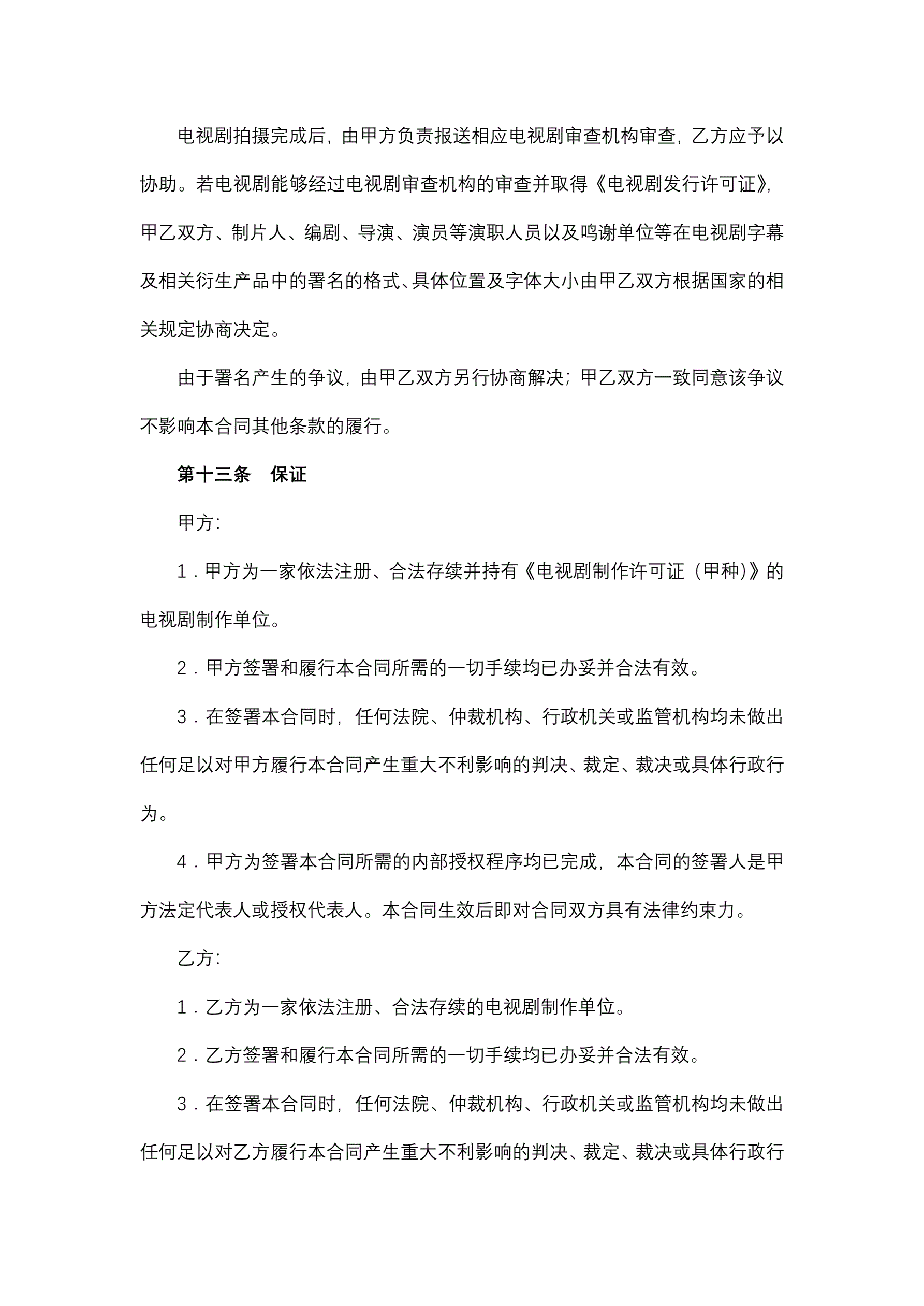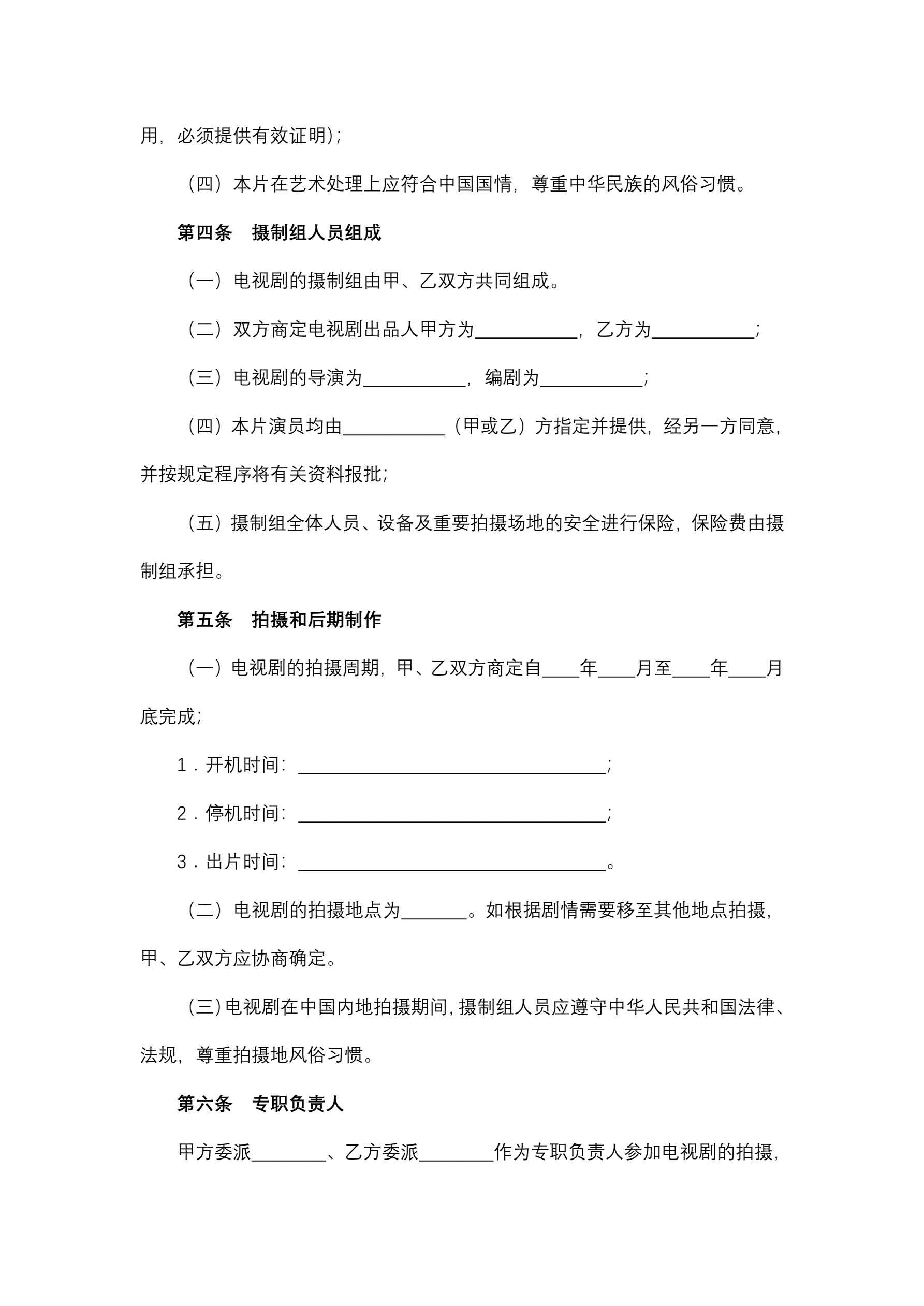 >中外合作摄制电视剧合同