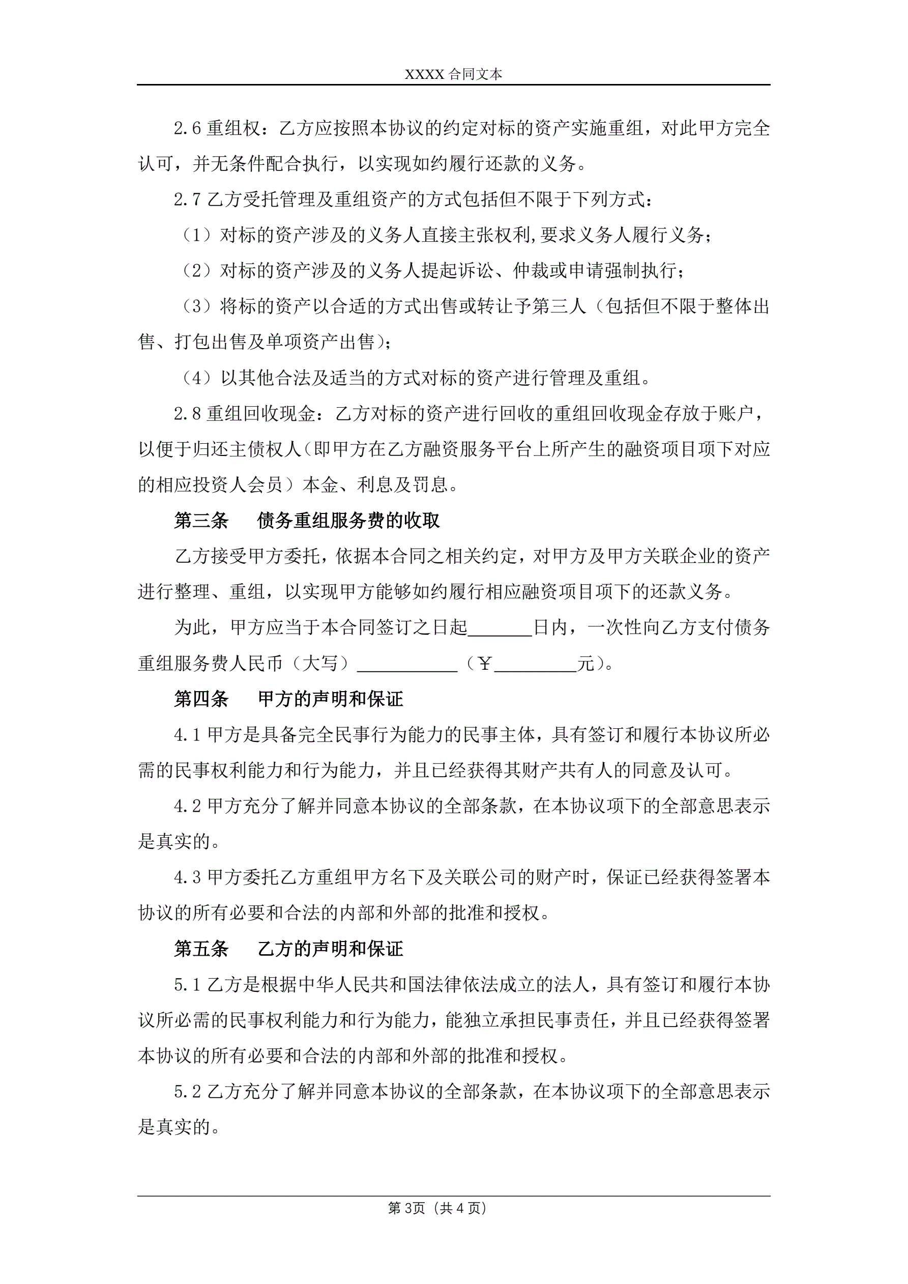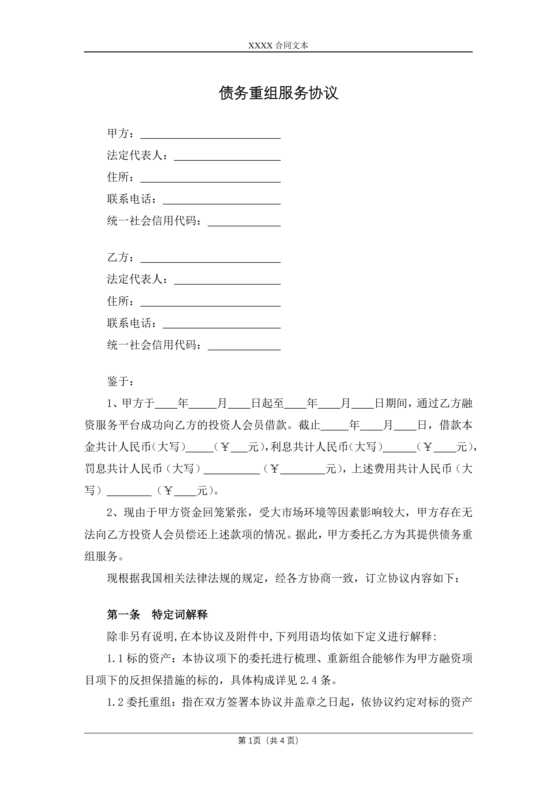 合同名称:债务重组服务协议