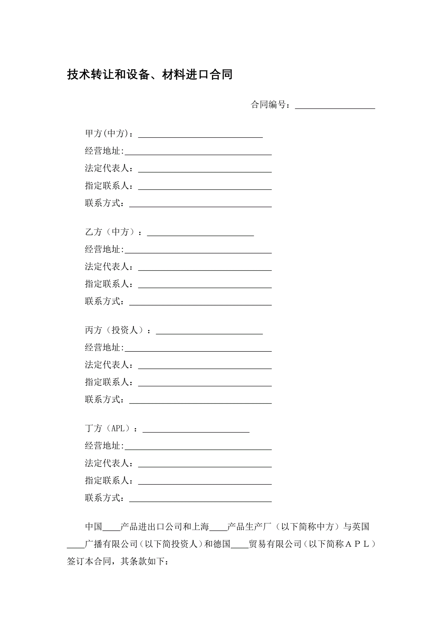 技术转让和设备、材料进口合同