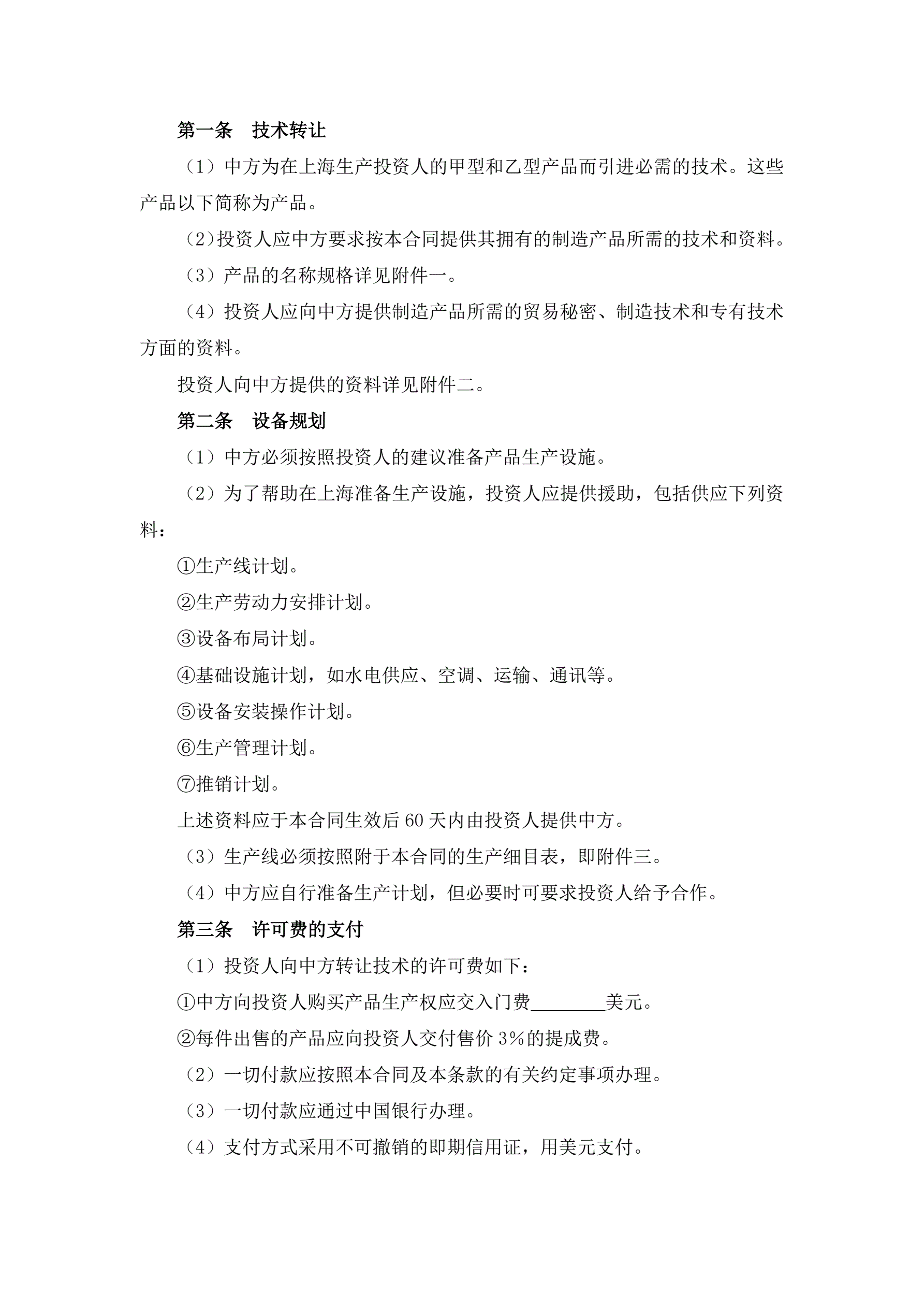 >技术转让和设备、材料进口合同