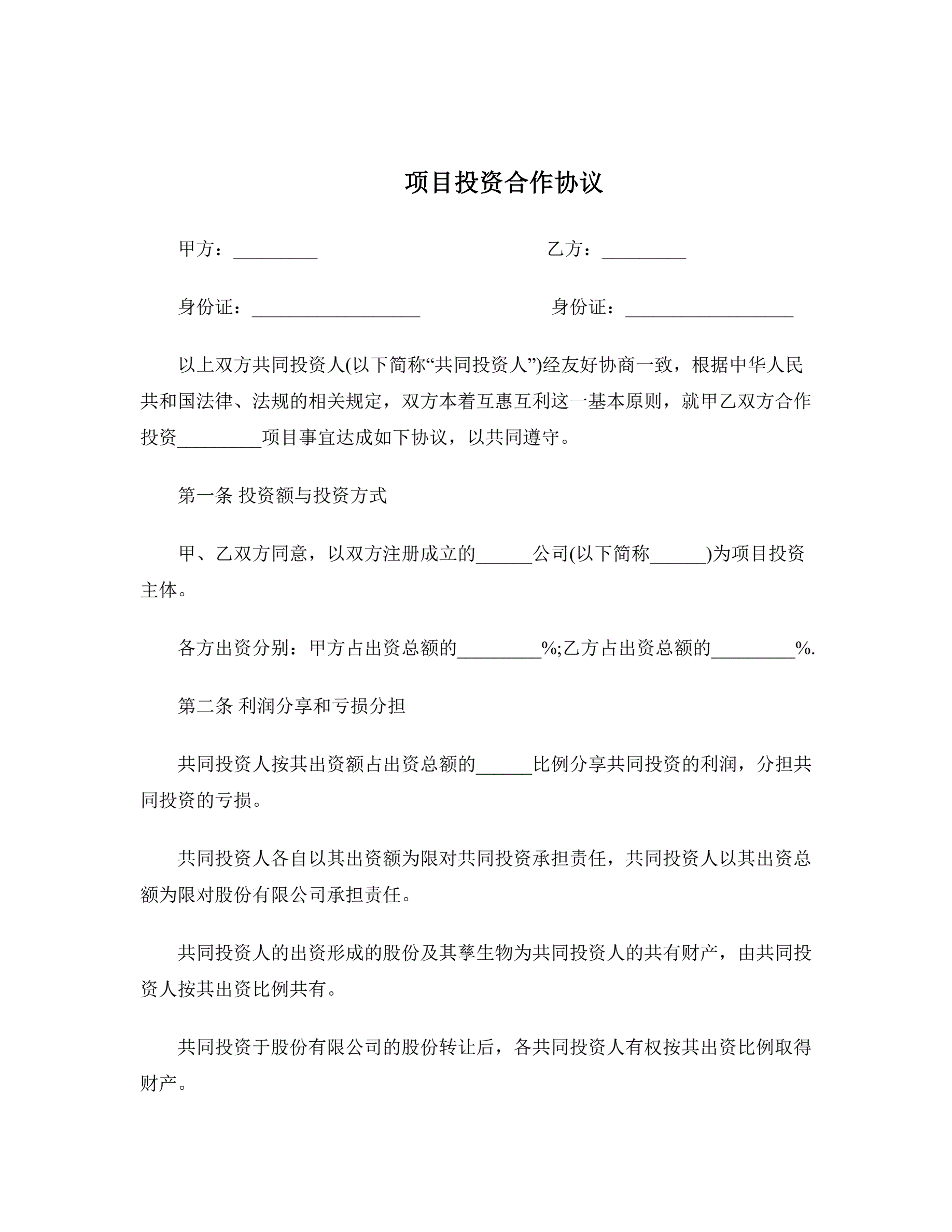 >项目投资合作协议