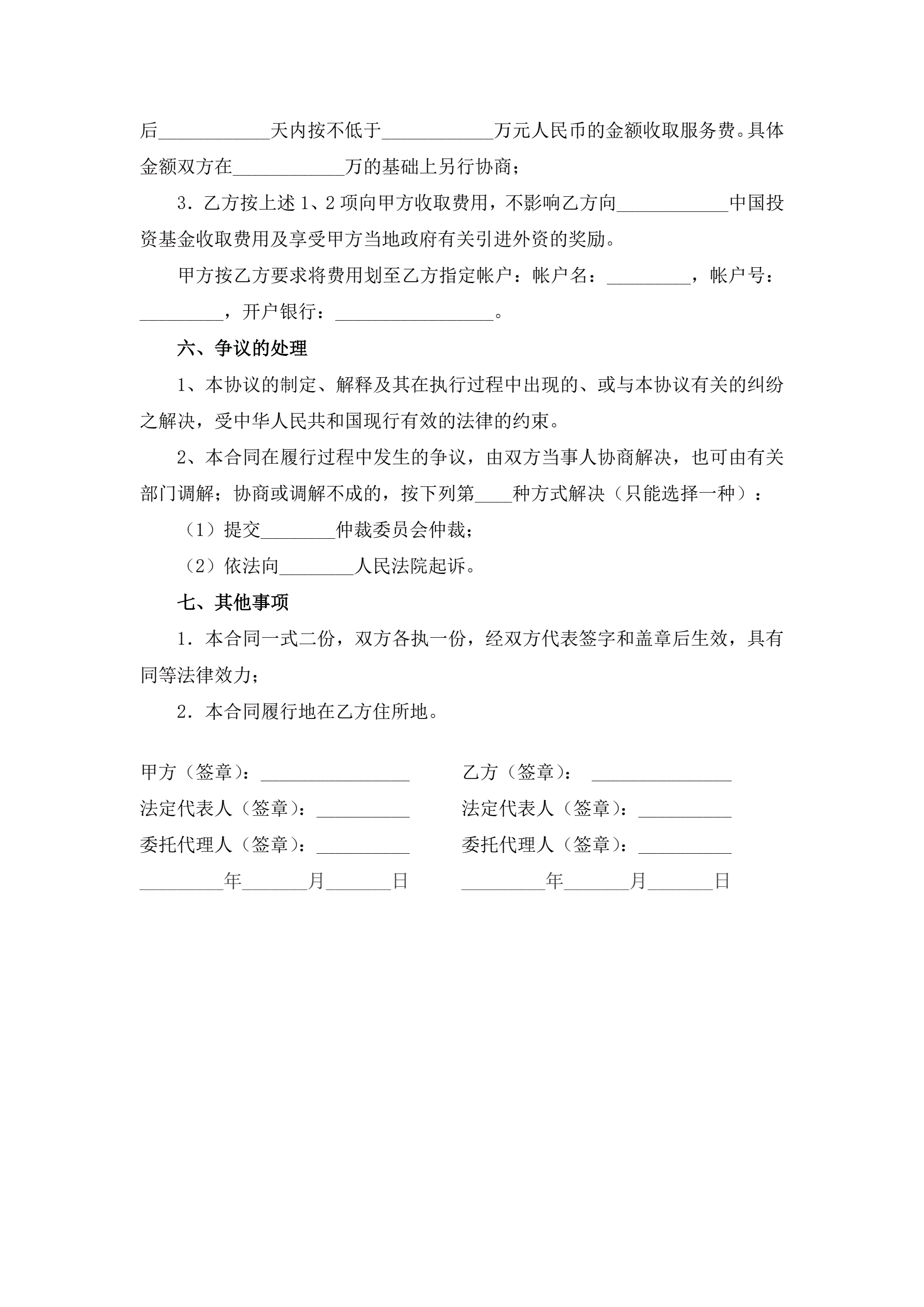 投资基金法律服务合作协议书