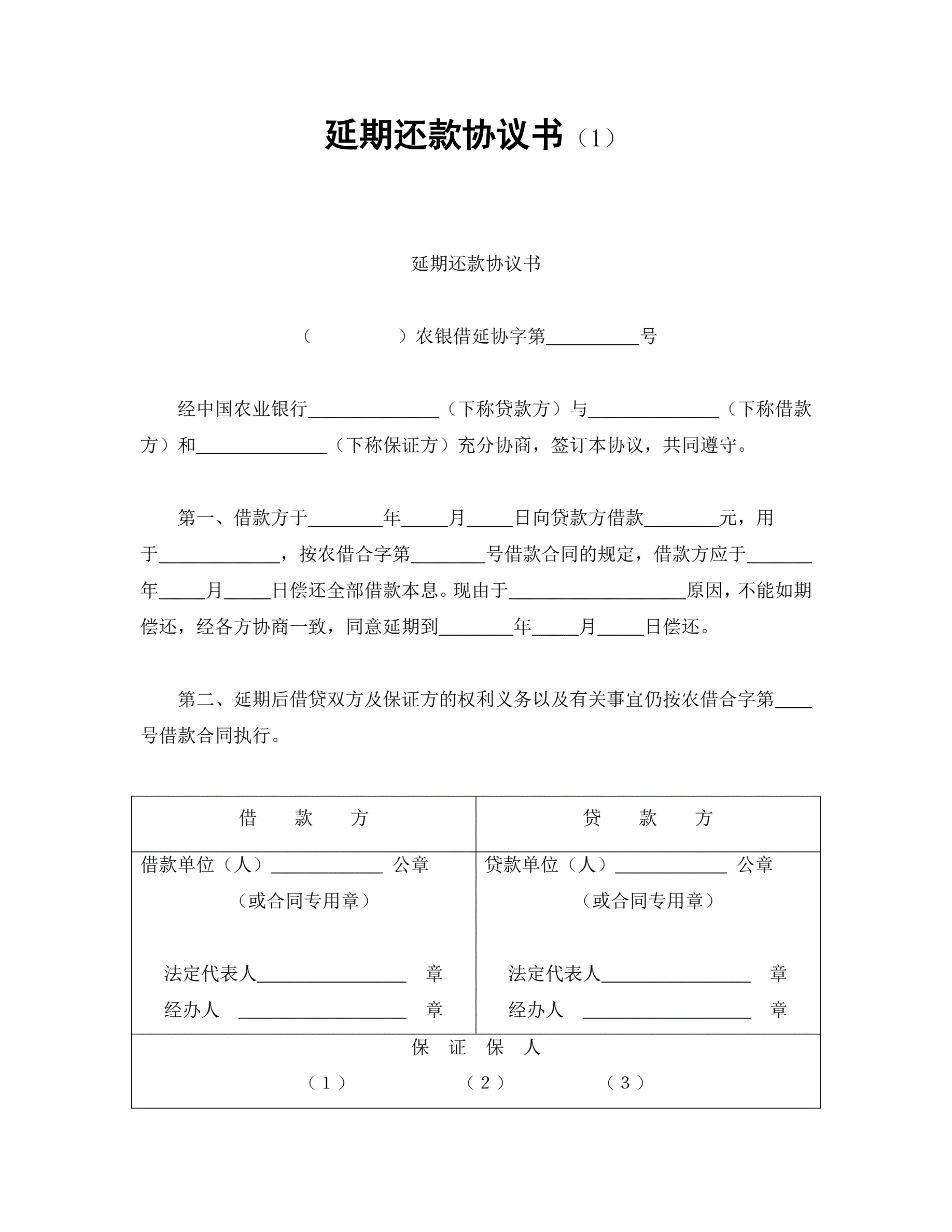 延期还款协议书