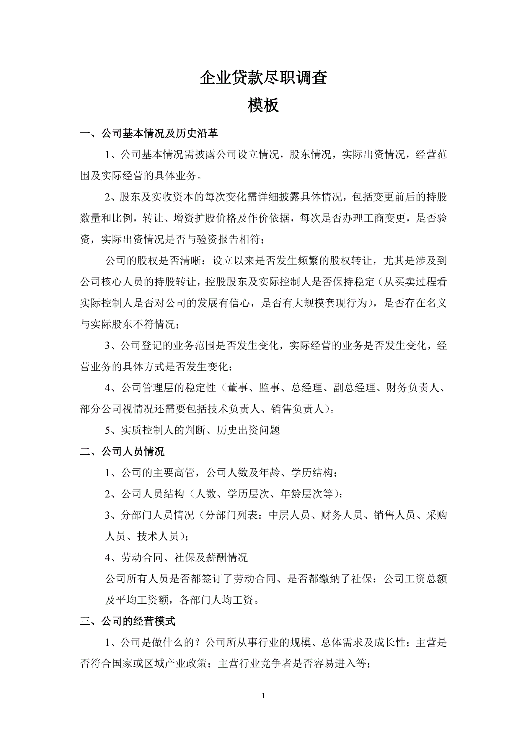 企业贷款尽职调查报告模板