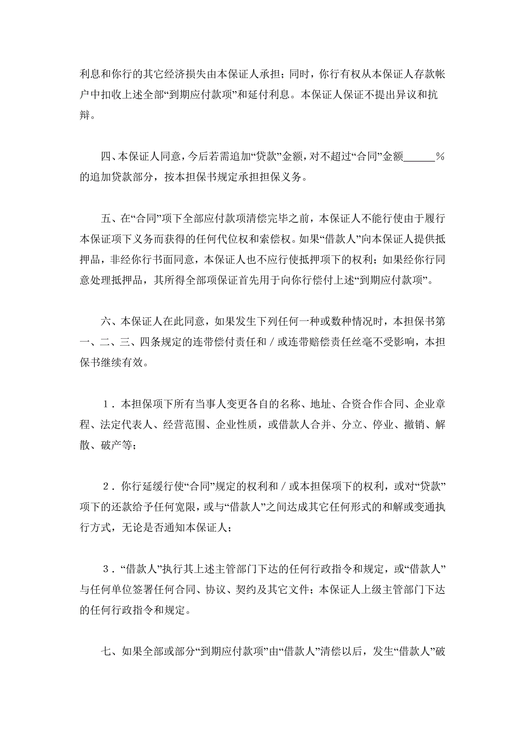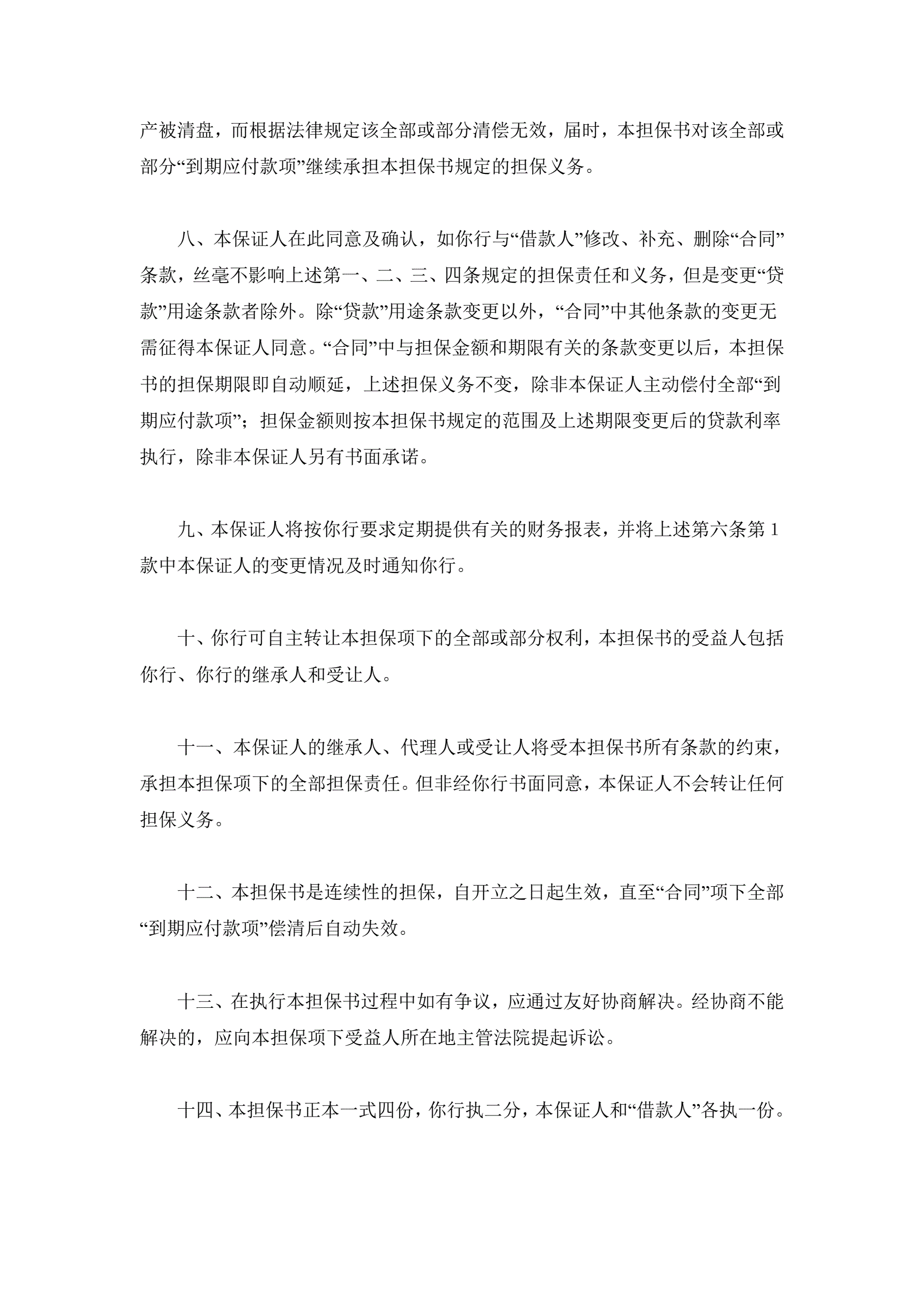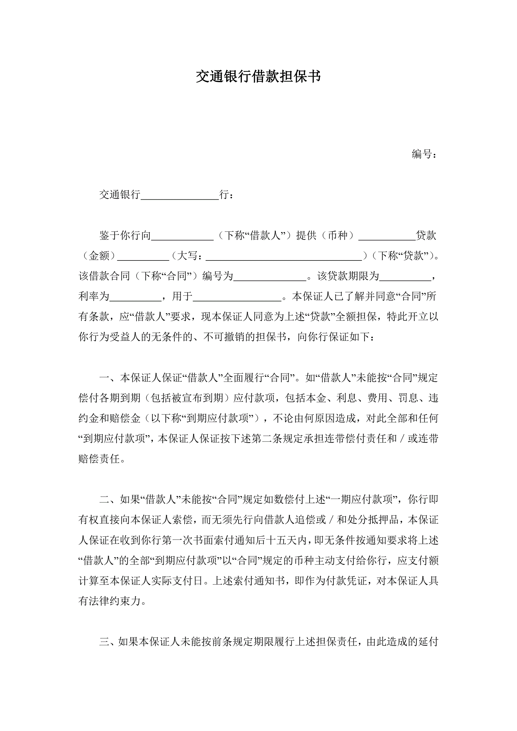 >交通银行借款担保书