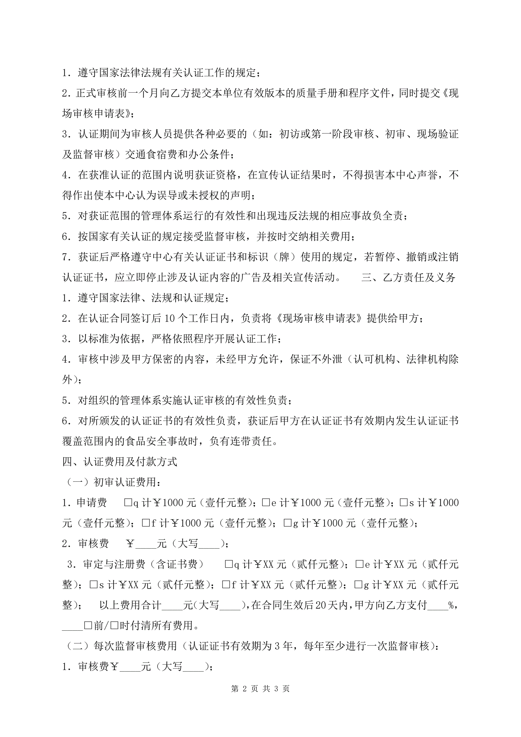 管理体系认证合同(标准版)