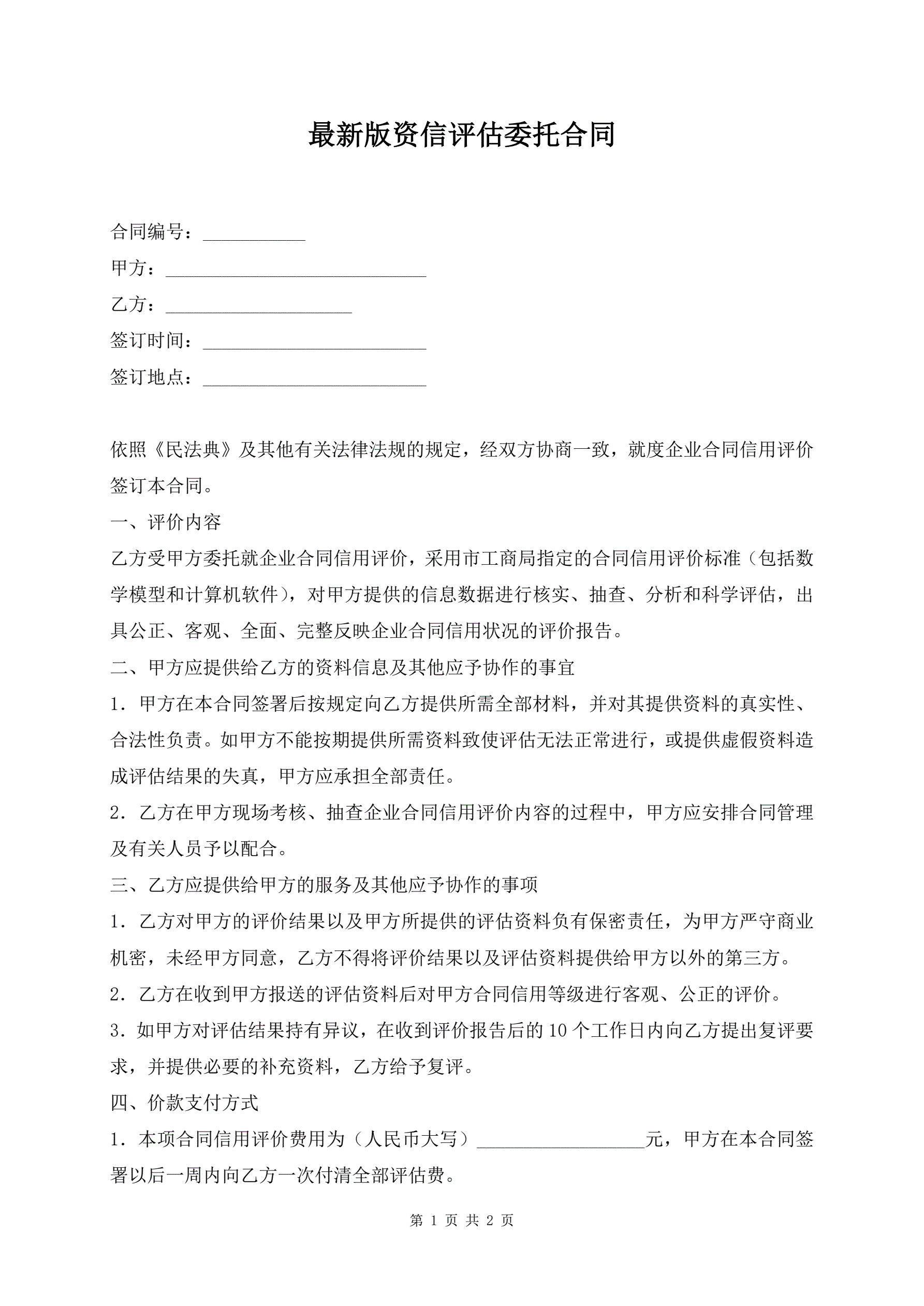 >最新版资信评估委托合同