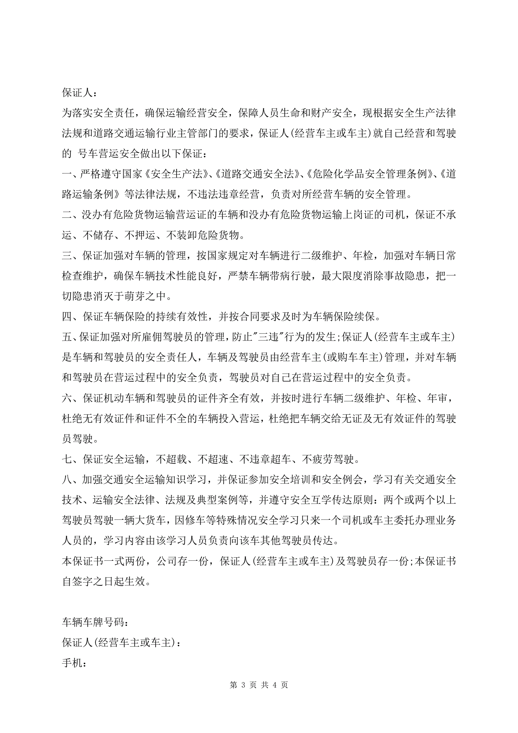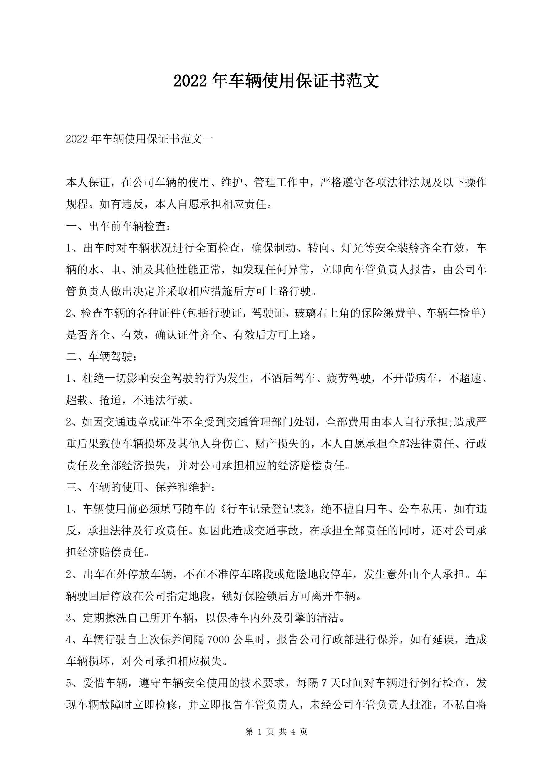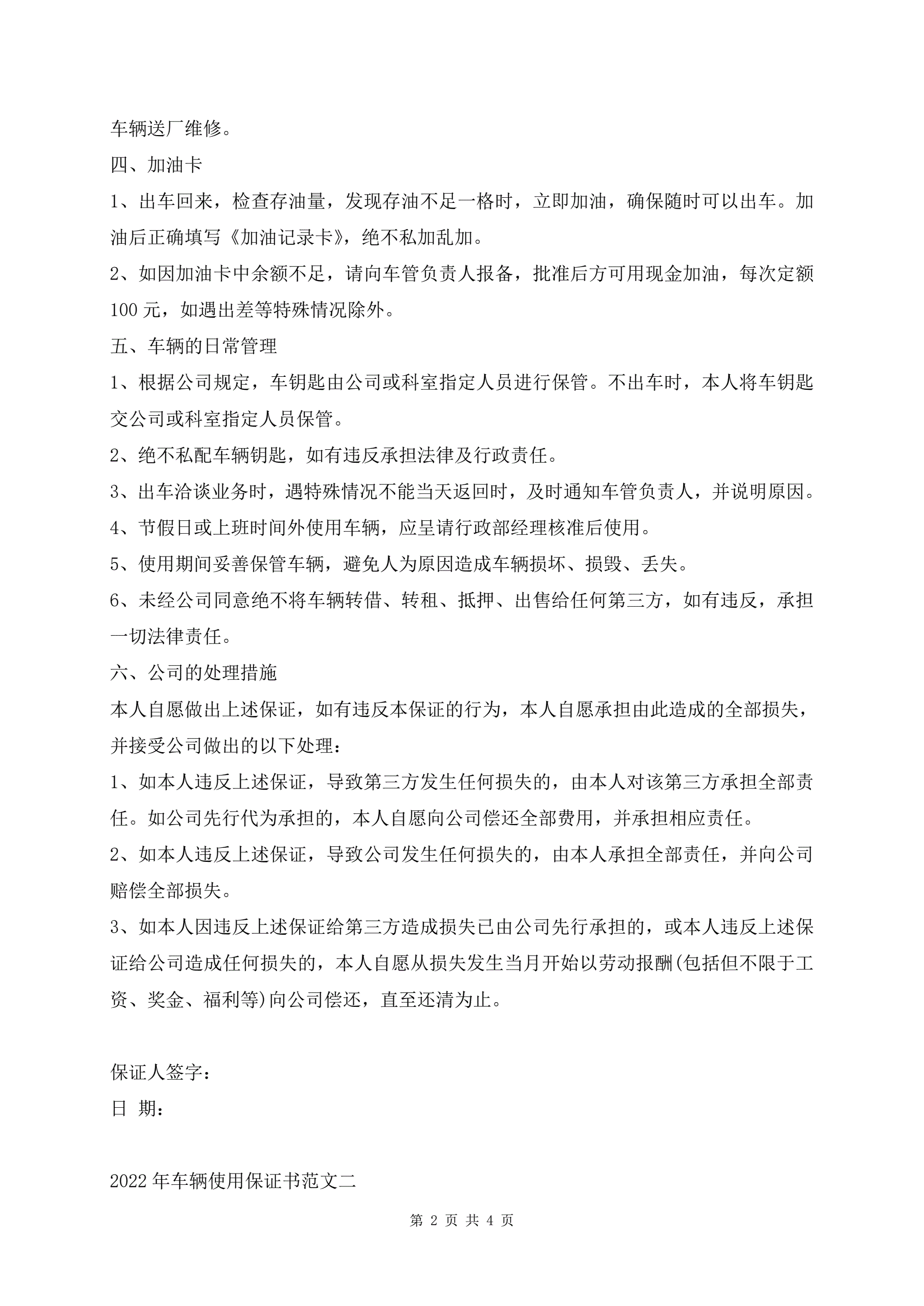 >2022年车辆使用保证书范文