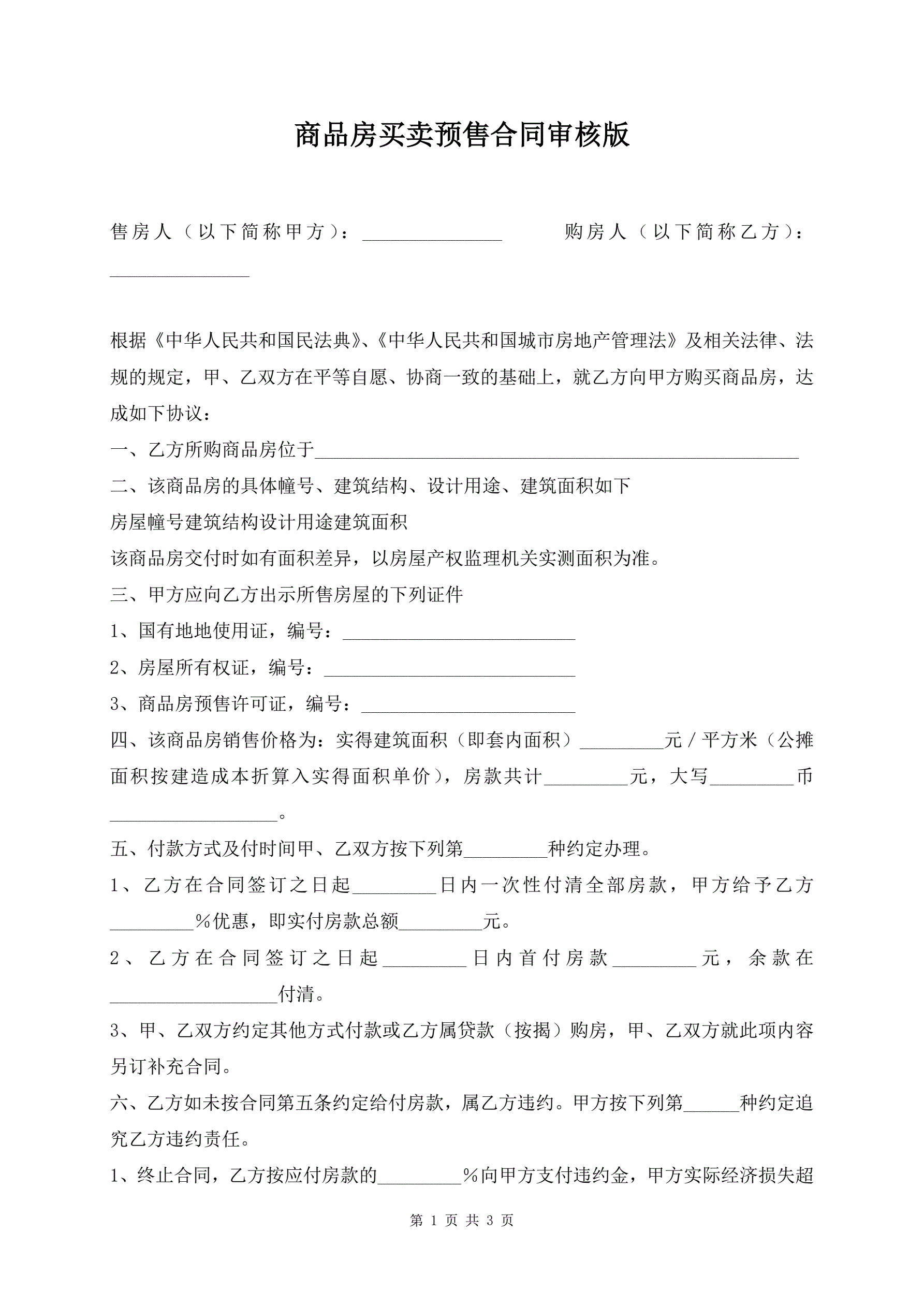 >商品房买卖预售合同审核版