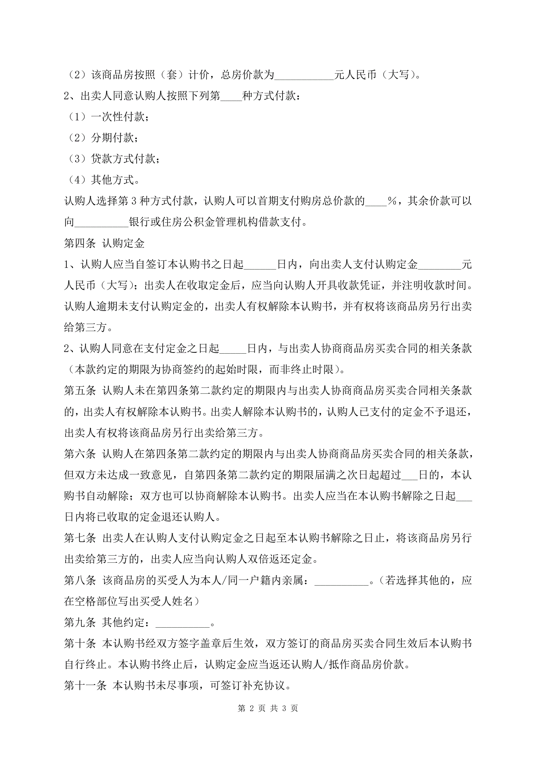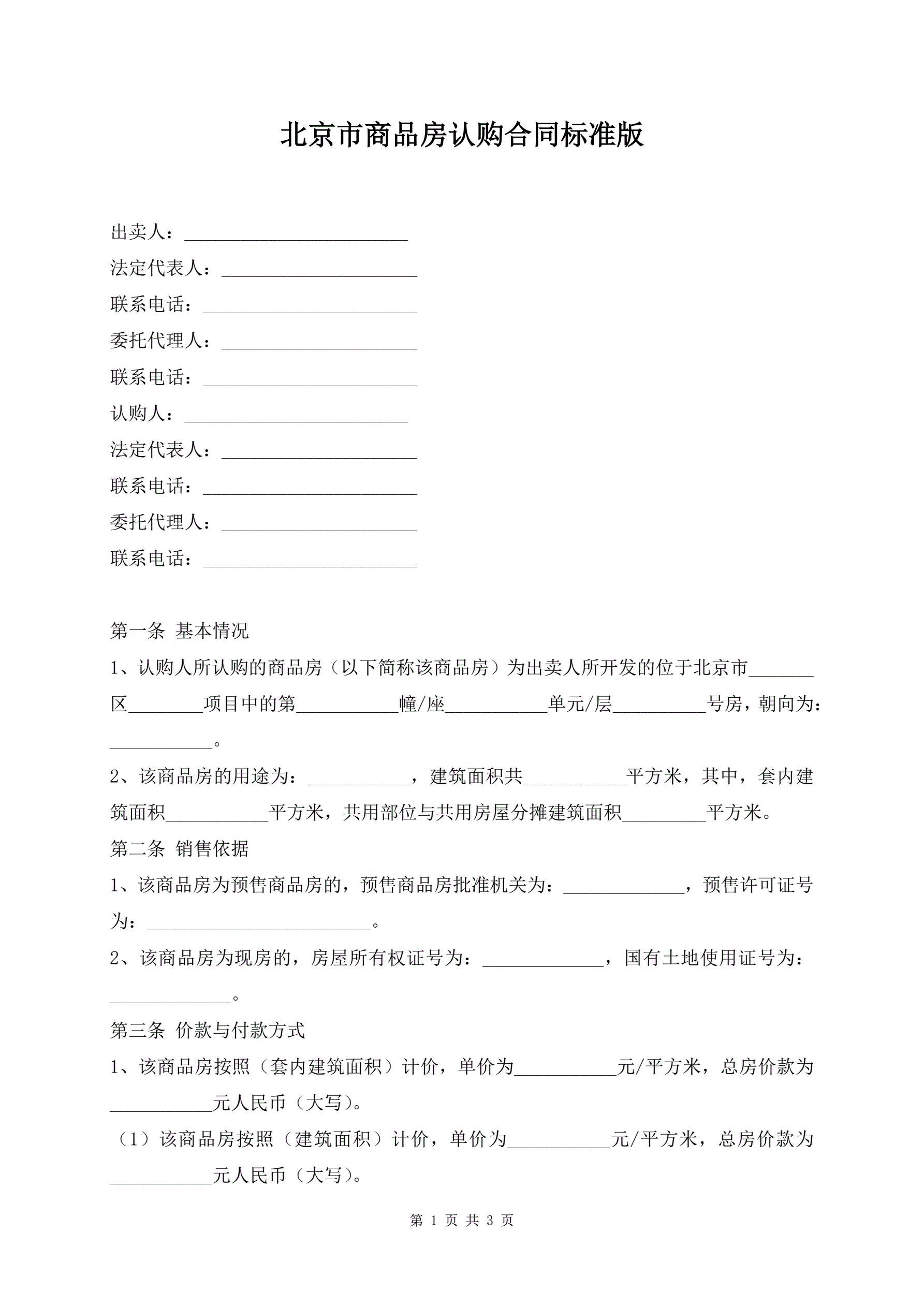 >北京市商品房认购合同标准版