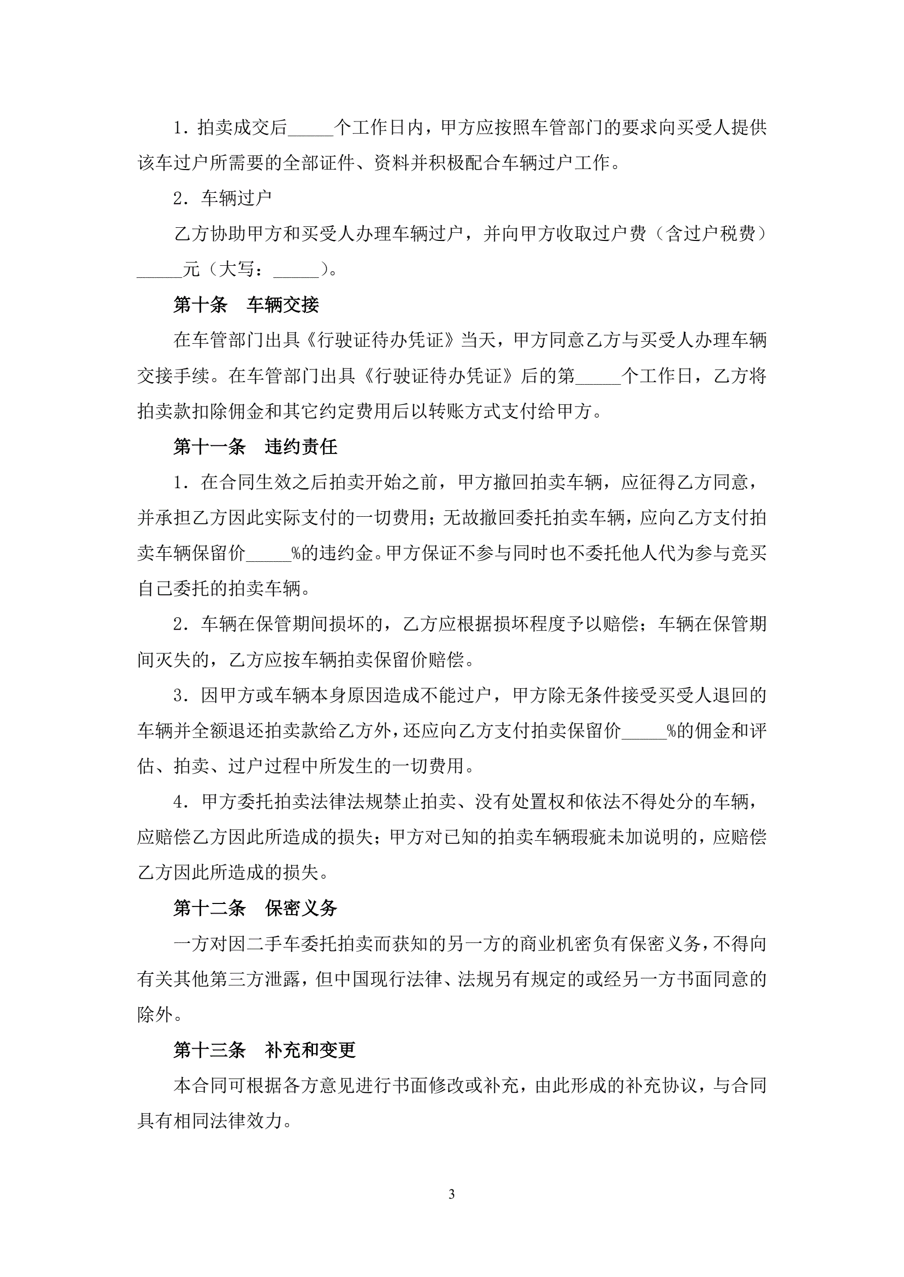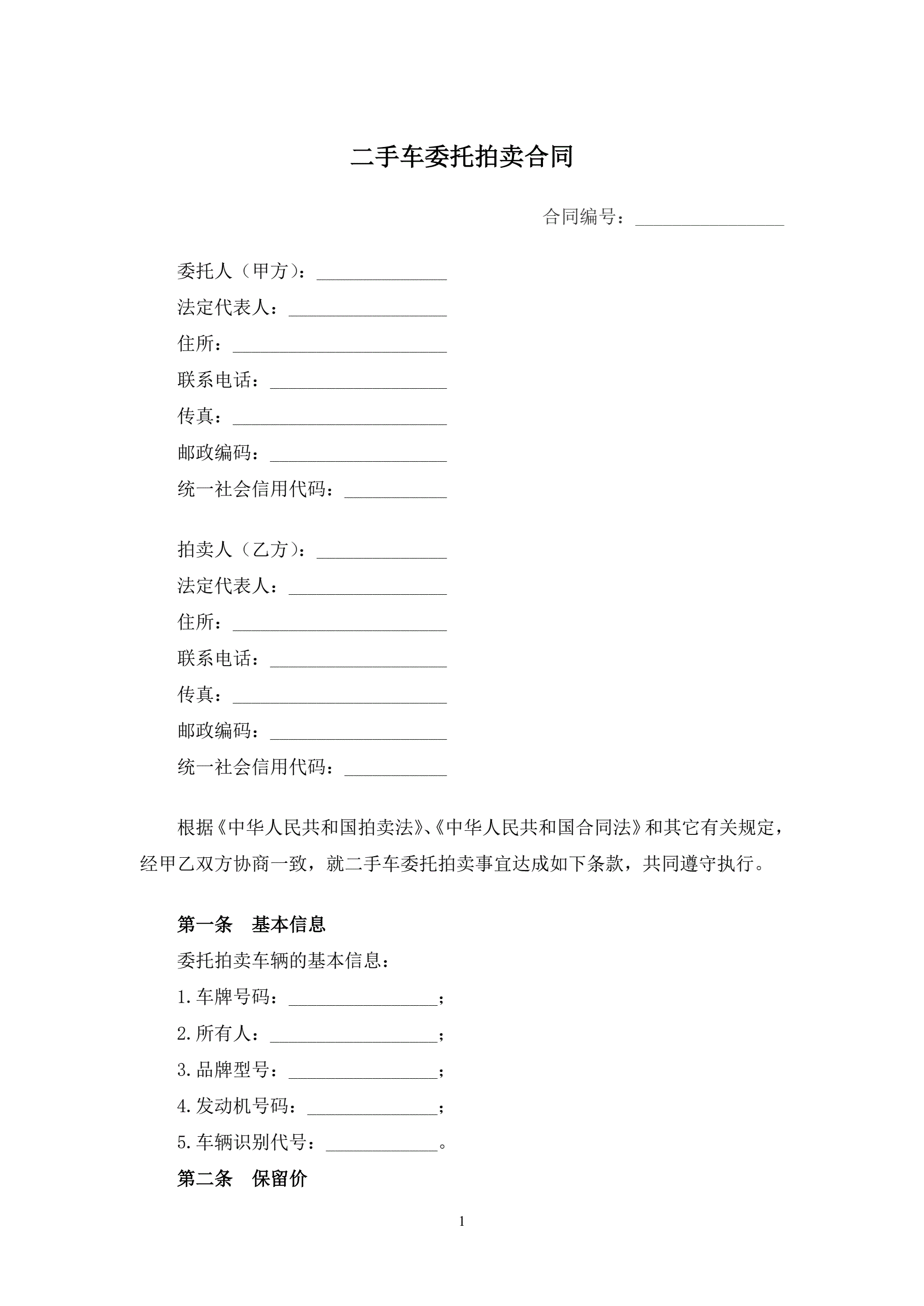 二手车委托拍卖合同